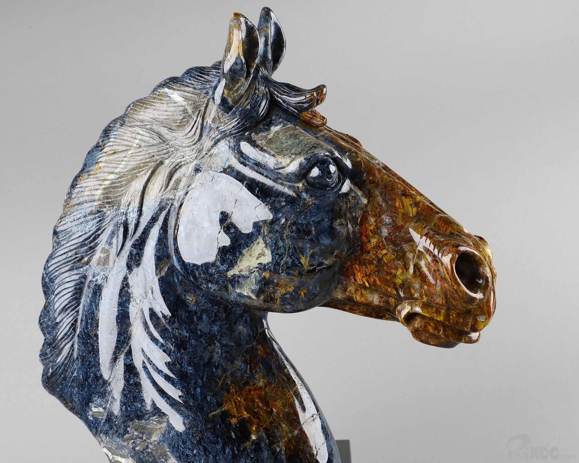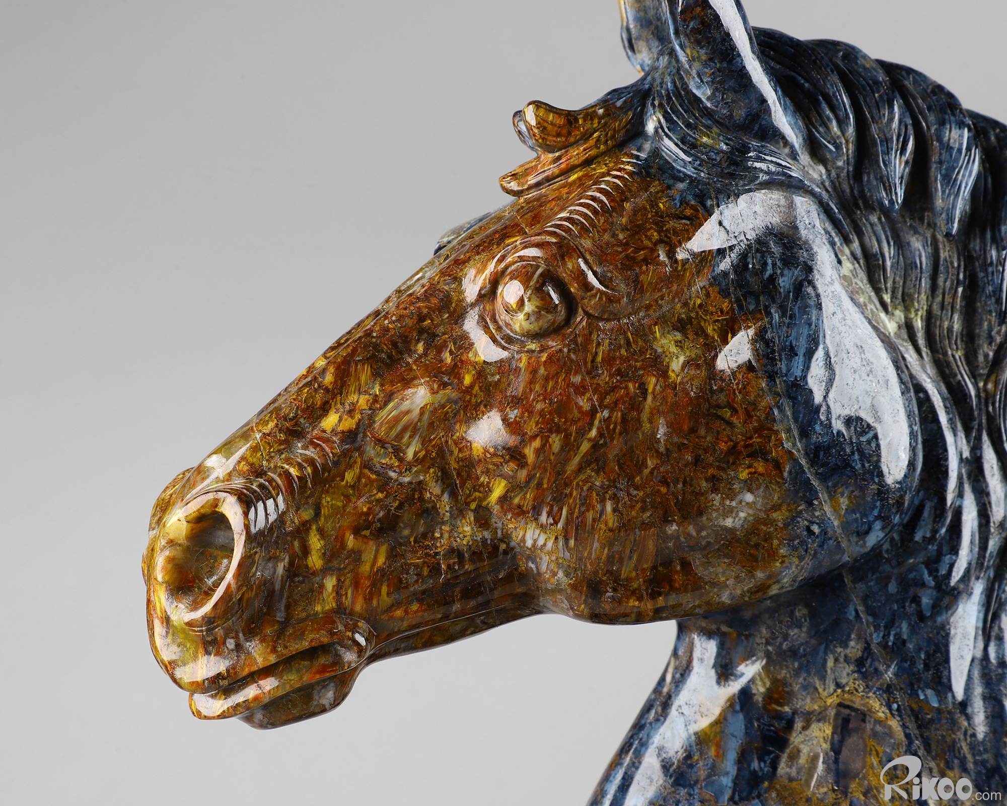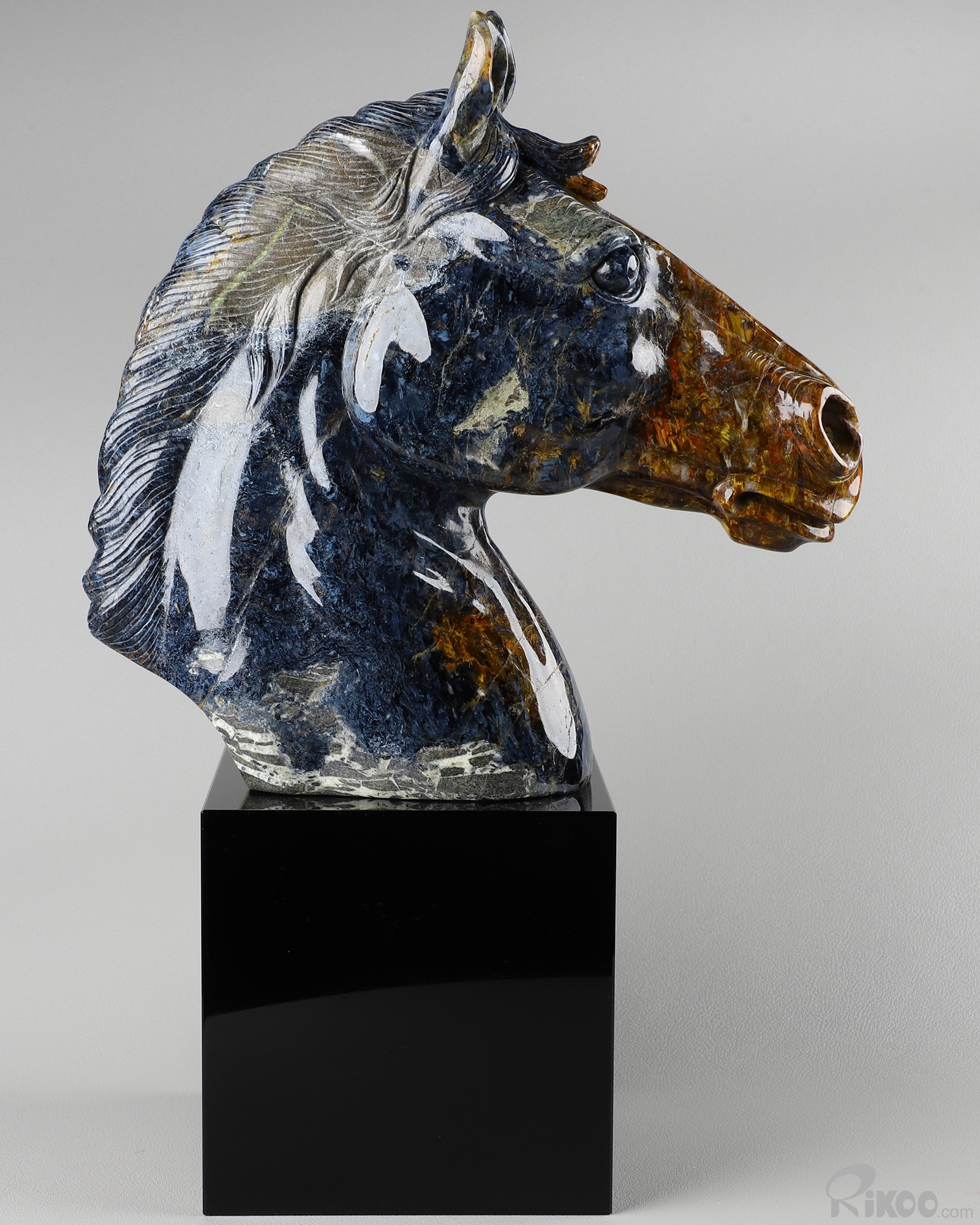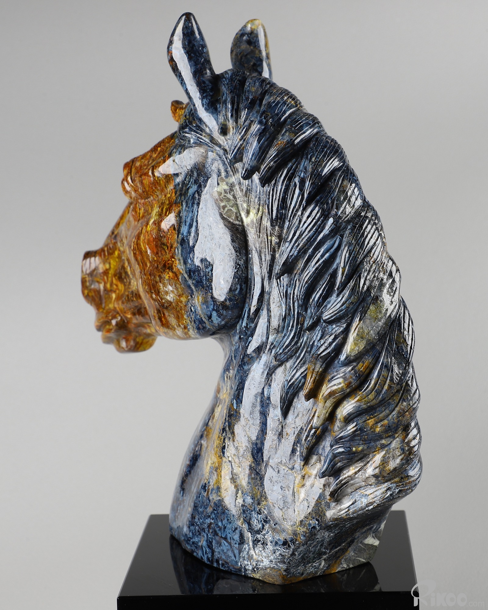 Amazing Gemstone Huge 7.7" Blue Gold & Red Pietersite Carved Crystal Horse Head Sculpture & Black Obsidian Stand