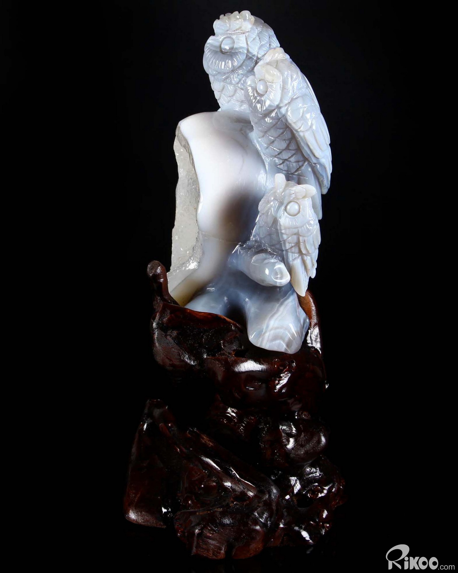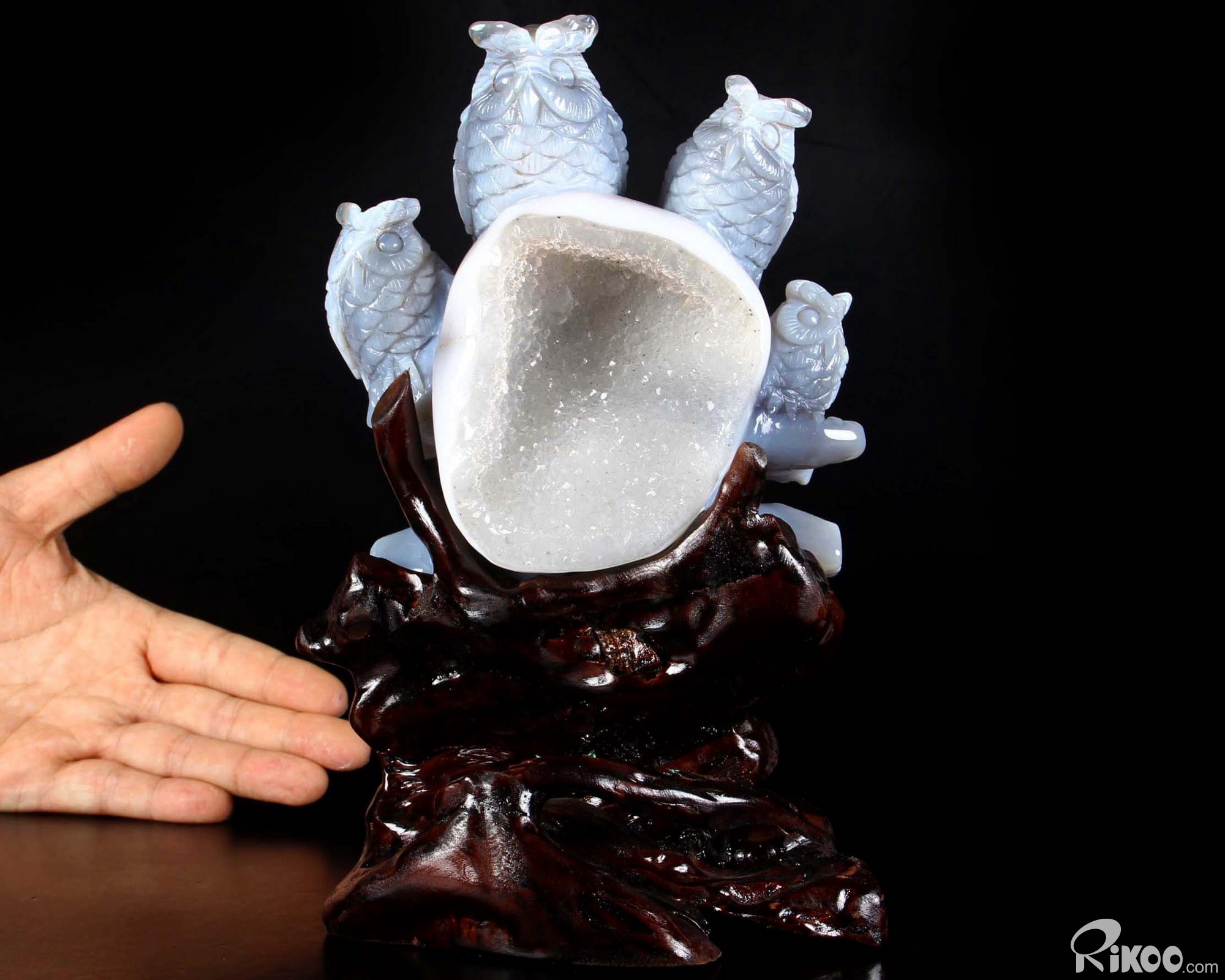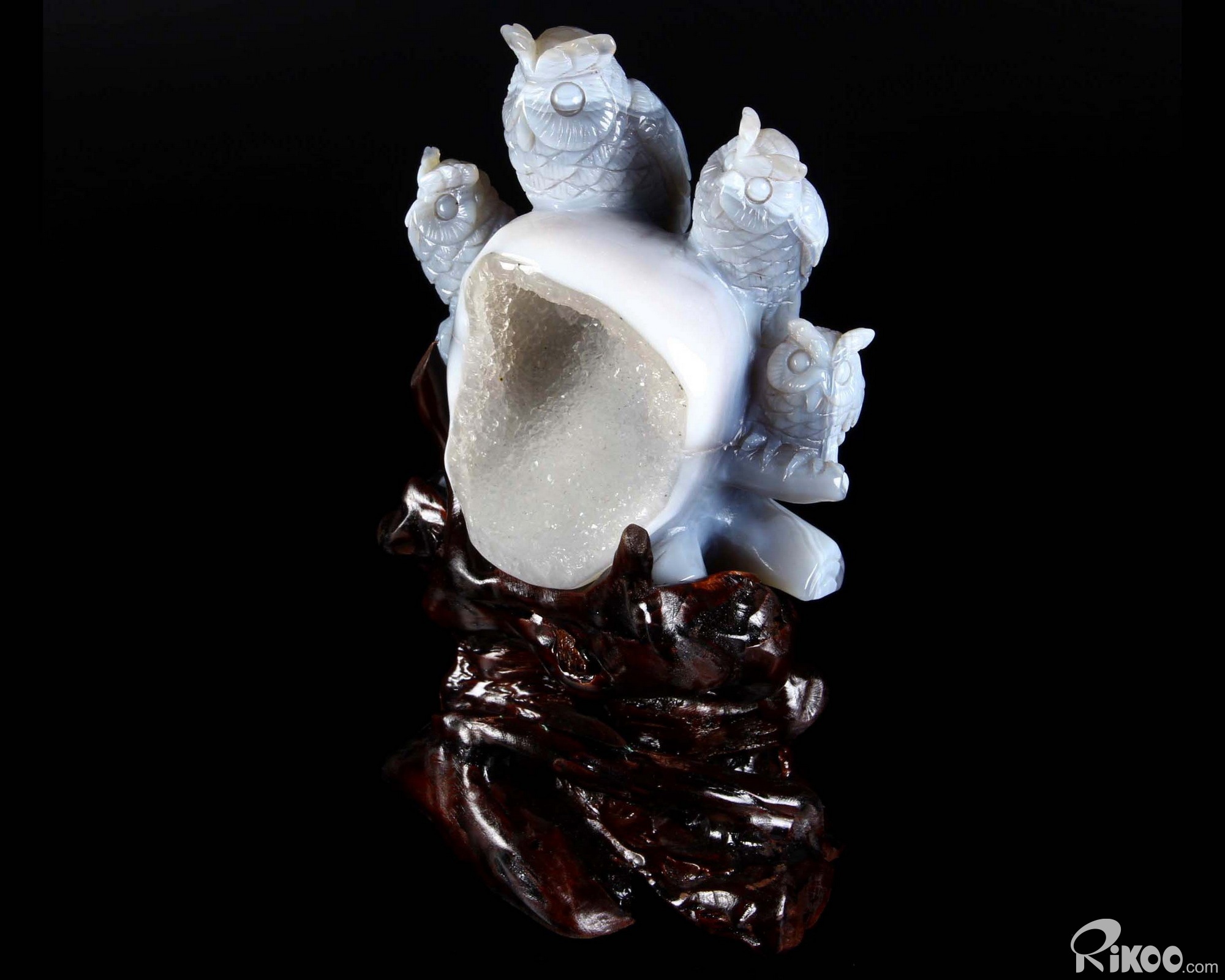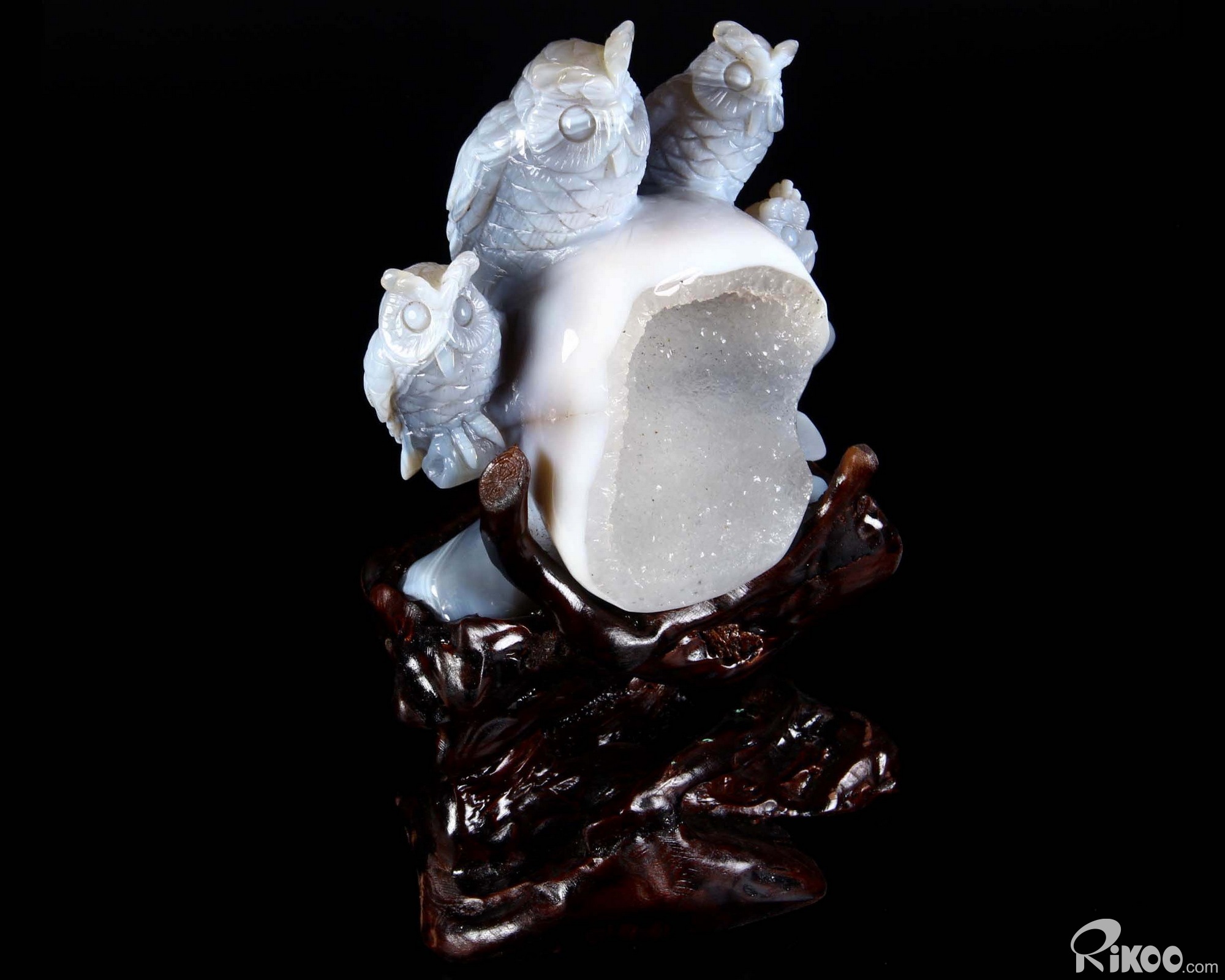 Amazing Giant 9.3" Gray & White Agate Geode Crystal Owl Sculpture, Crystal Healing