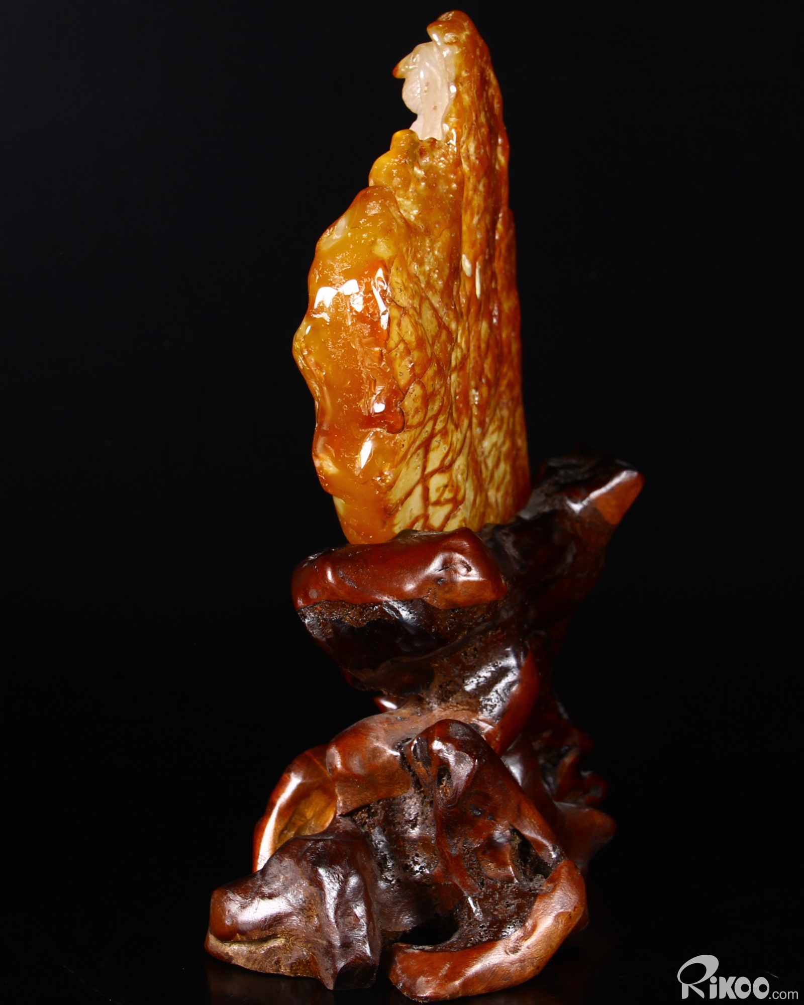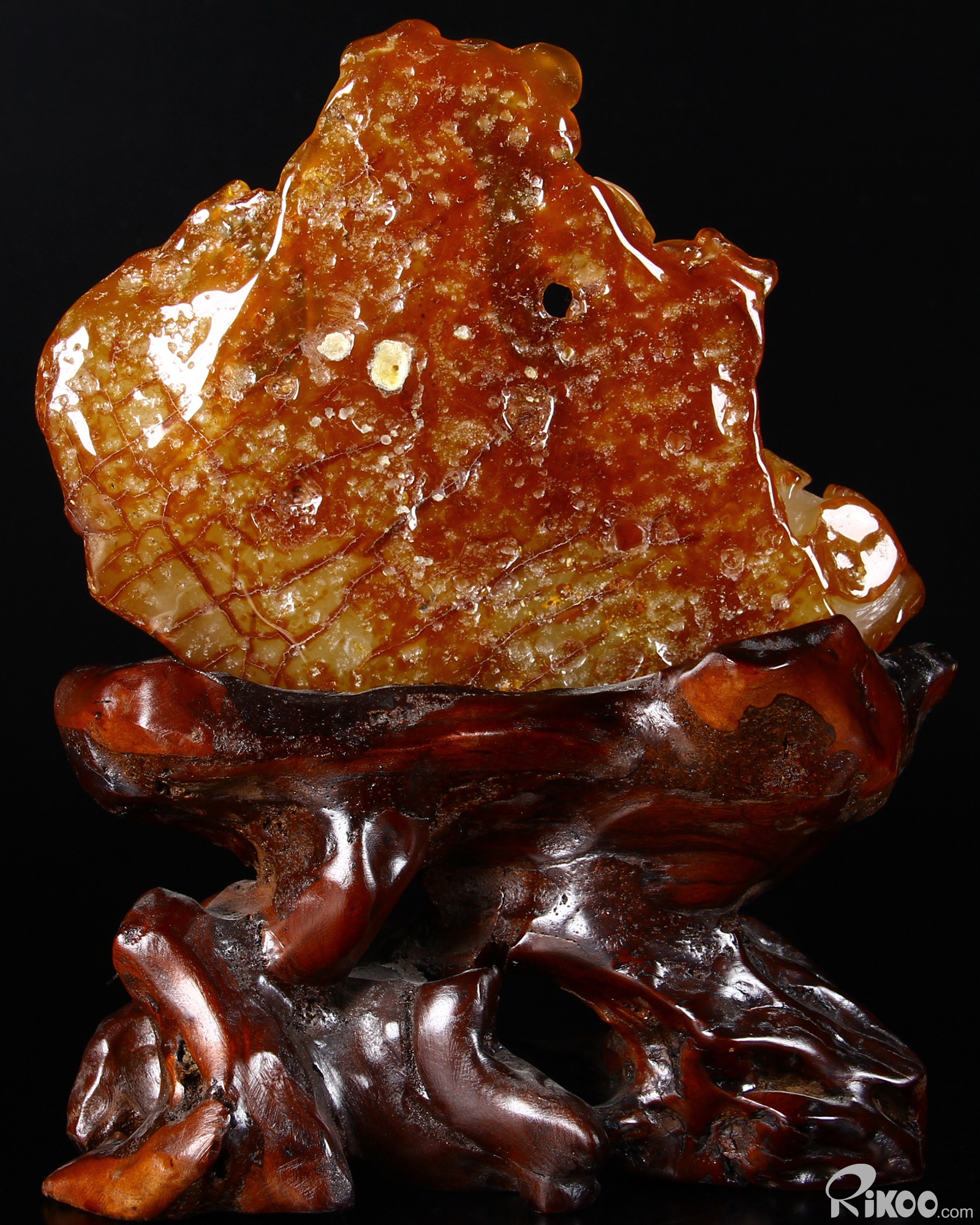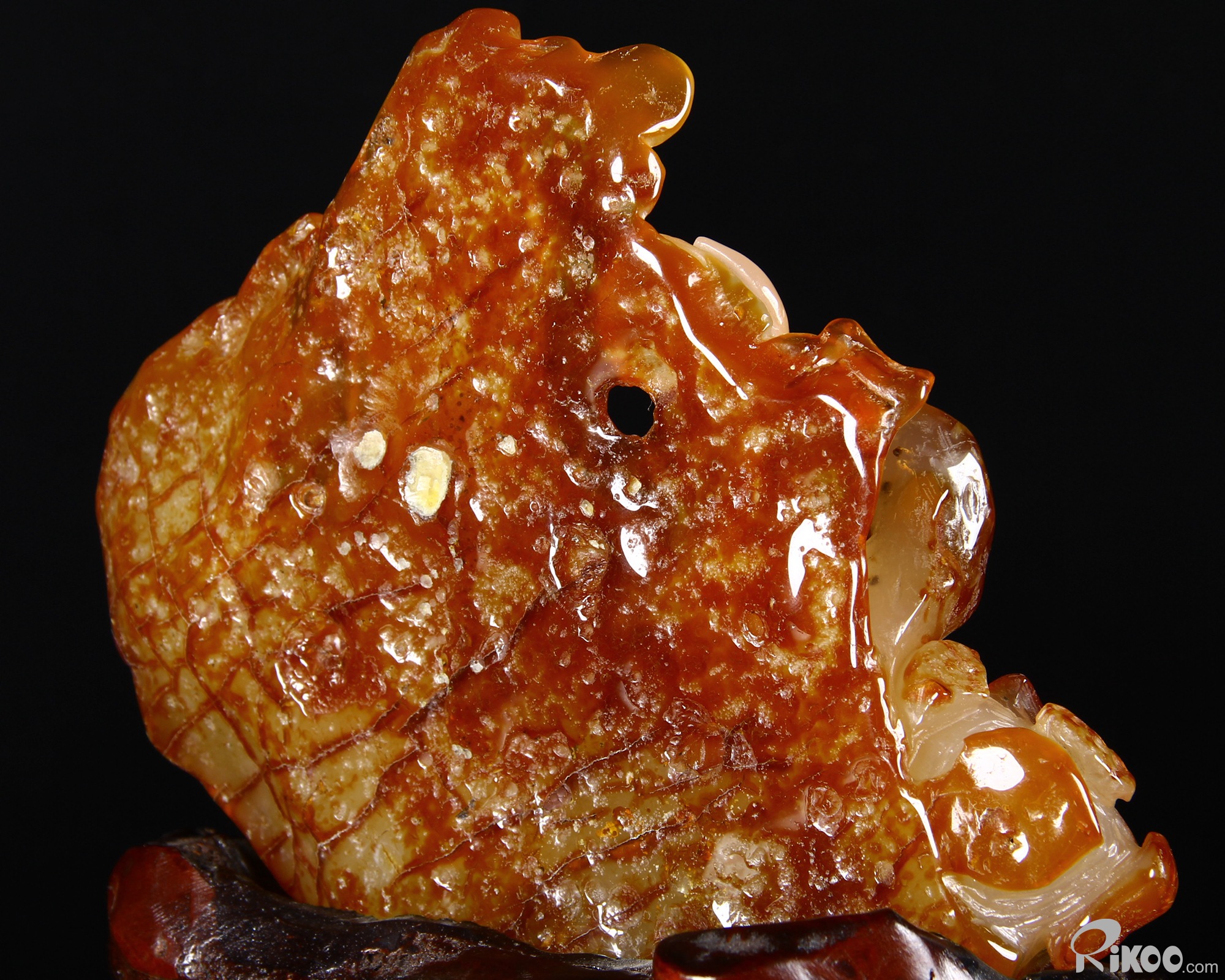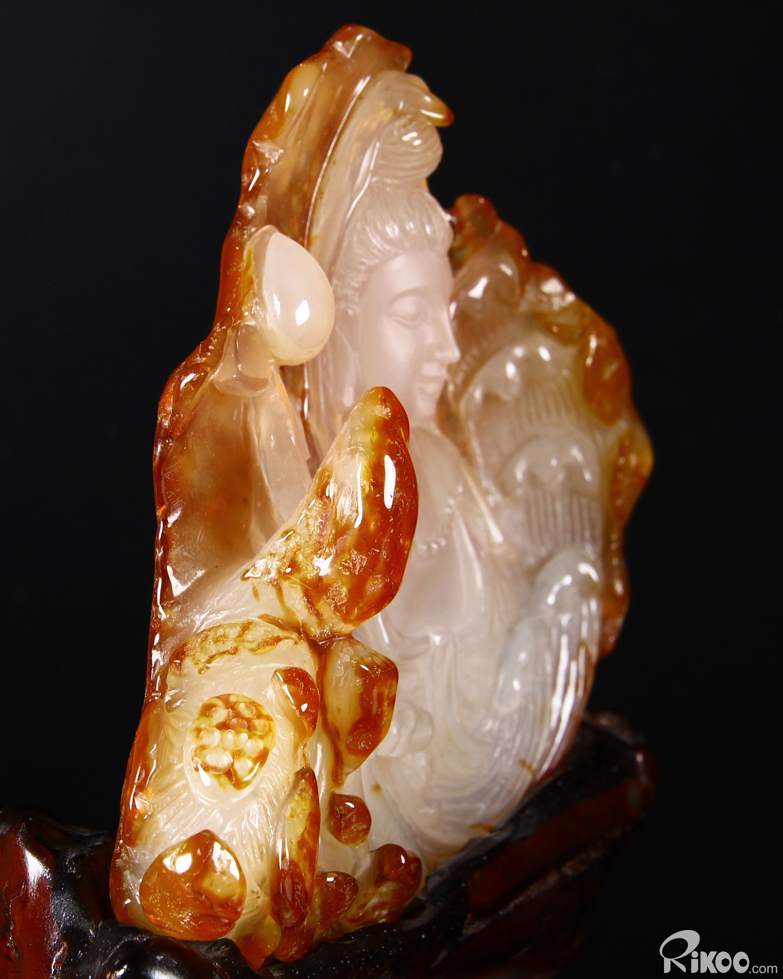 Amazing Giant Carnelian Carved Crystal Kwan-yin & Lotus Flowers with Wooden Stand