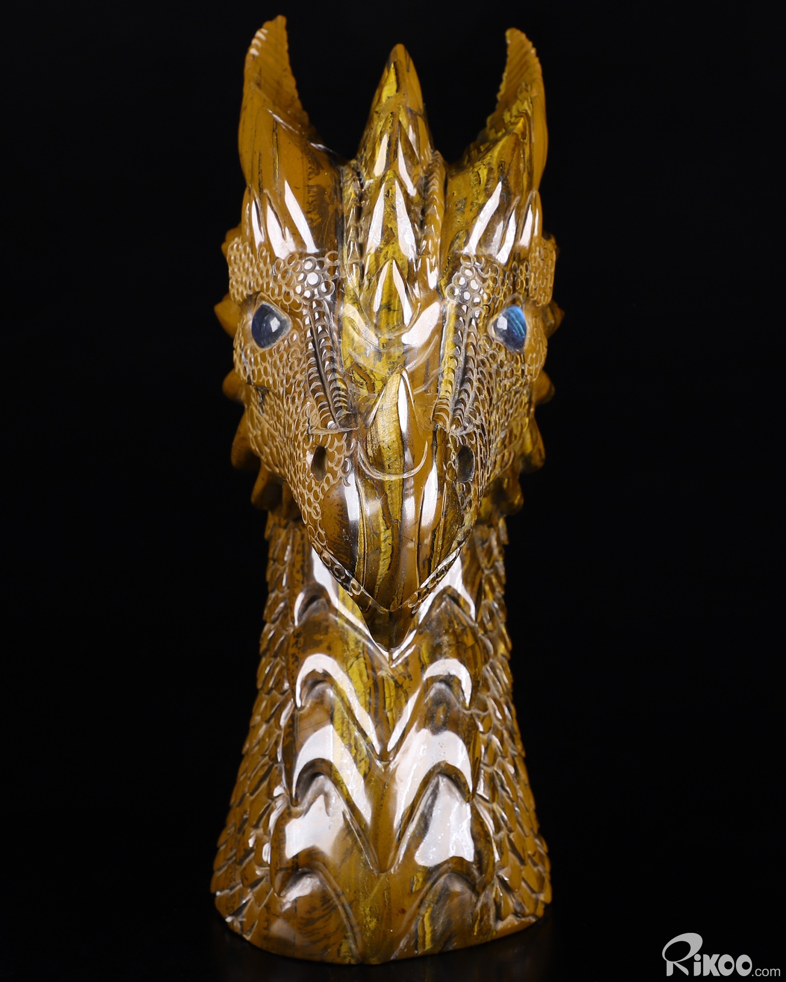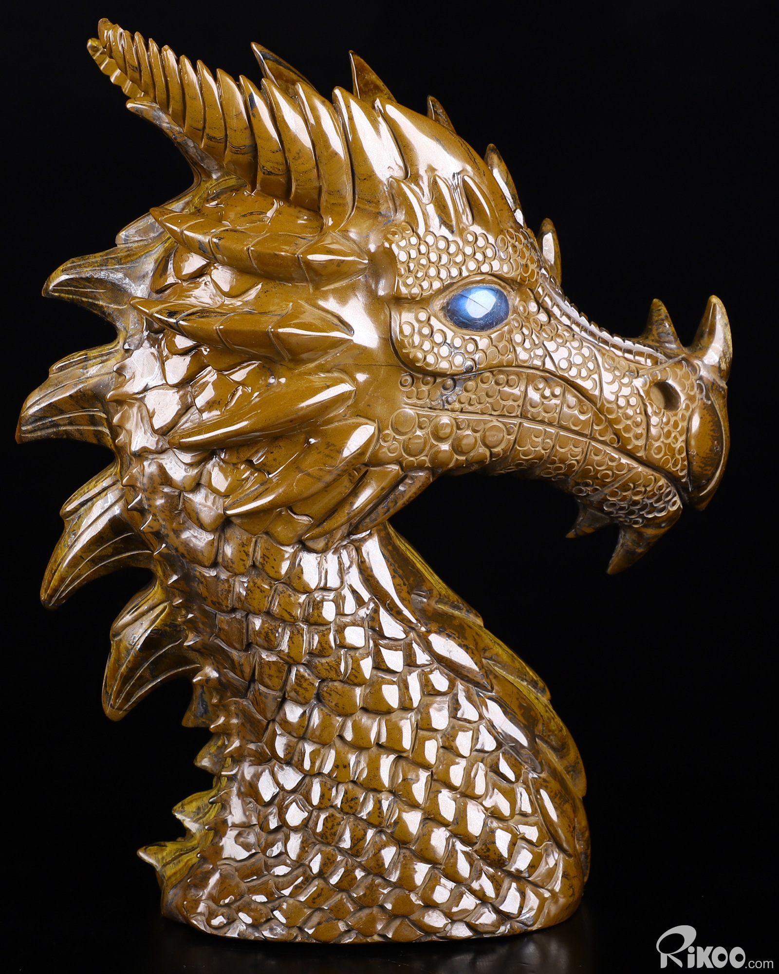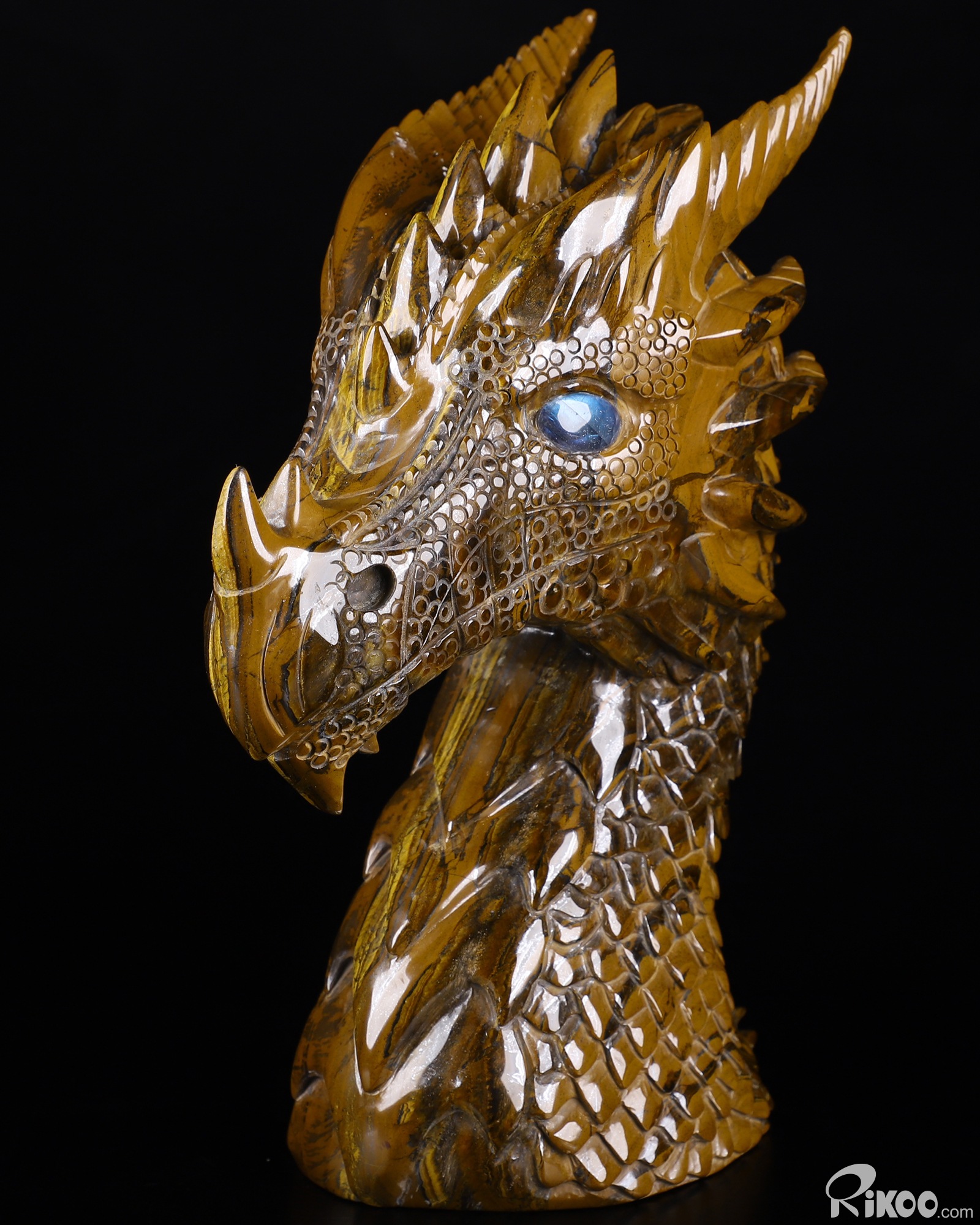 Amazing Huge 7.1" Tiger Iron Eye Carved Crystal Dragon Sculpture & Labradorite Eyes