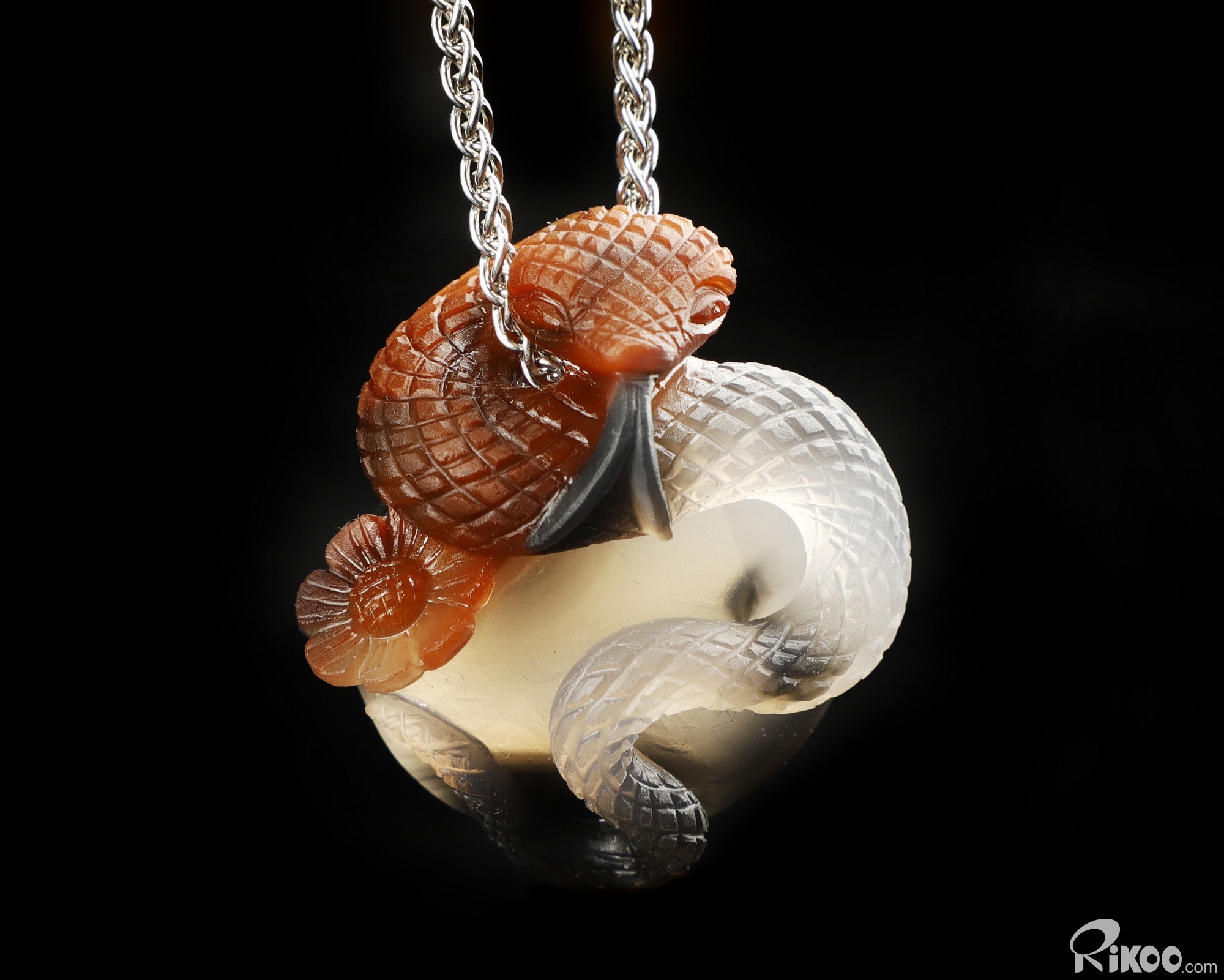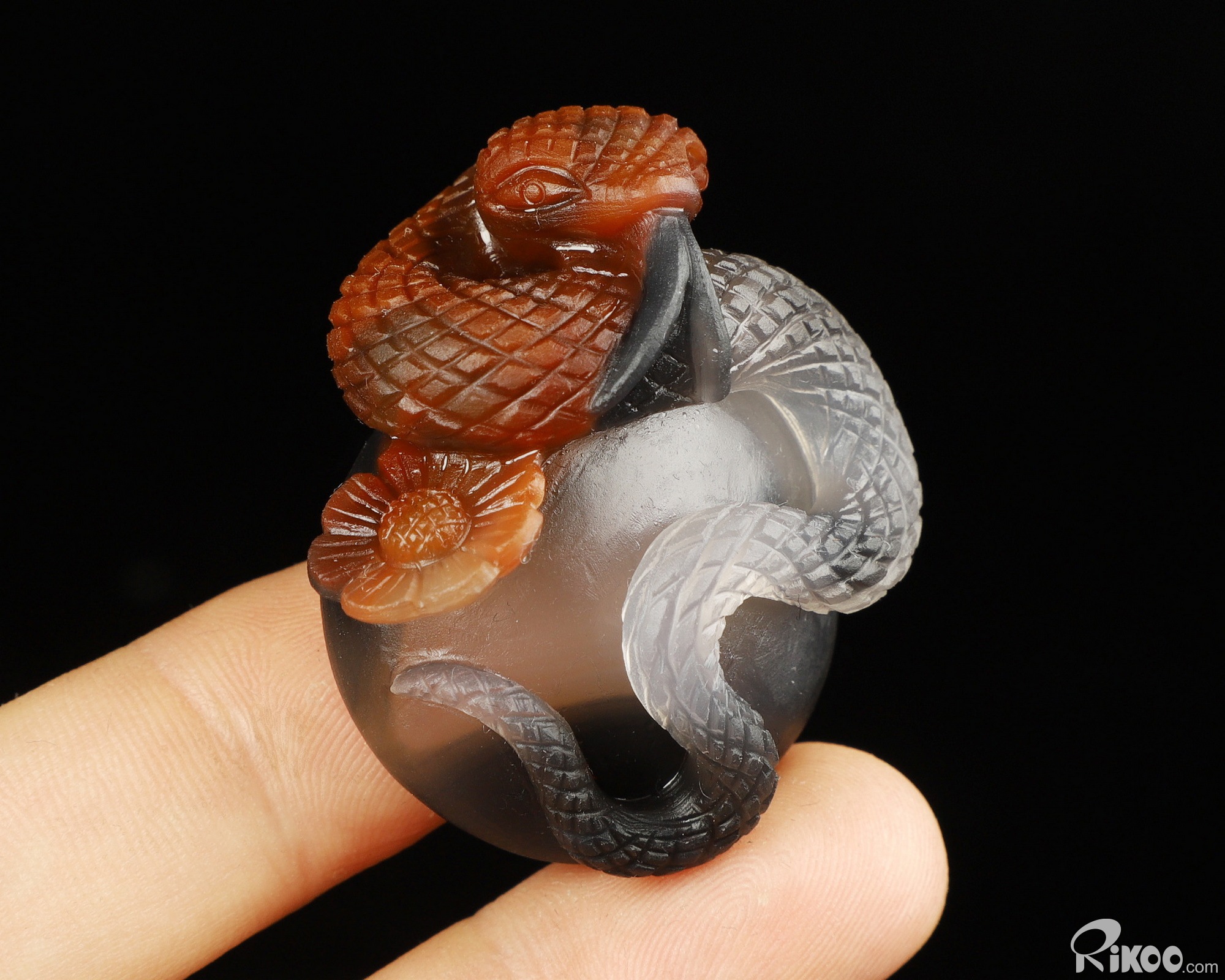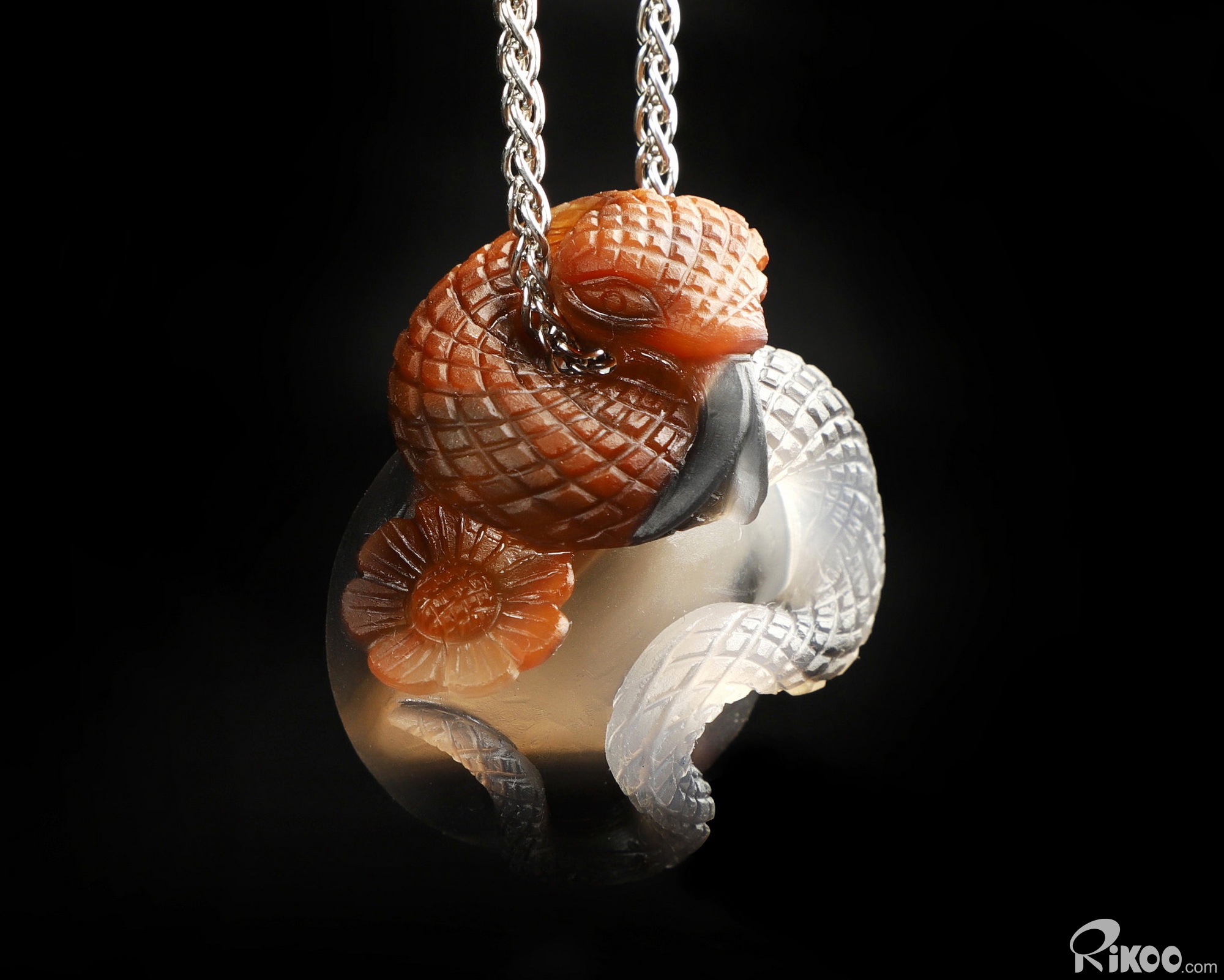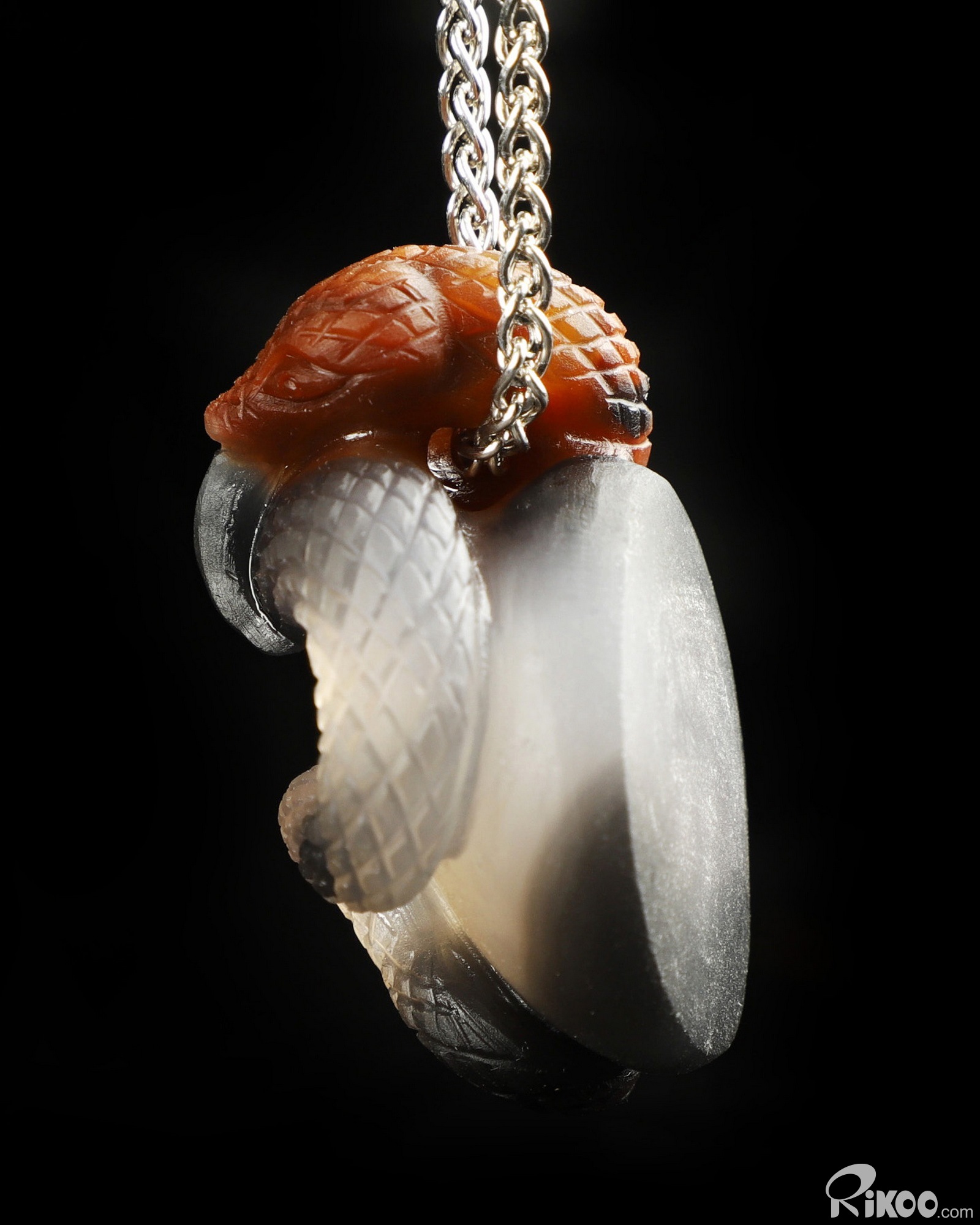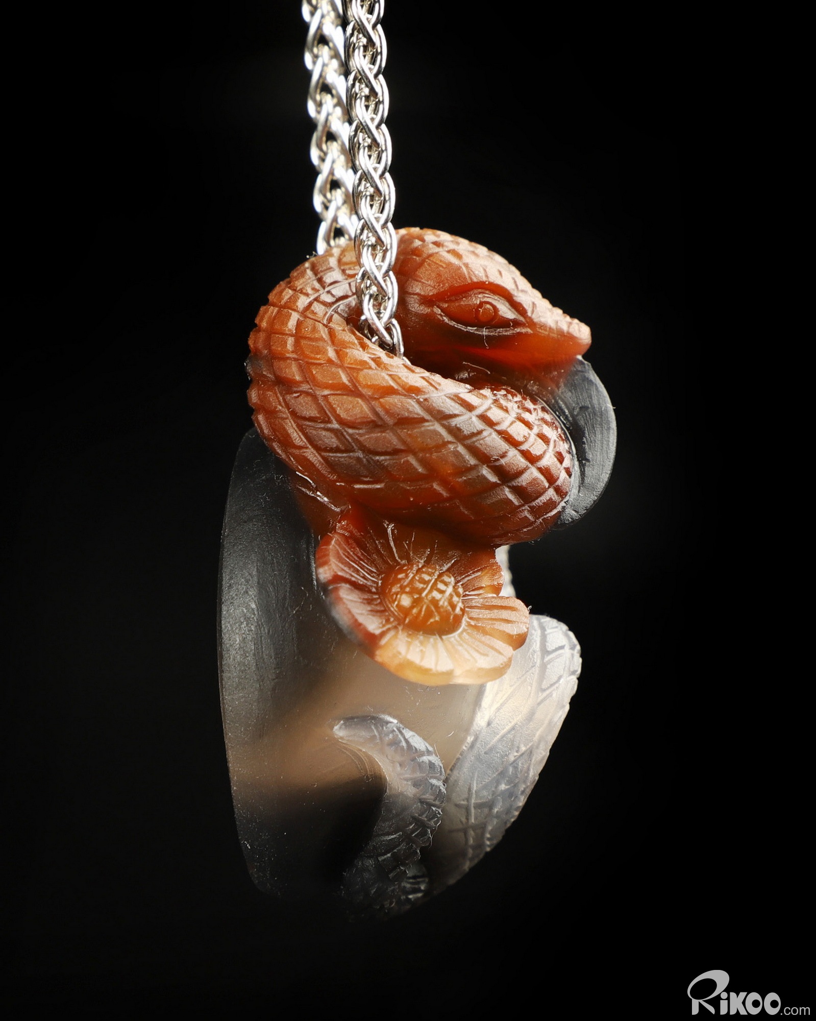 Amazing Unique 1.7" Premium Brazilian Agate Carved Crystal Snake Pendant