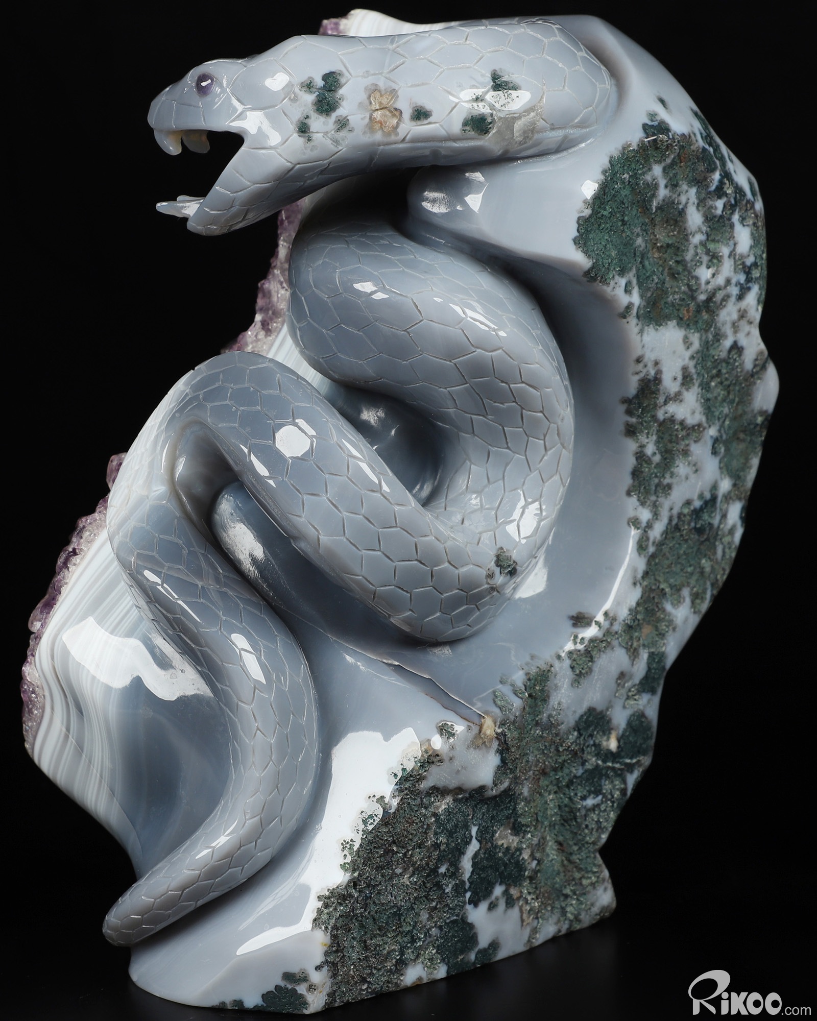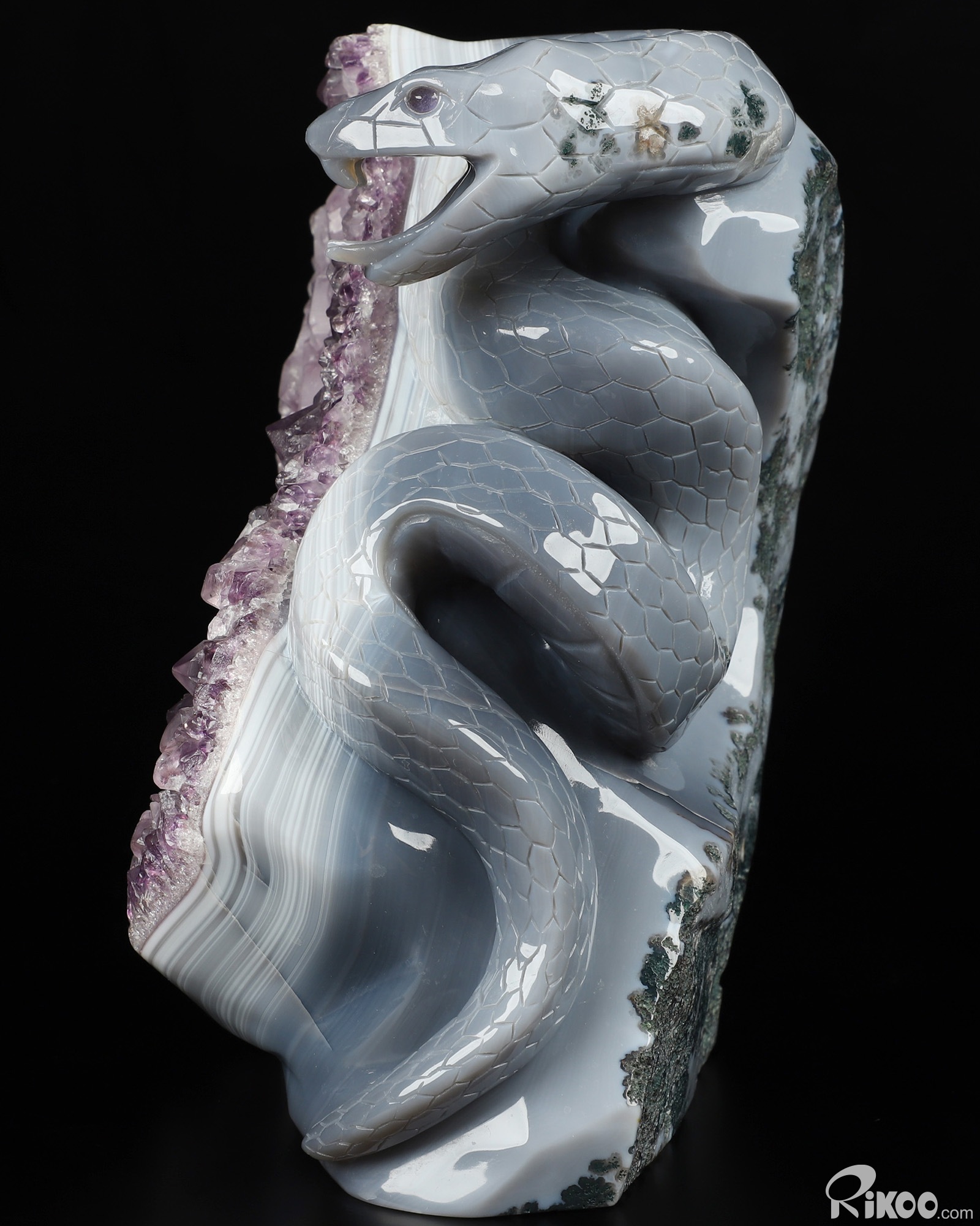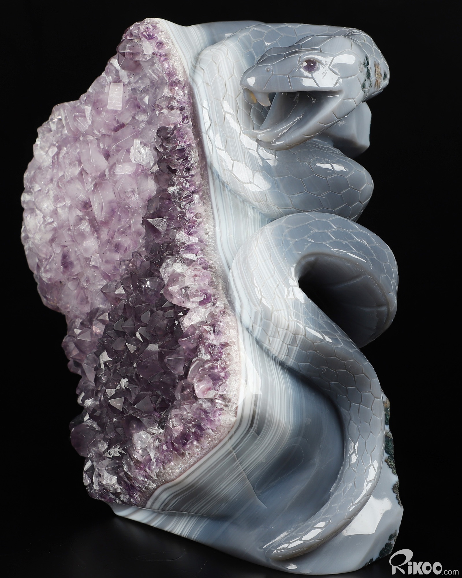 Amazing Unique 6.9" Amethyst & Agate Carved Crystal Snake Sculpture, Realistic