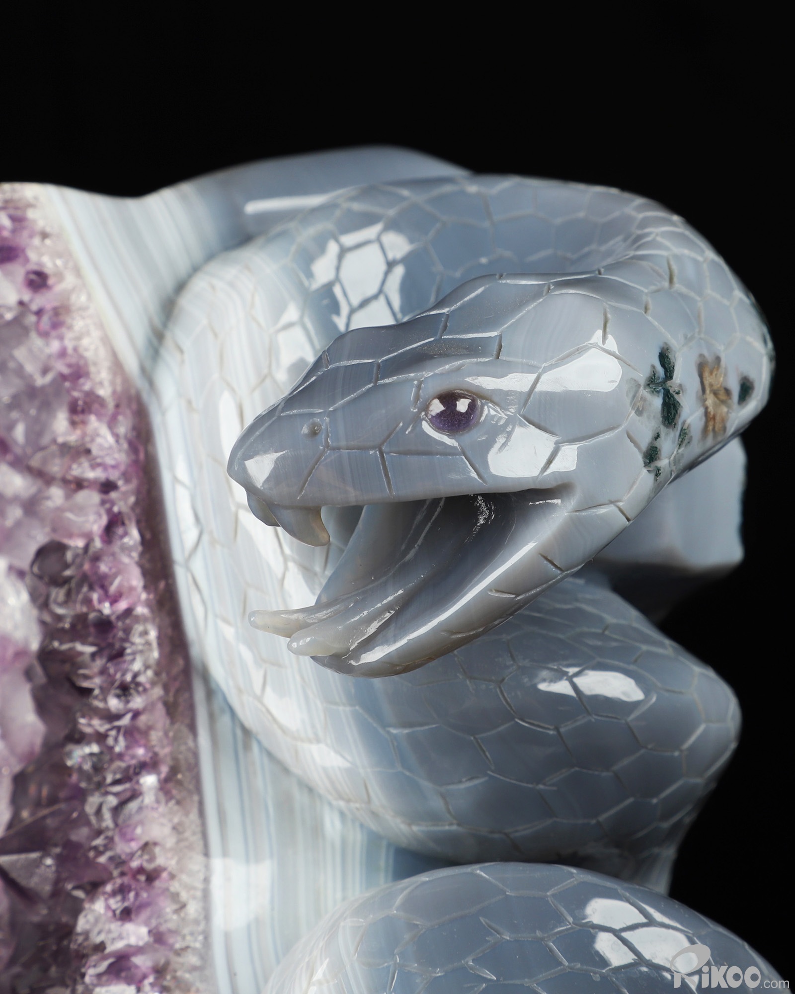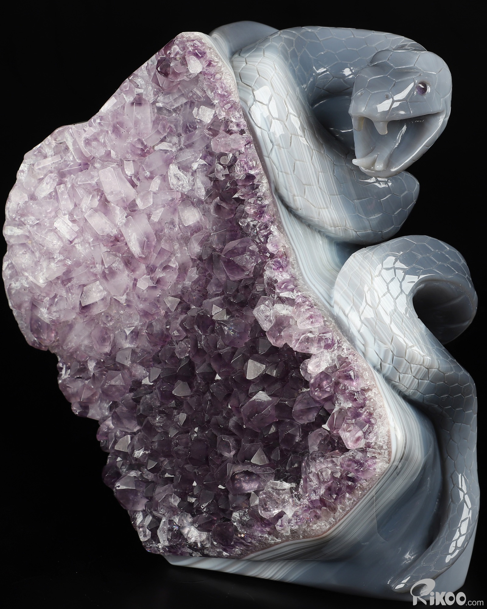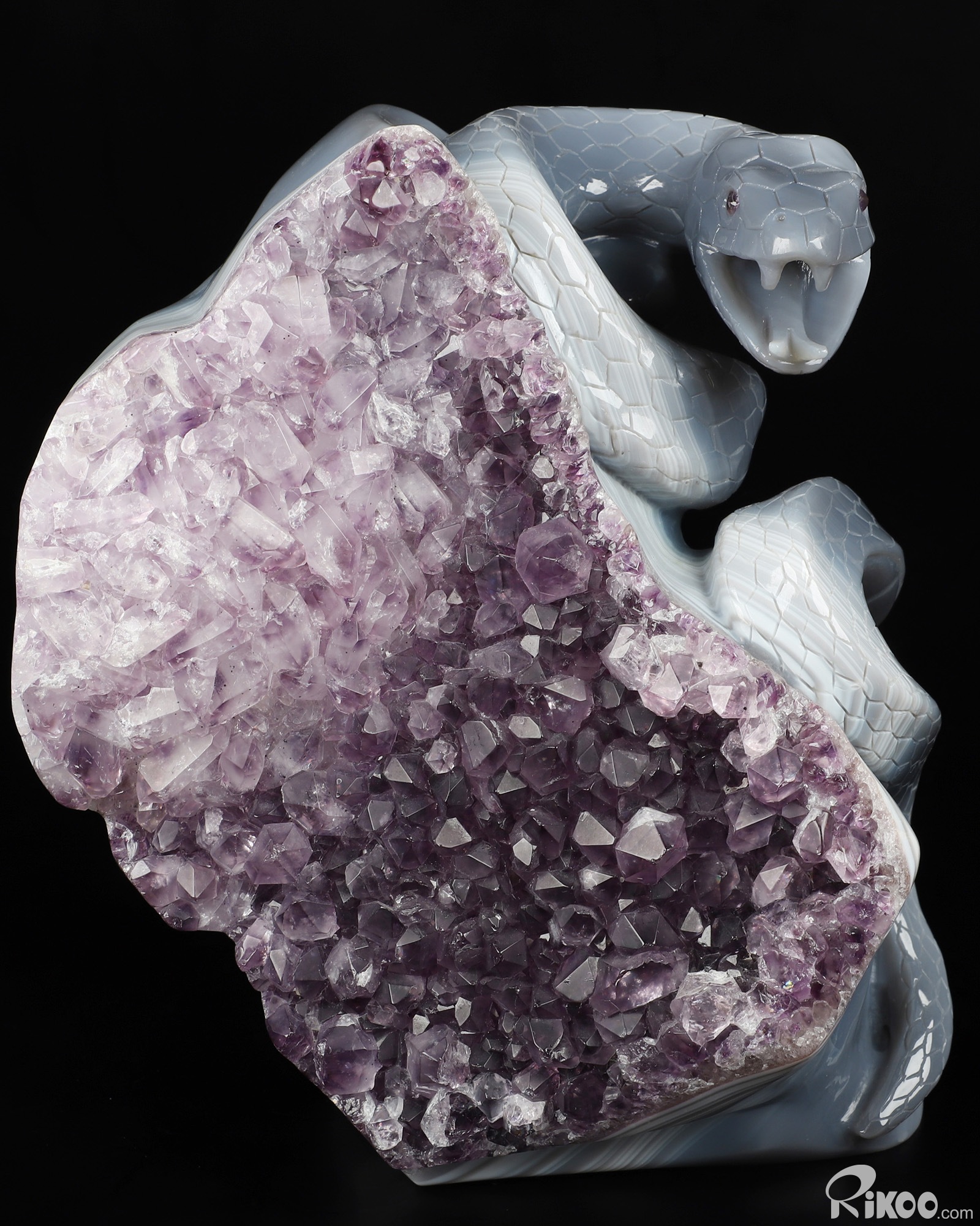 Amazing Unique 6.9" Amethyst & Agate Carved Crystal Snake Sculpture, Realistic