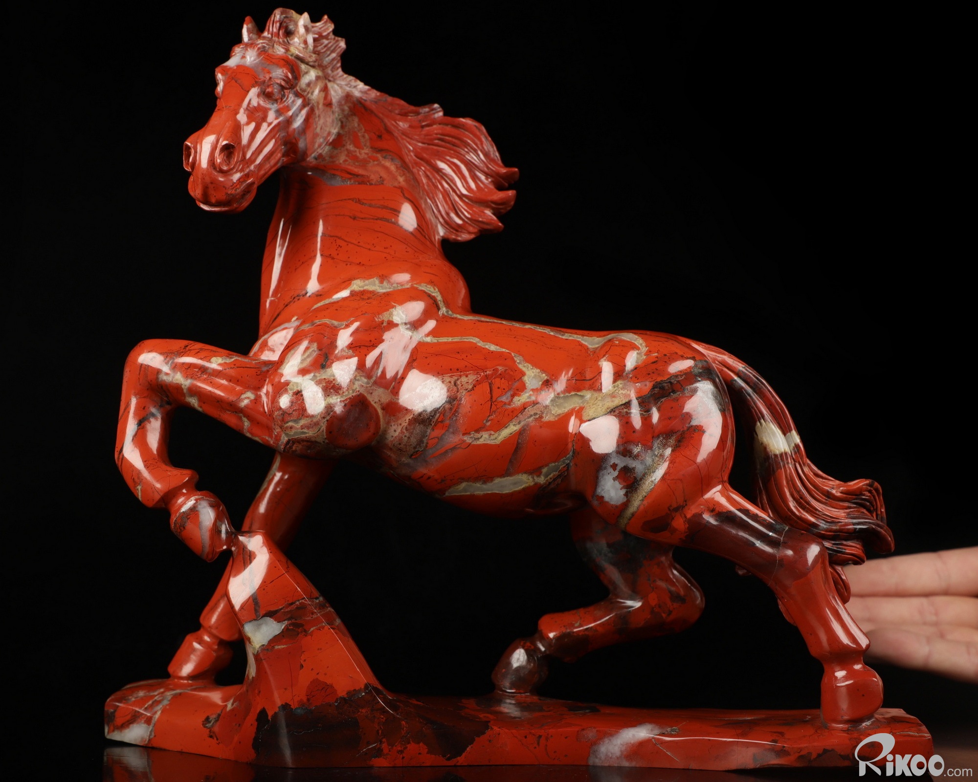 Awesome 10.1" Red Jasper Carved Crystal Horse Sculpture, Realistic, Crystal Healing