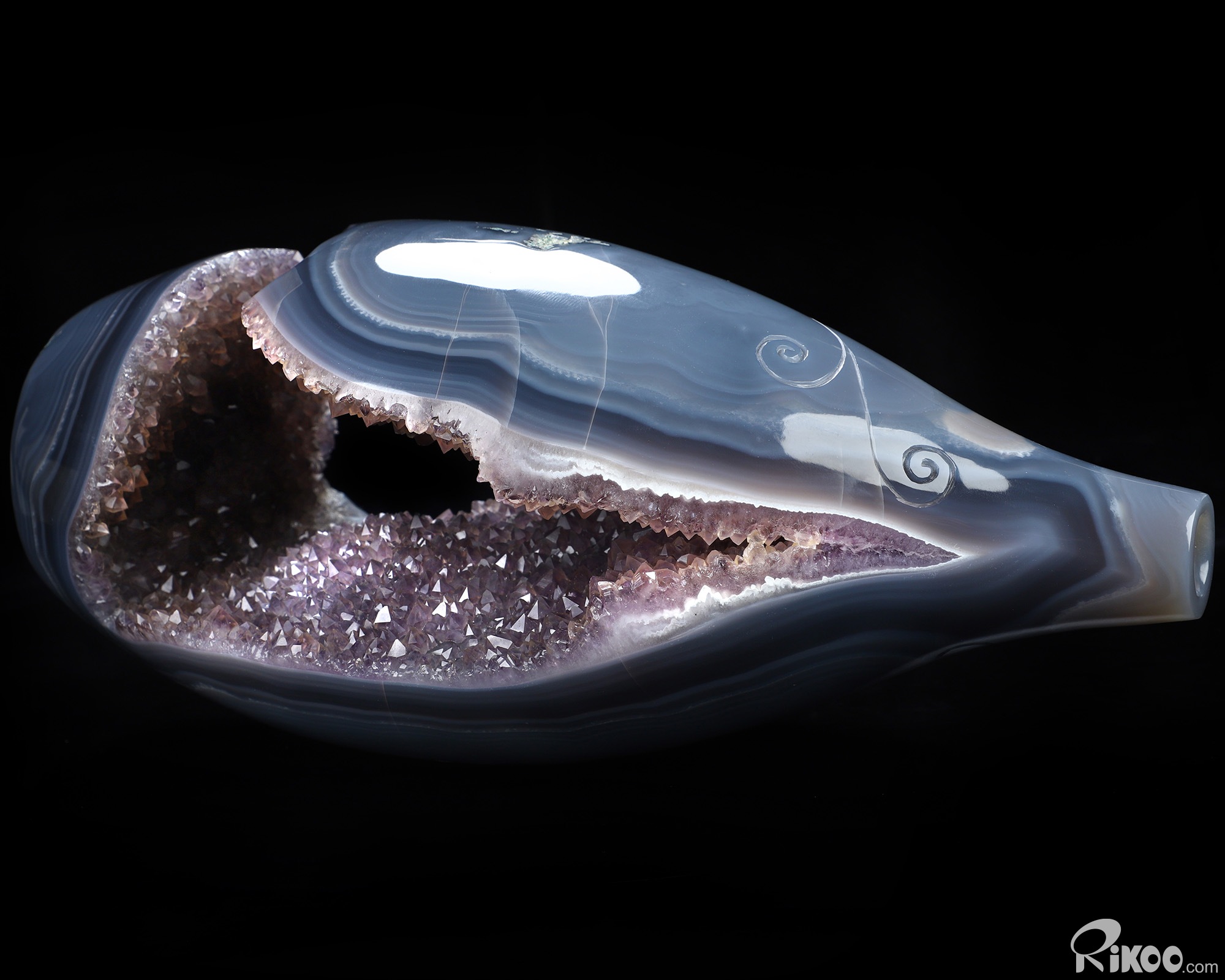 You are looking at an Agate Amethyst Geode sculpture. The sculpture is 10.4 inches long.