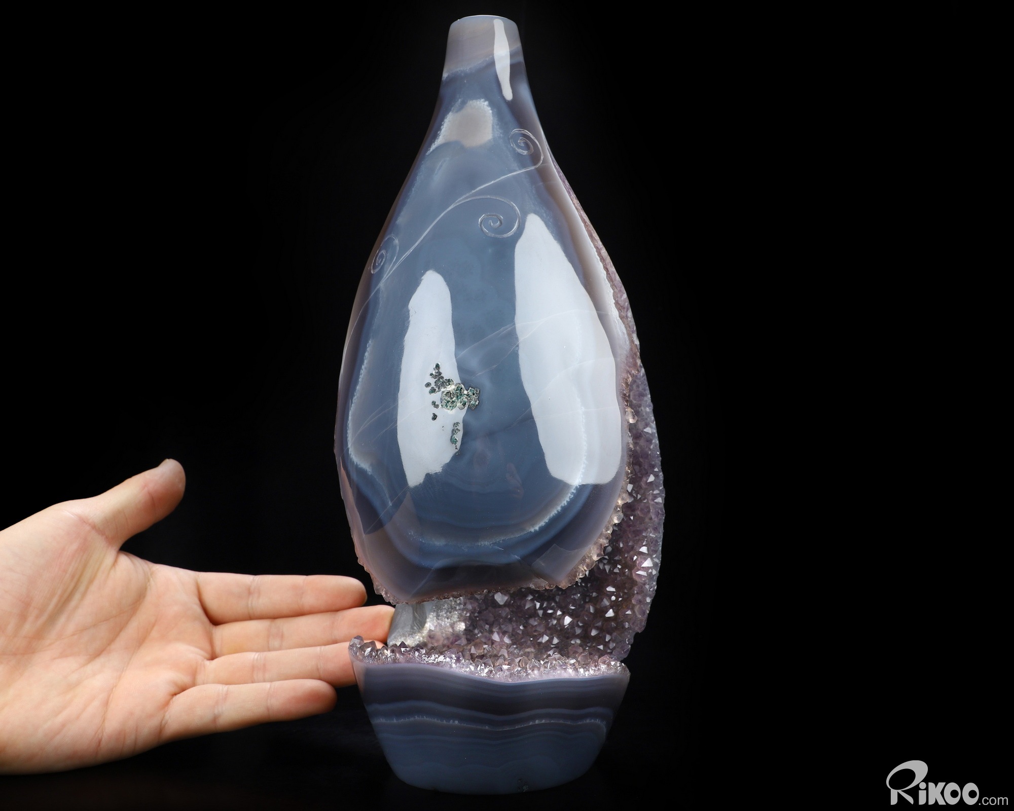 Awesome 10.4" Agate Amethyst Geode Hand Carved Crystal Vase Sculpture, Crystal Healing