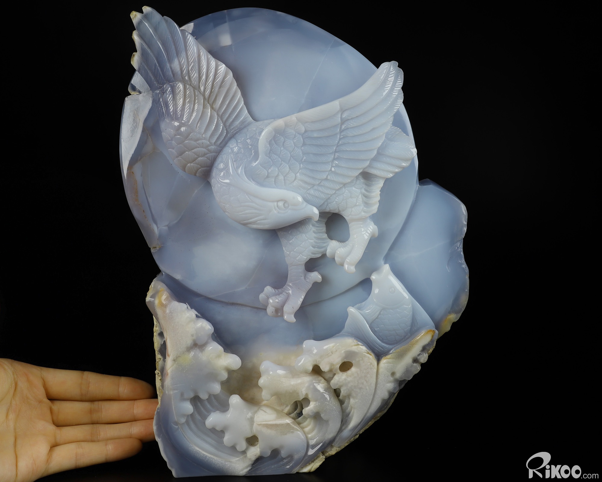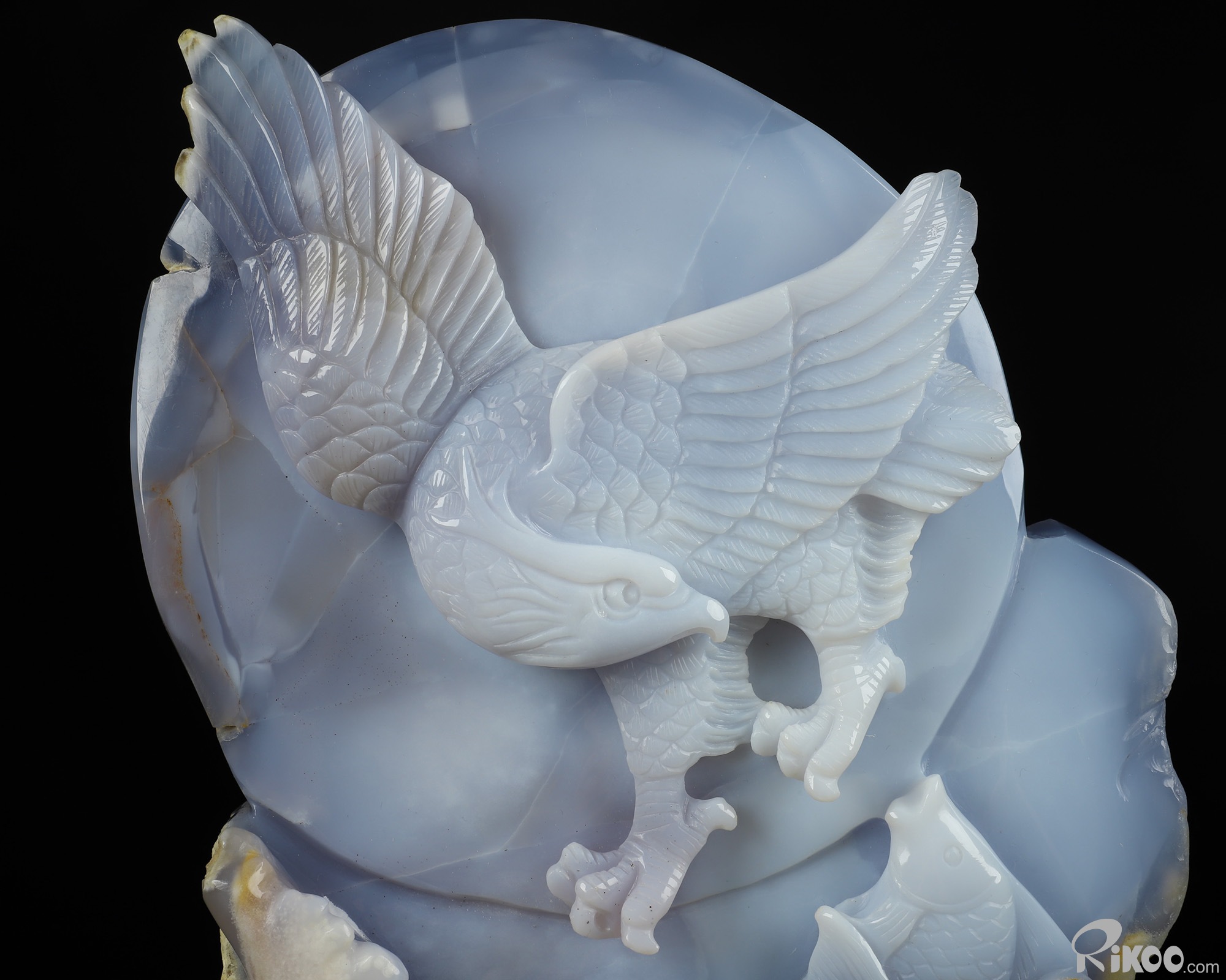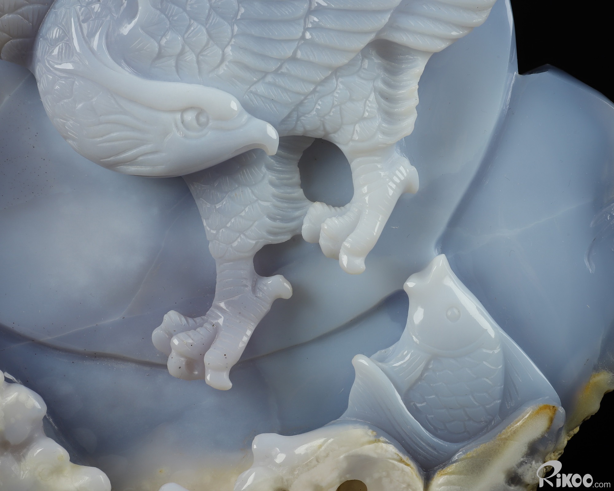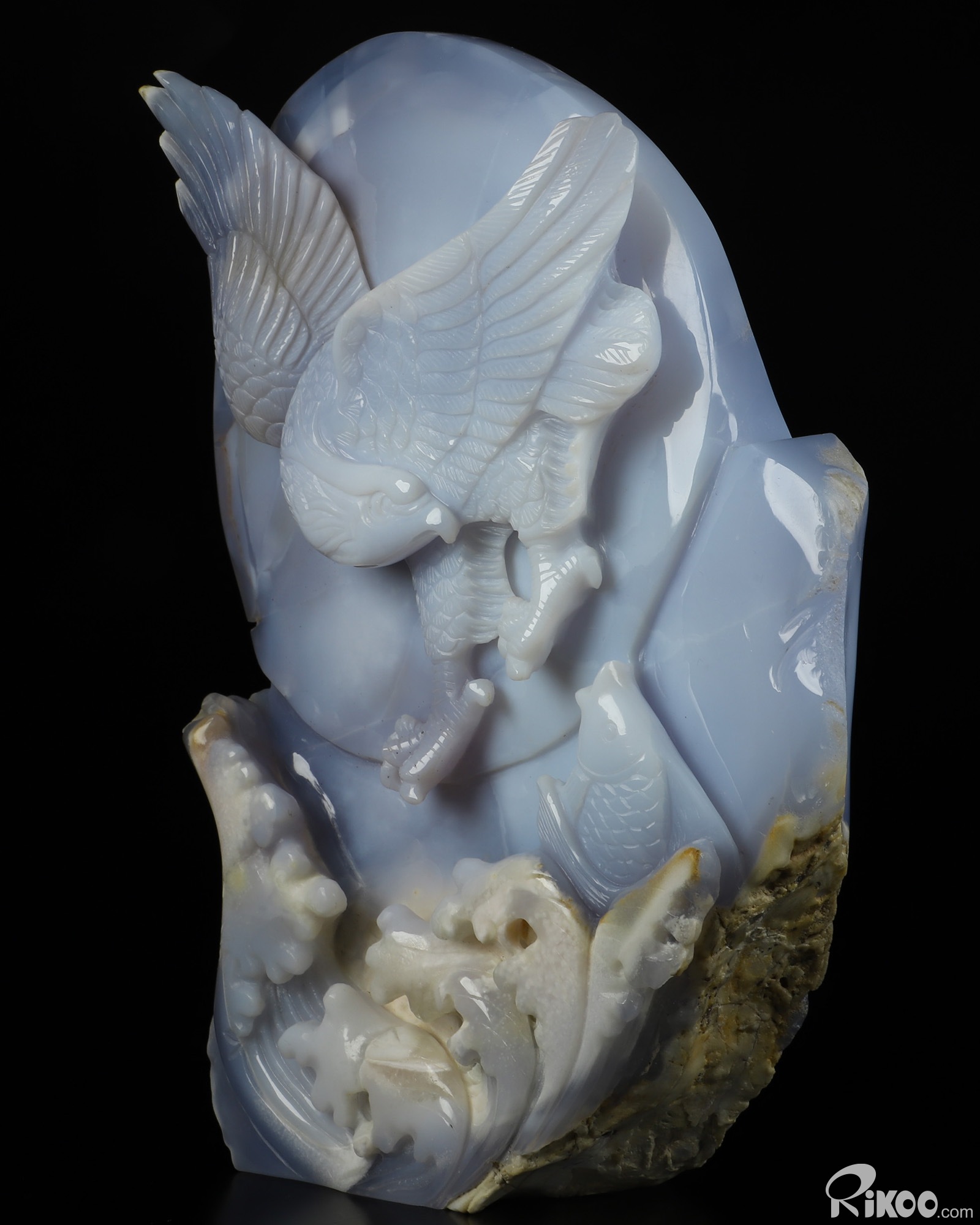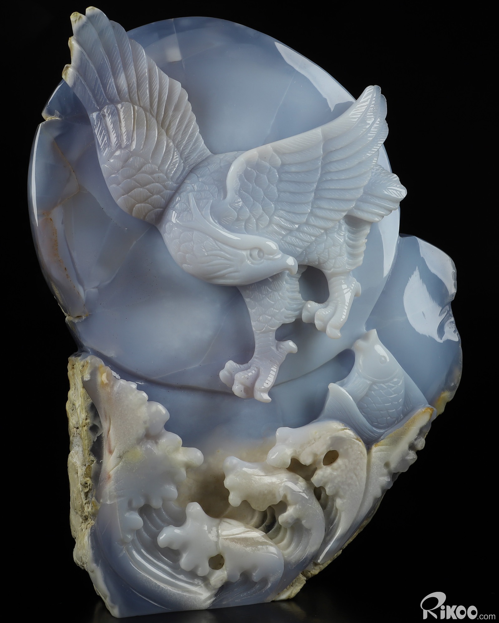 Awesome 10.6" Blue Chalcedony Carved Crystal Eagle & Fish Sculpture, Realistic, Crystal Healing