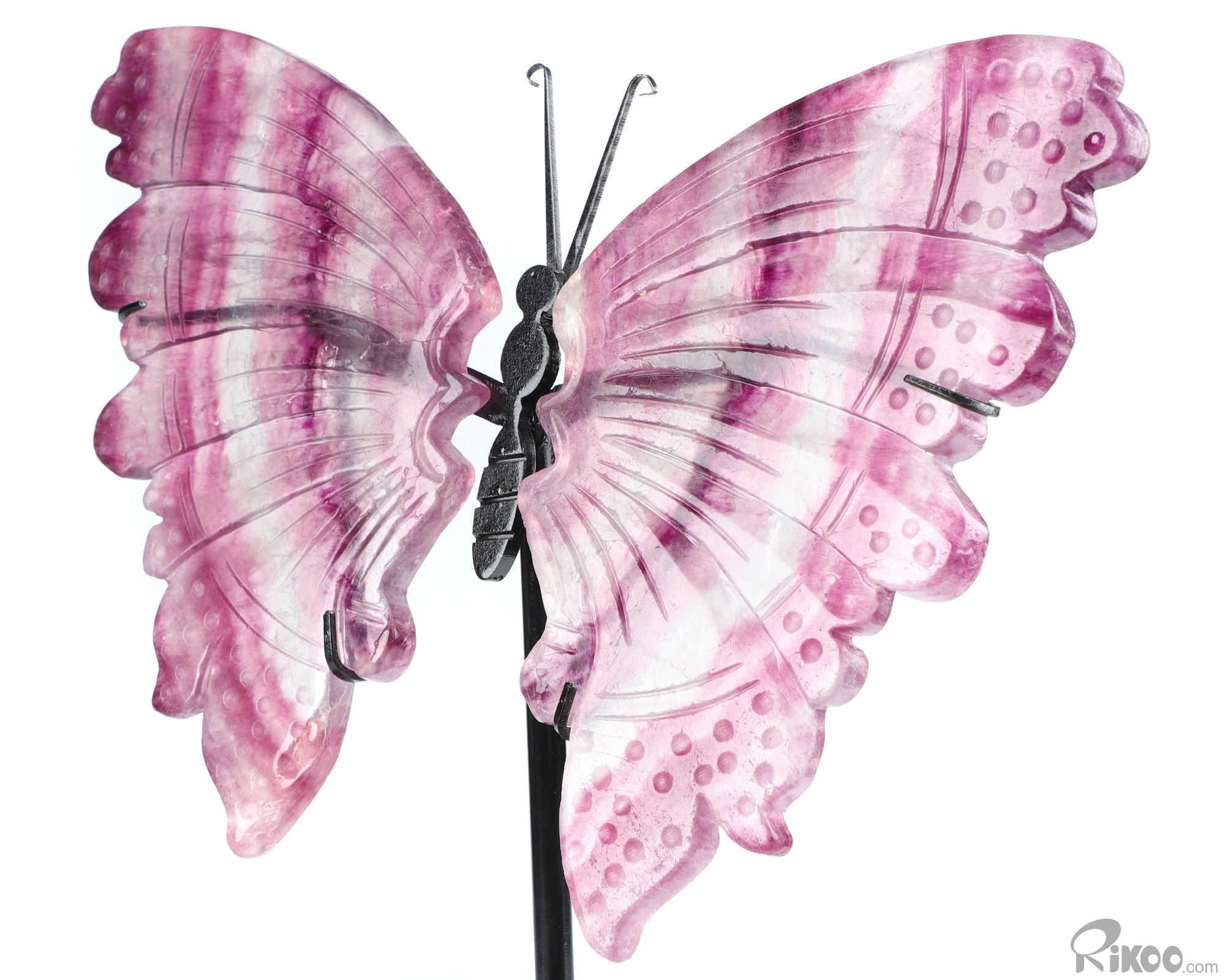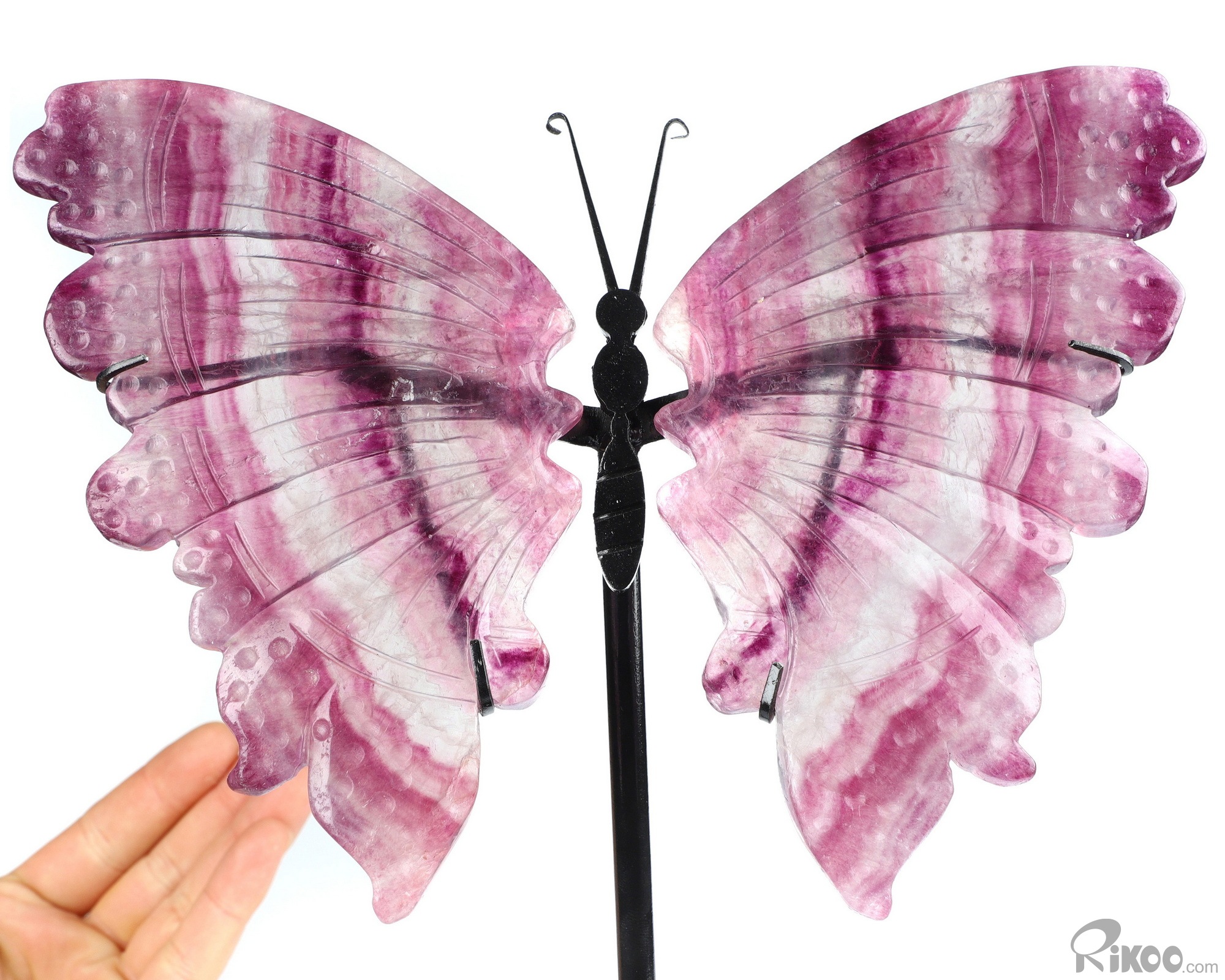 Awesome 10.8" Fluorite Carved Crystal Butterfly with Stand, Realistic, Crystal Healing