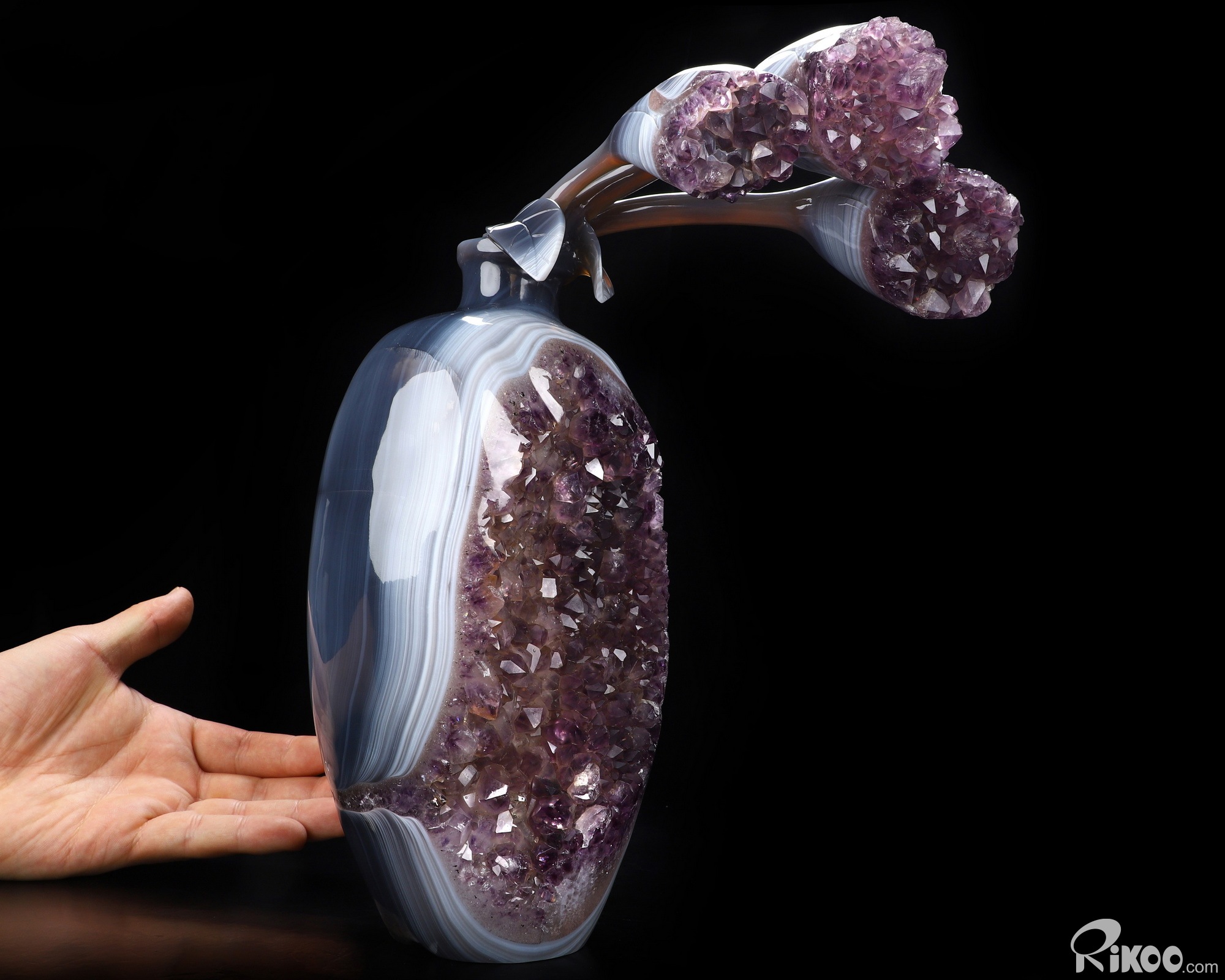 Awesome 11.3" Agate Amethyst Geode Hand Carved Crystal Vase Sculpture, Crystal Healing