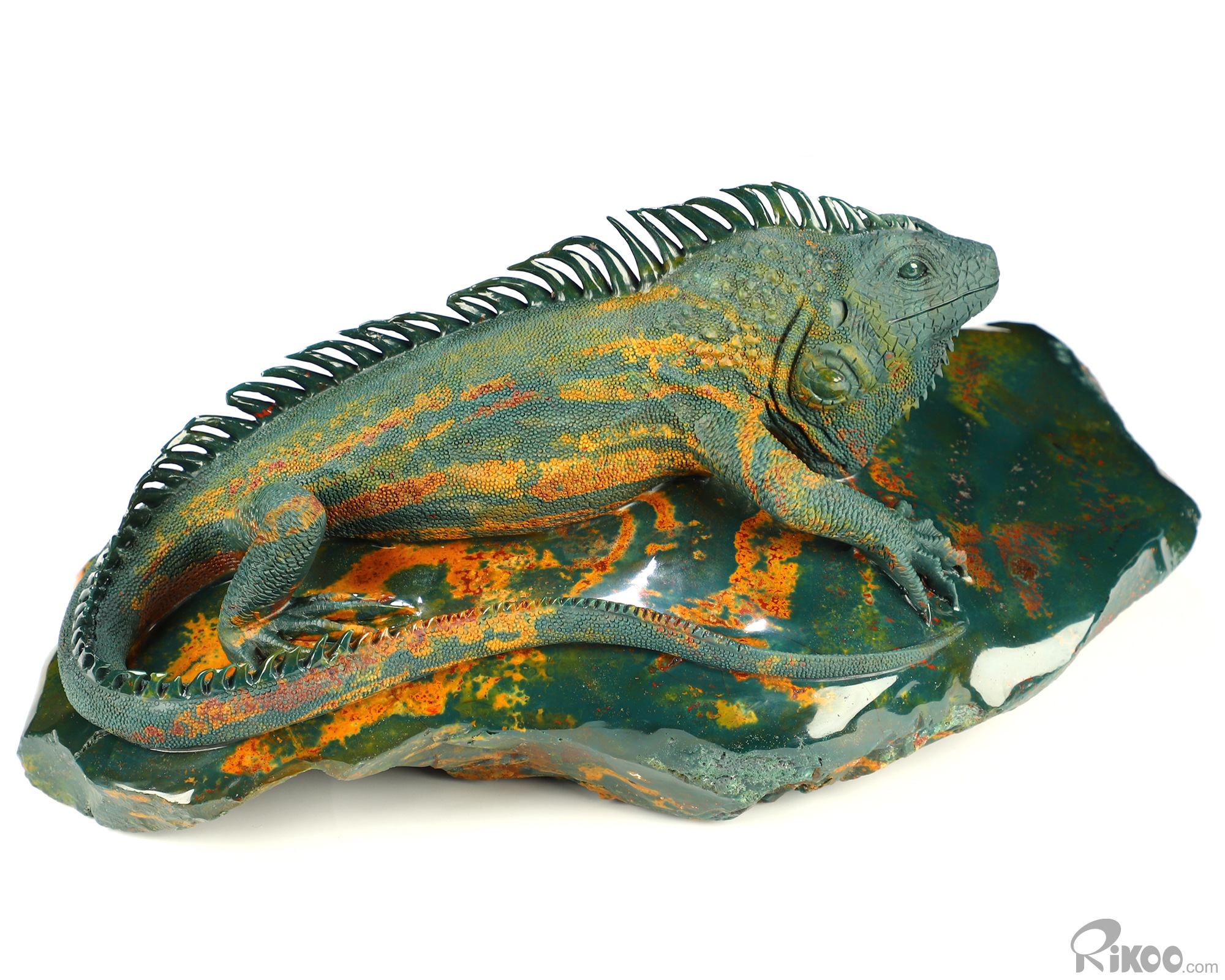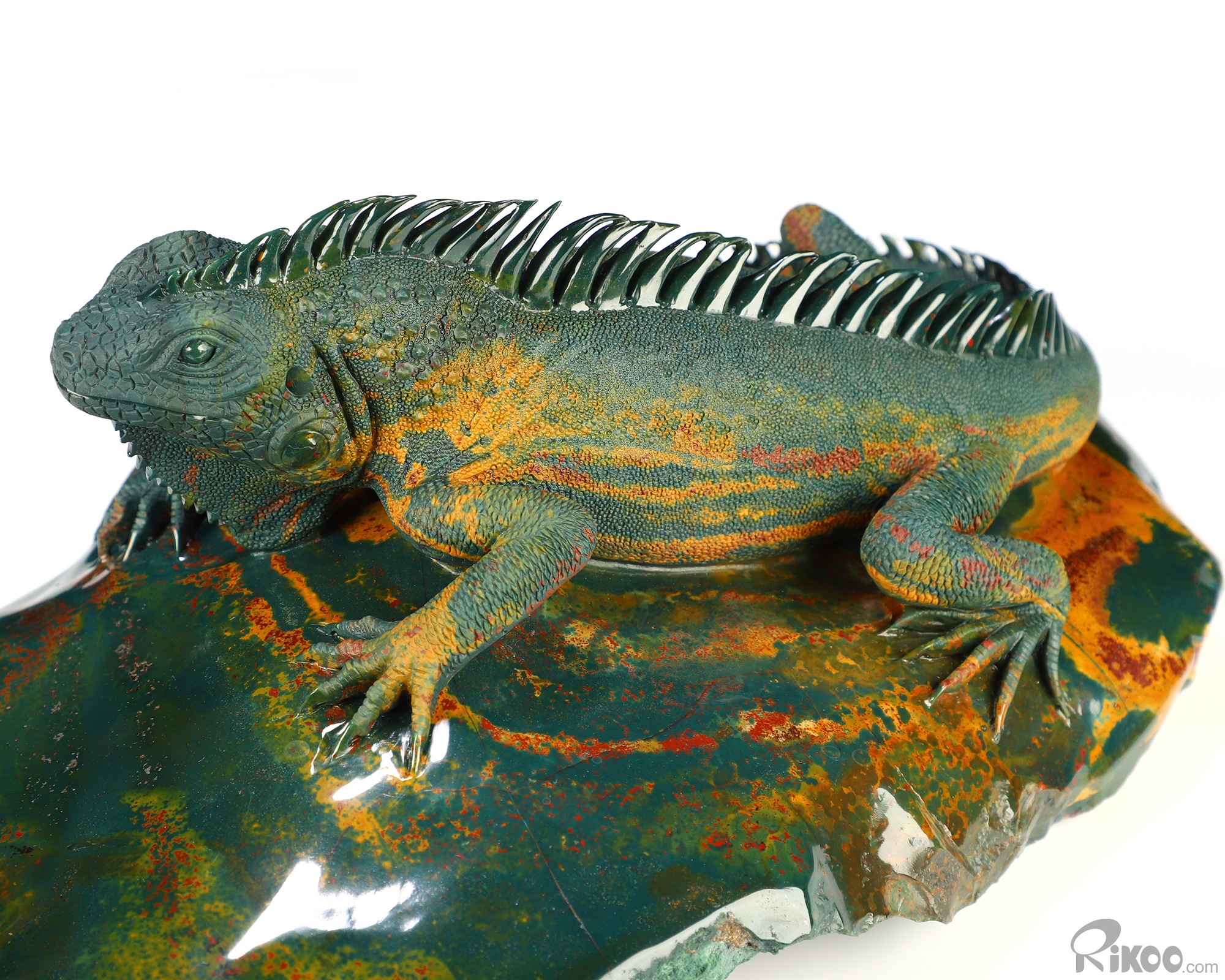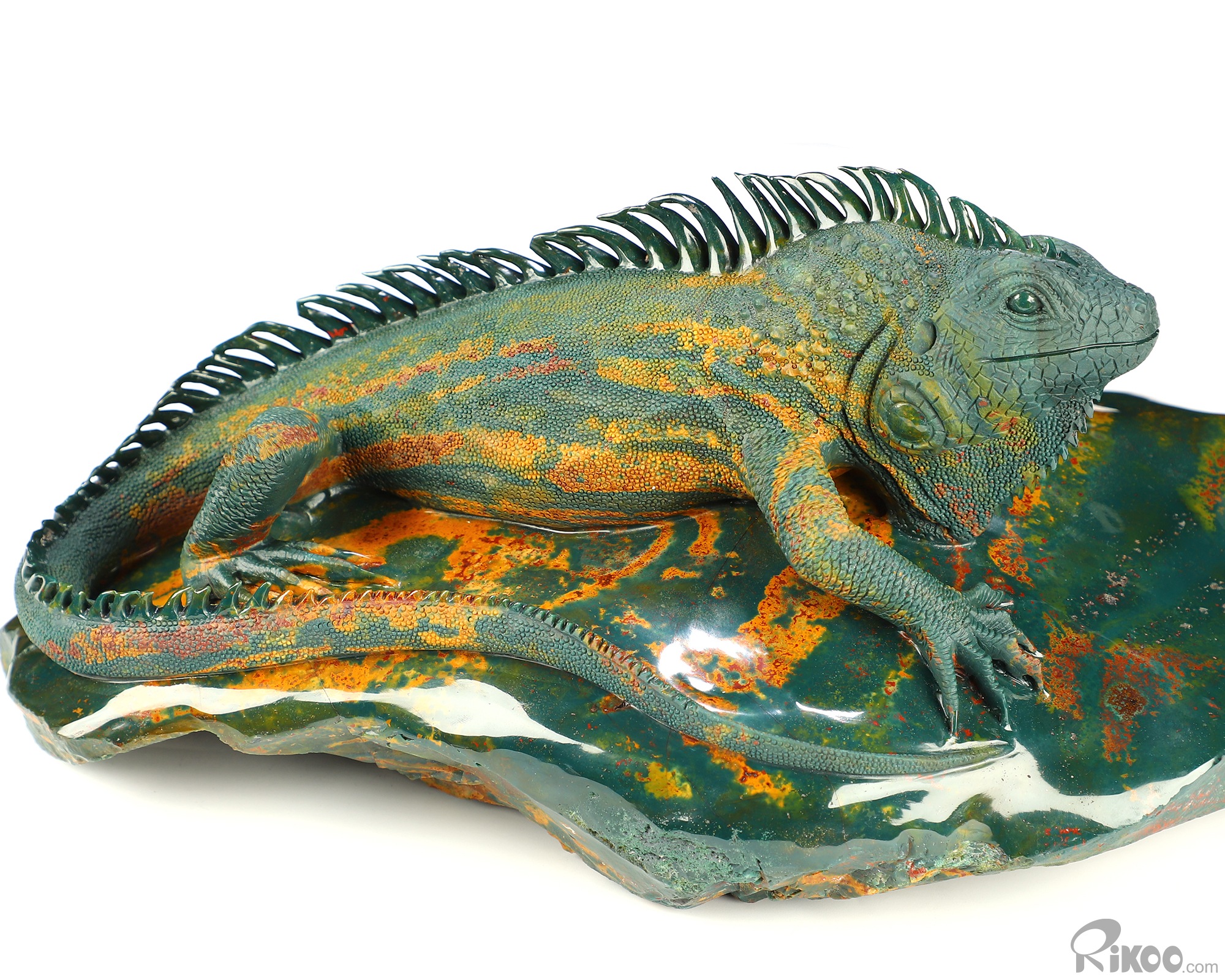 14.9LB Awesome 13.7" Bloodstone Hand Carved Crystal Lizard Sculpture, Crystal Healing