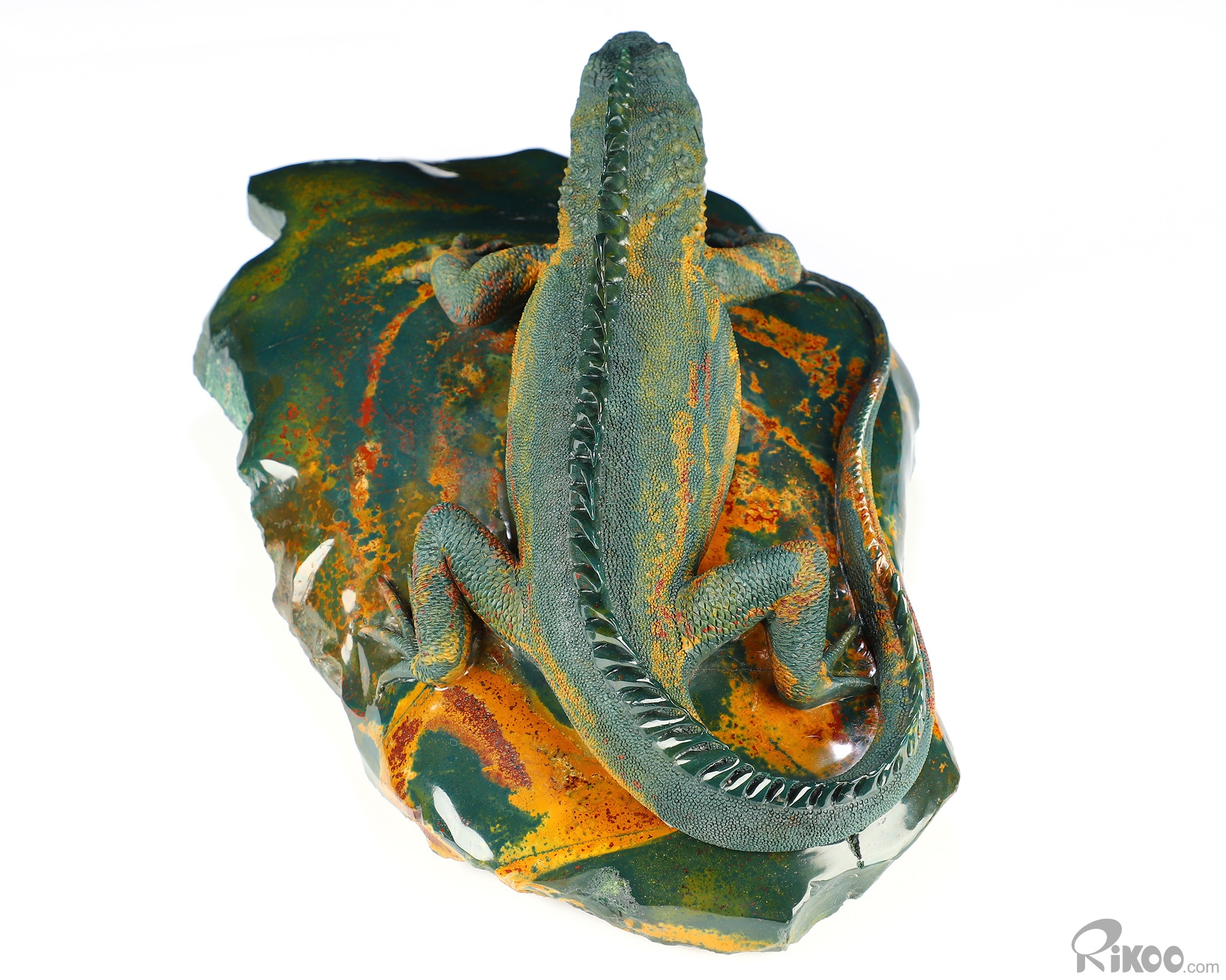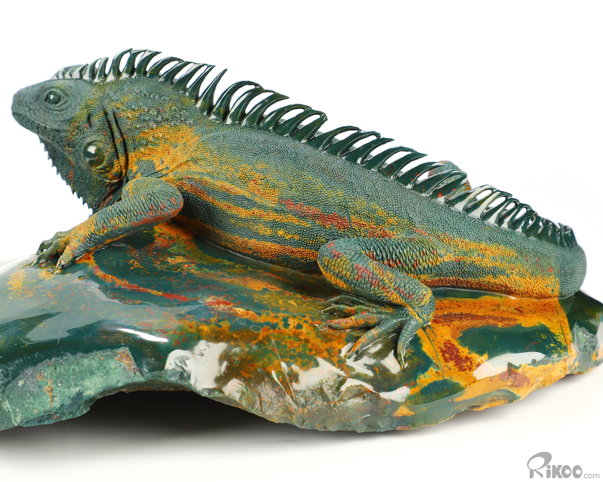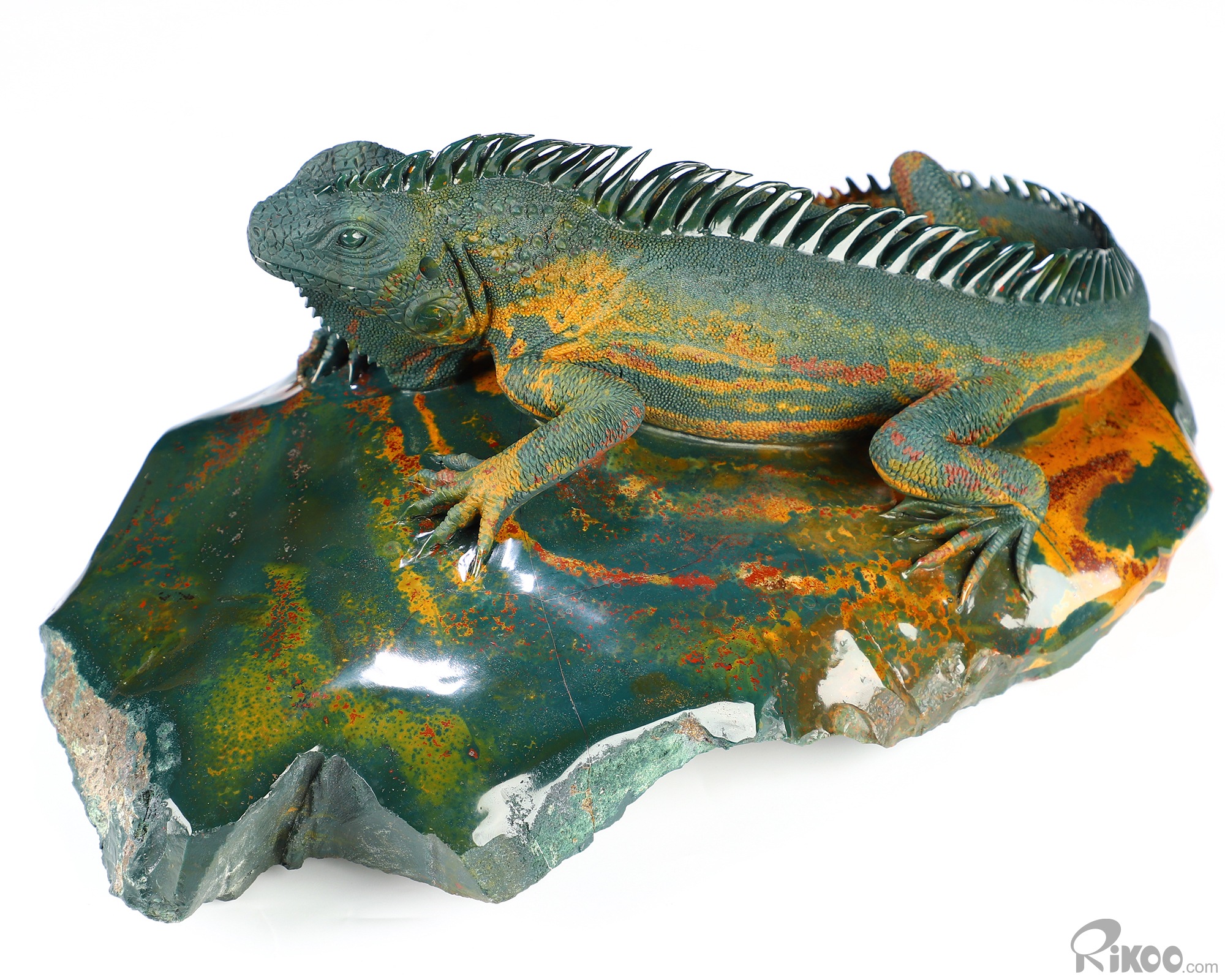 14.9LB Awesome 13.7" Bloodstone Hand Carved Crystal Lizard Sculpture, Crystal Healing
