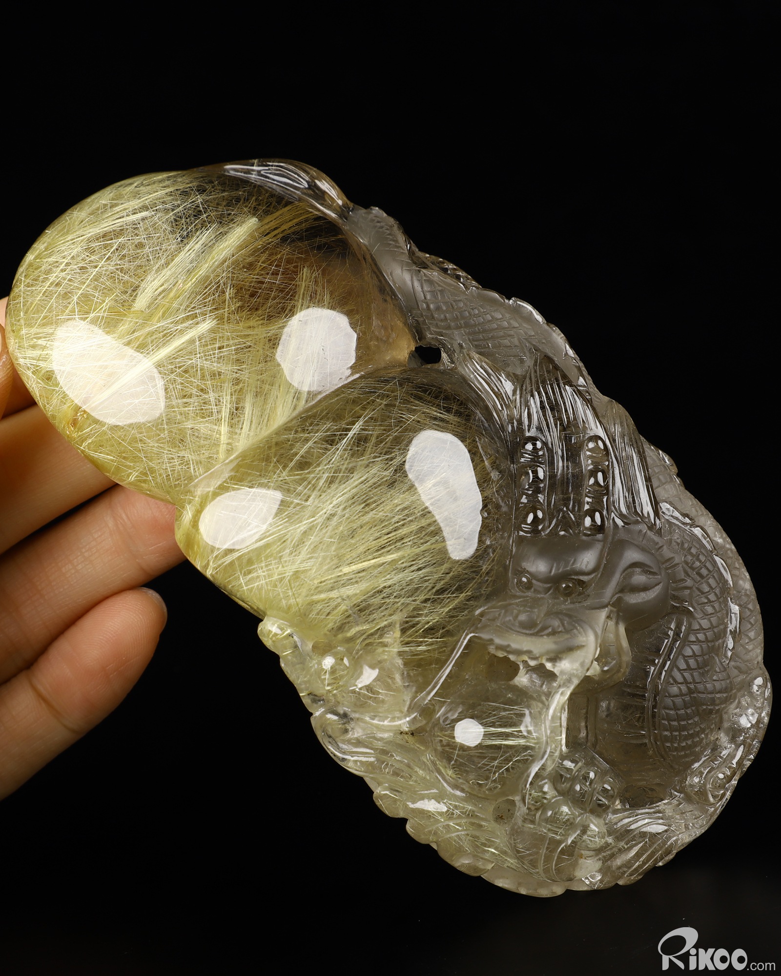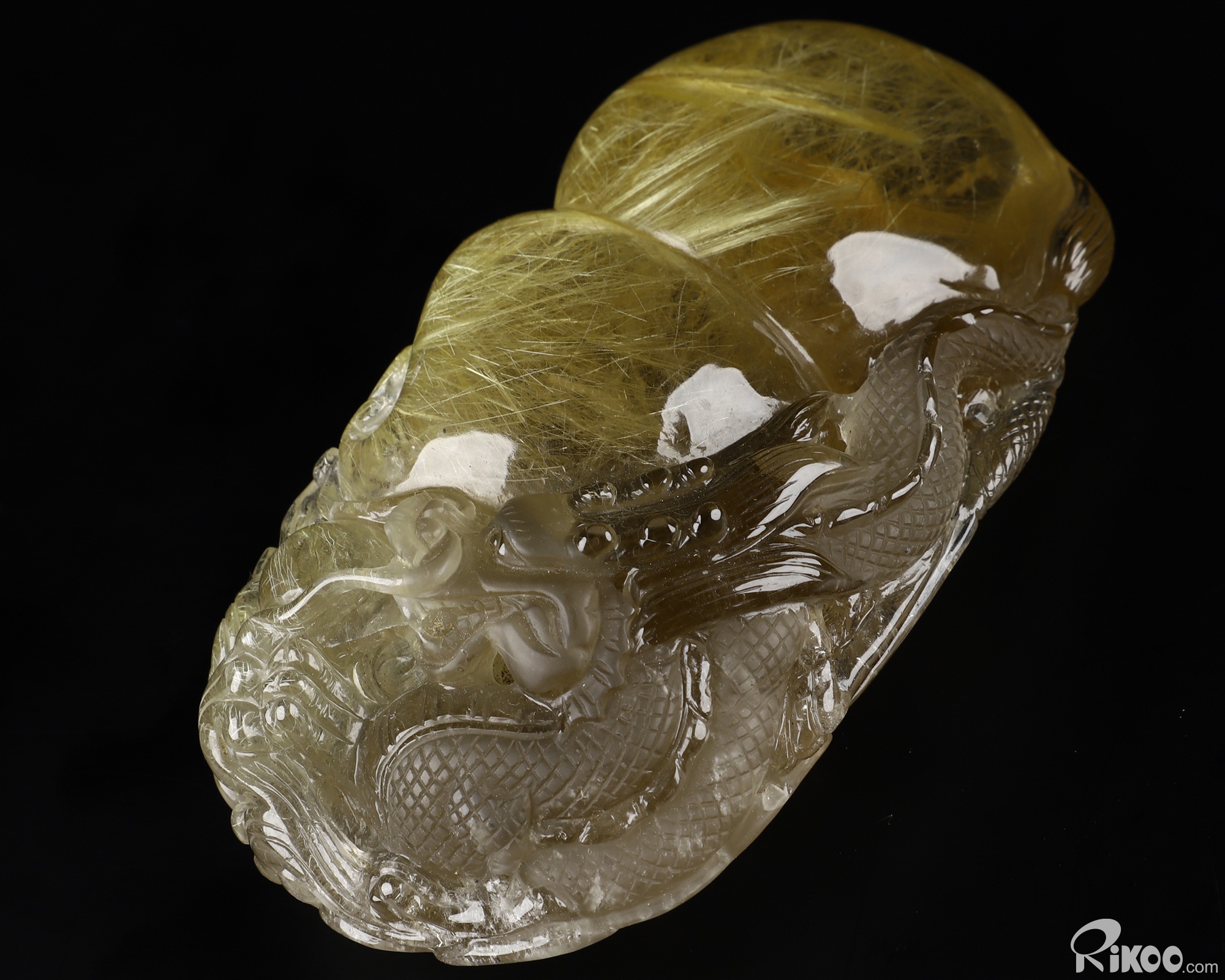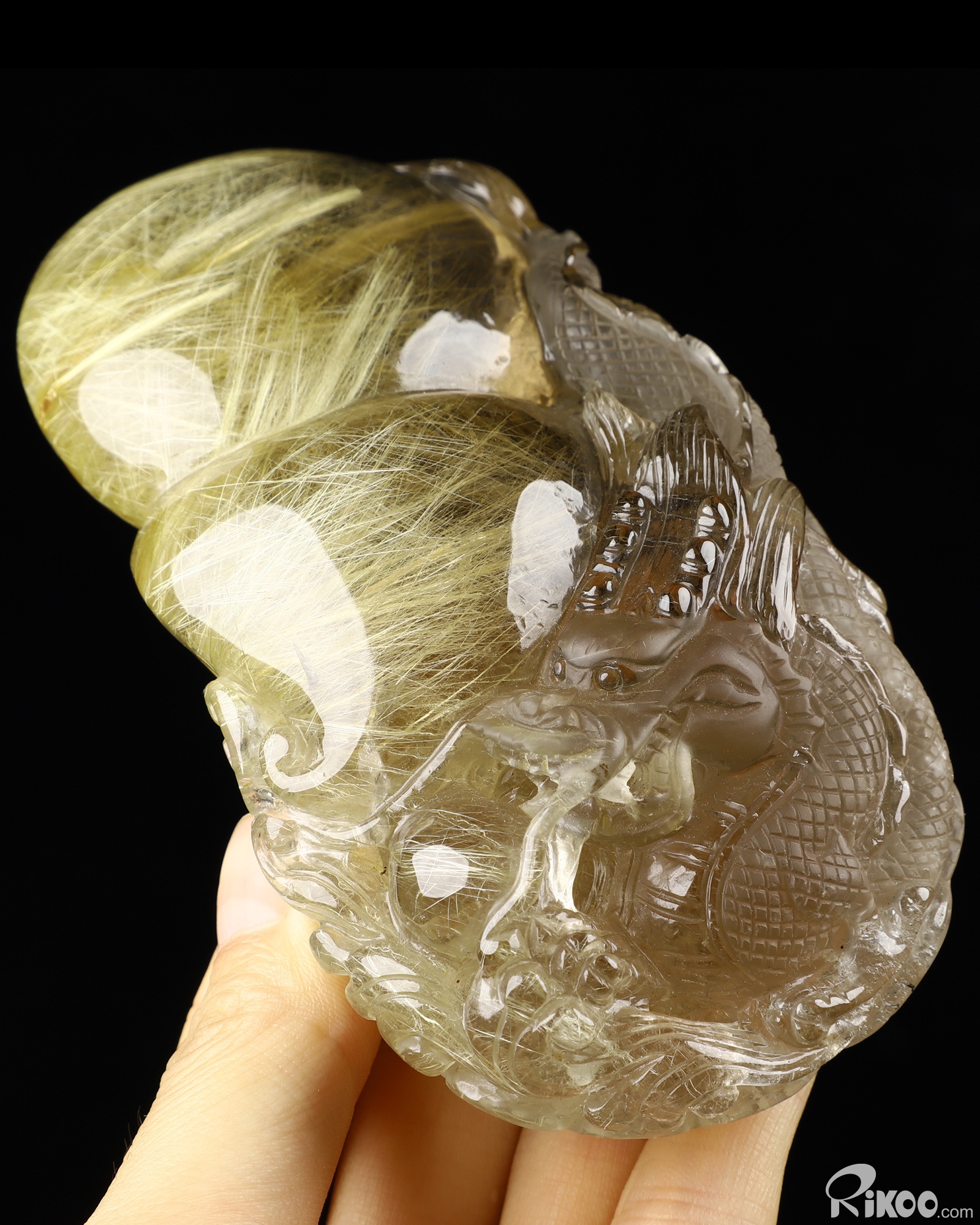 Awesome 4.7" Rutilated Quartz Rock Crystal Carved Crystal Dragon Sculpture, Crystal Healing