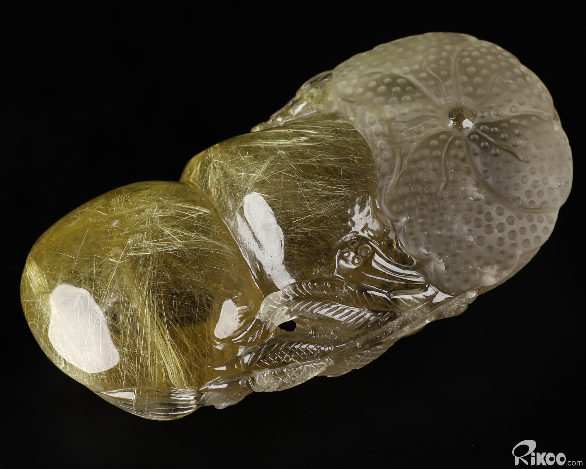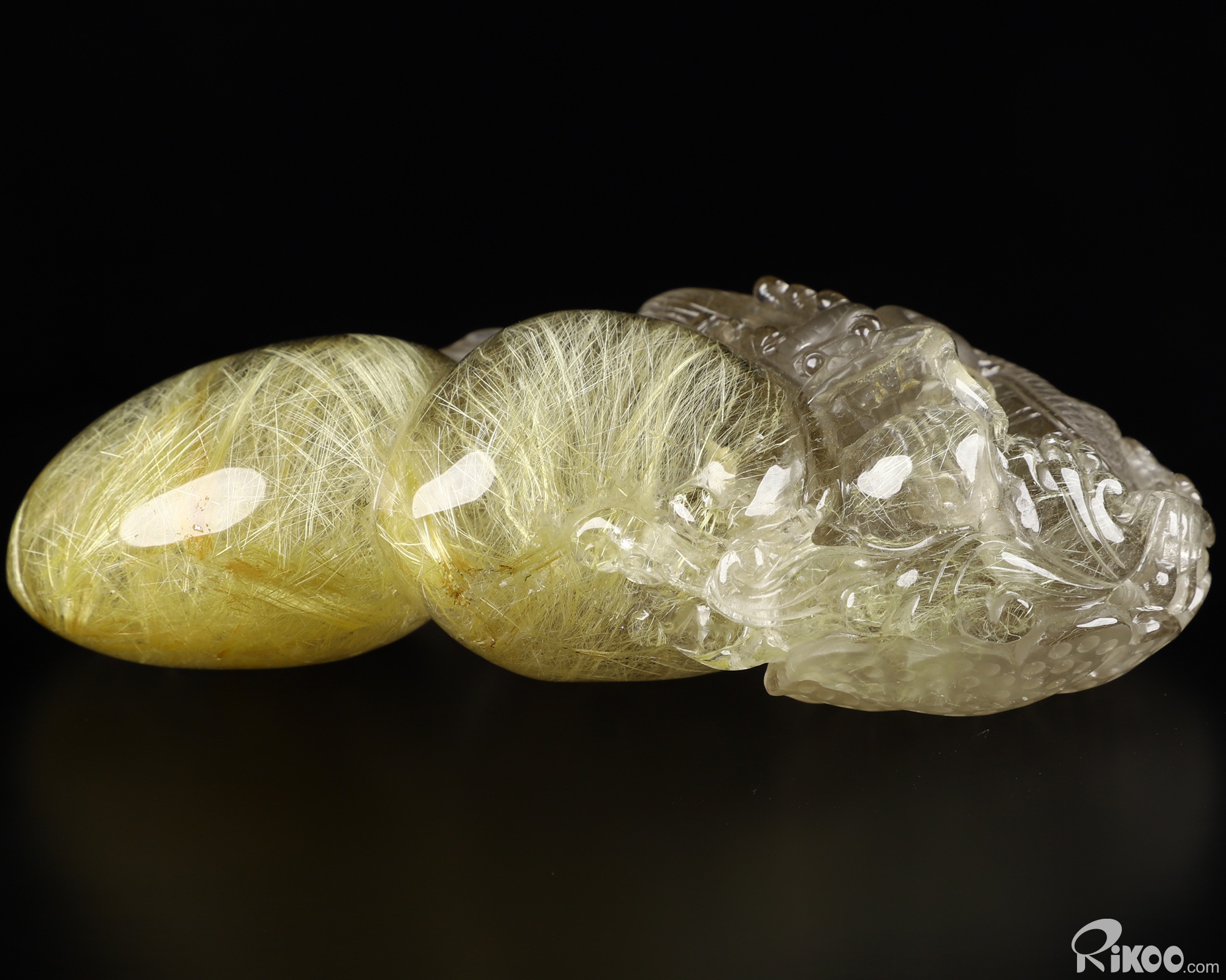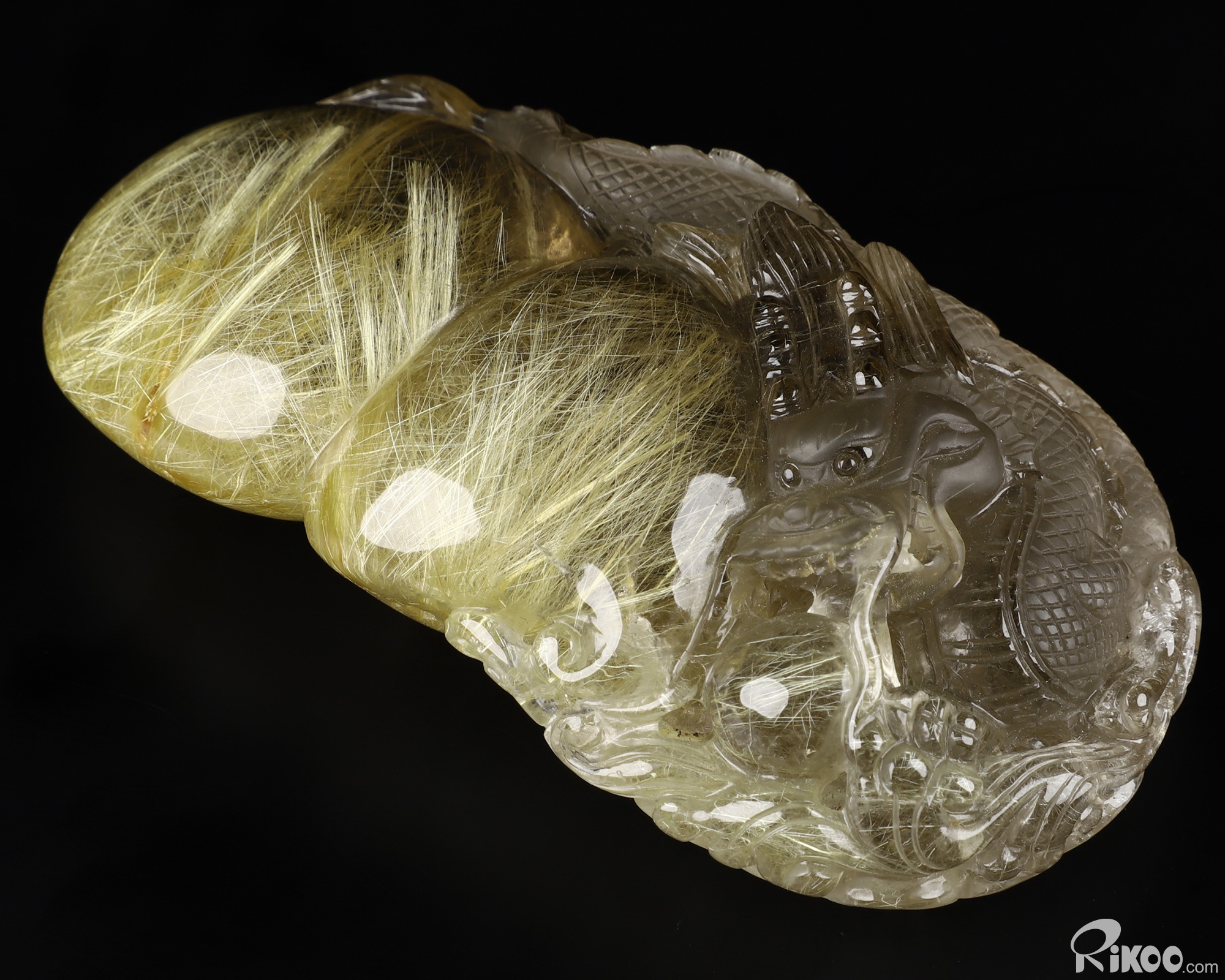 Awesome 4.7" Rutilated Quartz Rock Crystal Carved Crystal Dragon Sculpture, Crystal Healing