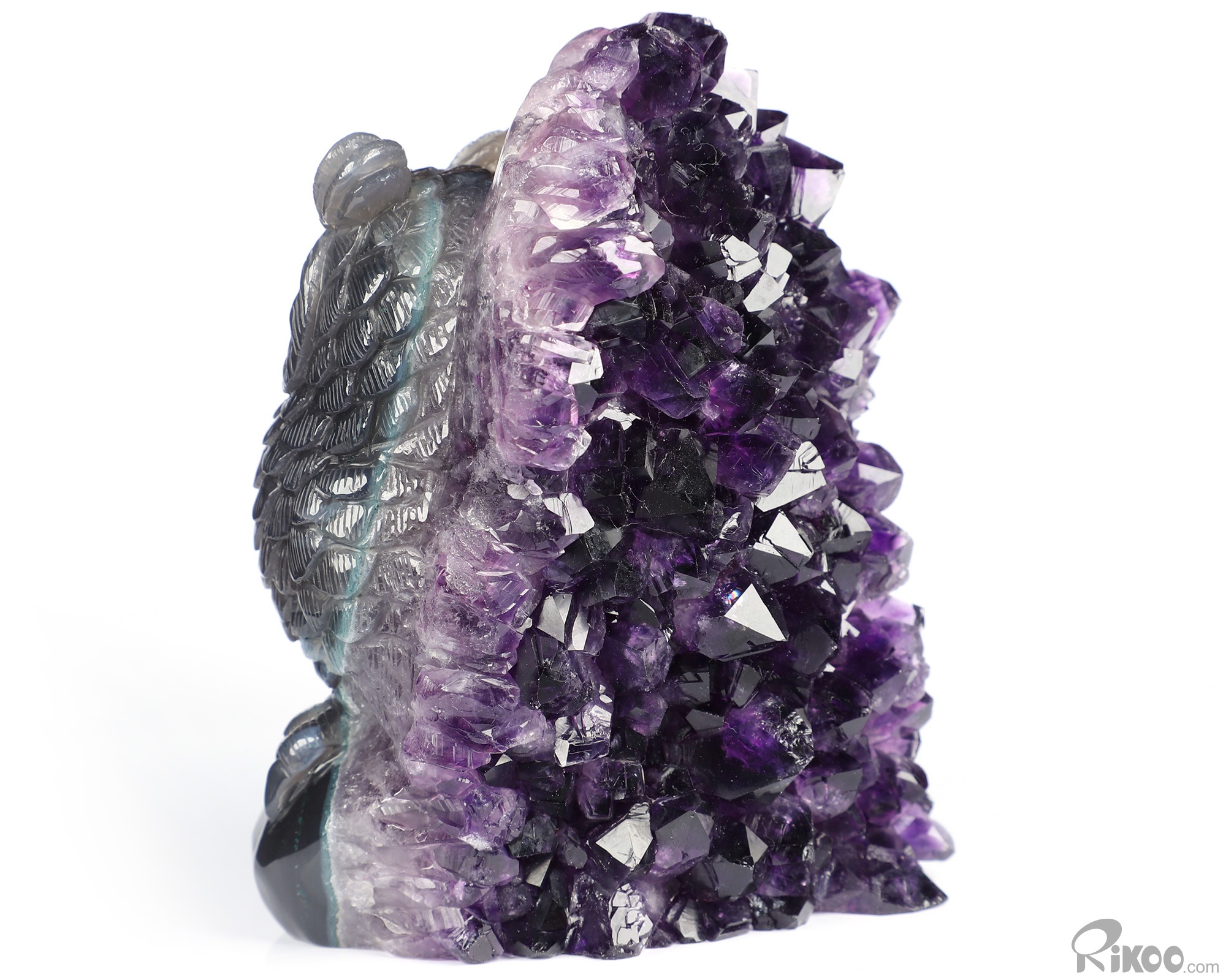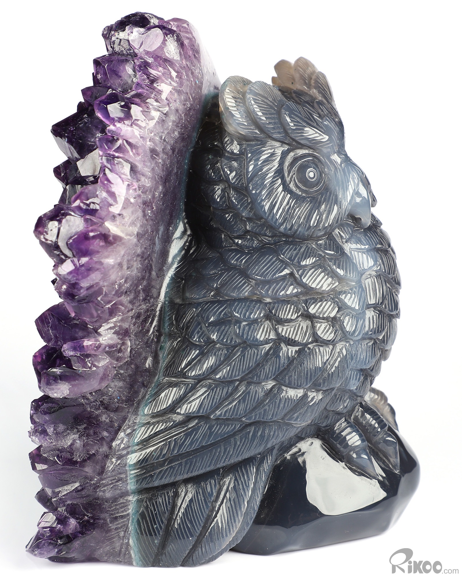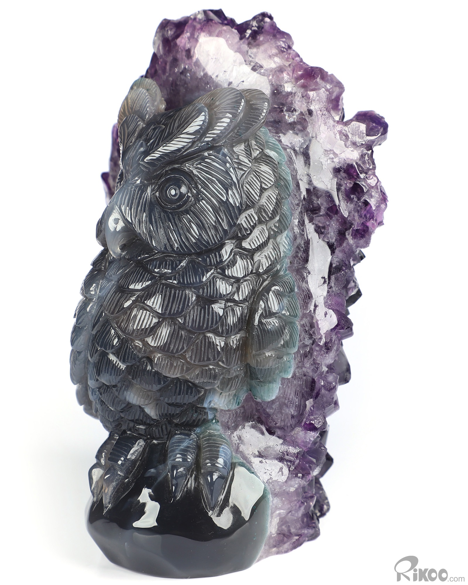 Awesome 4.8" Amethyst & Agate Carved Crystal Owl Sculpture, Realistic, Crystal Healing
