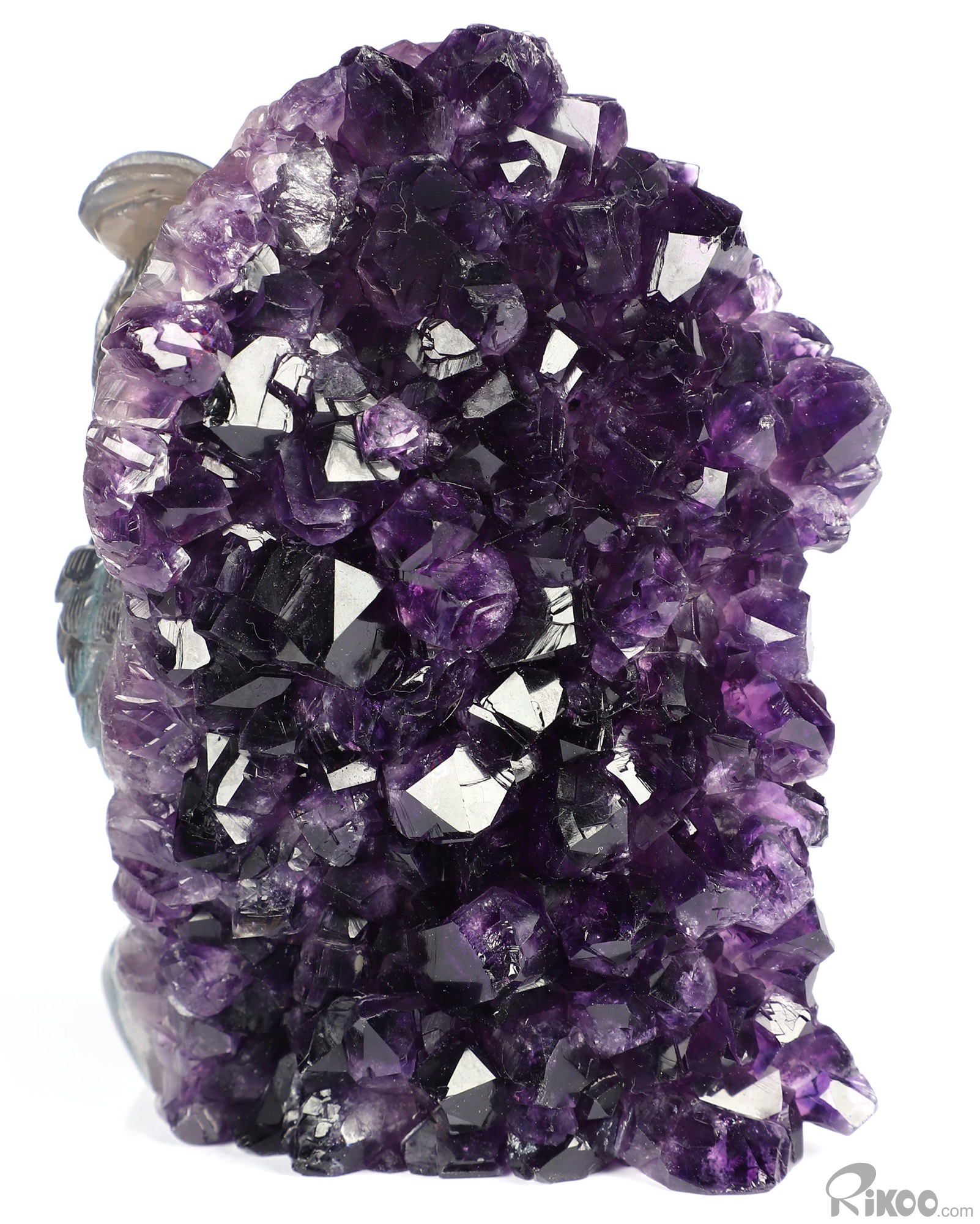 - Amethyst is a purple to pale violet variety of crystalline quartz and is usually transparent or translucent. The colour is due to the iron compounds present. It is also a diachronic, showing a blue or reddish purple tinge when viewed from different angles. It usually has distinctive inclusions which can look like tiger stripes, thumb prints or feathers. Amethyst has a direct link to the mind. It bolsters the production of the hormones, and strengthens the cleansing organs, the circulatory system and blood, the immune system, and body metabolism. It soothes the nervous system and assists in the transmission of neural signals. It helps you feel less scattered and more in control of your faculties. Memory skills and motivation improve. Goals are clearer, more realistic, and easier to achieve.