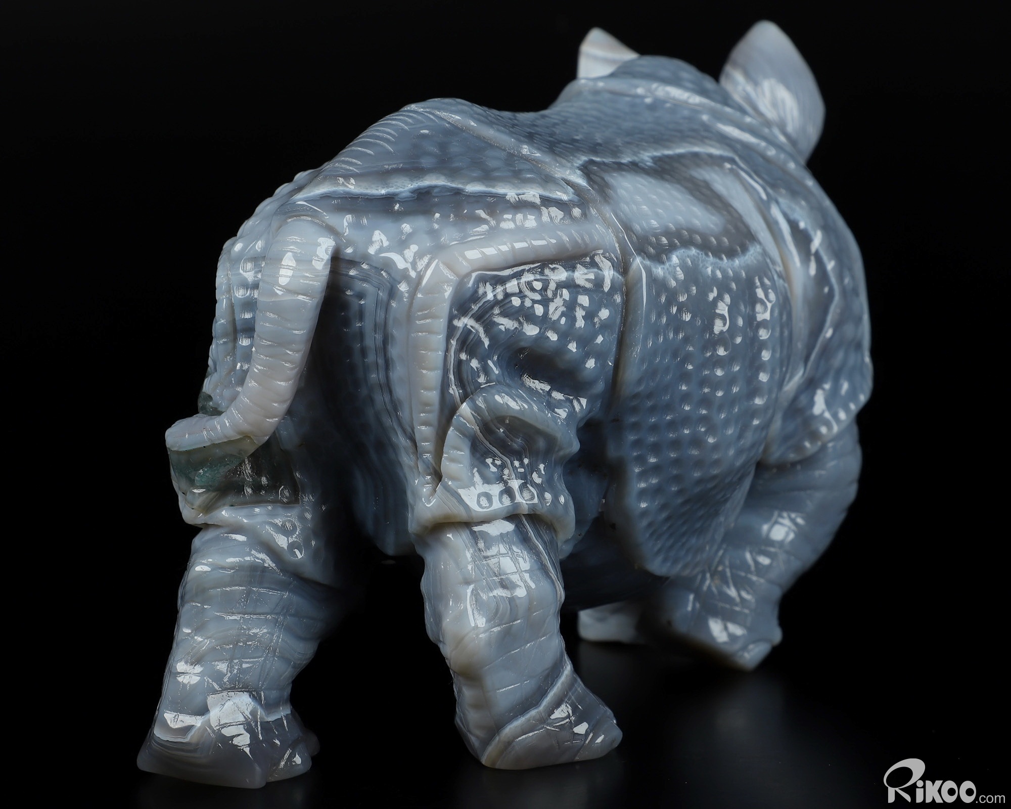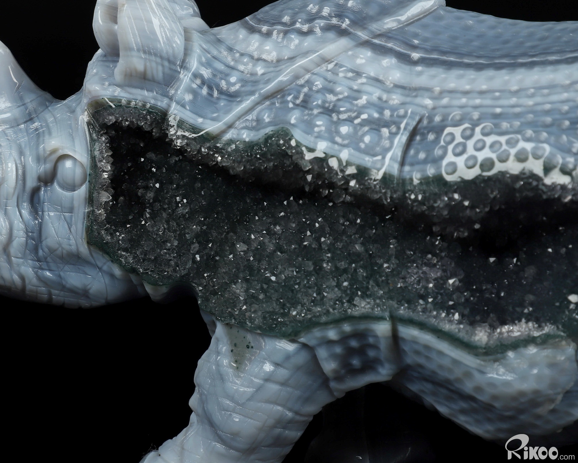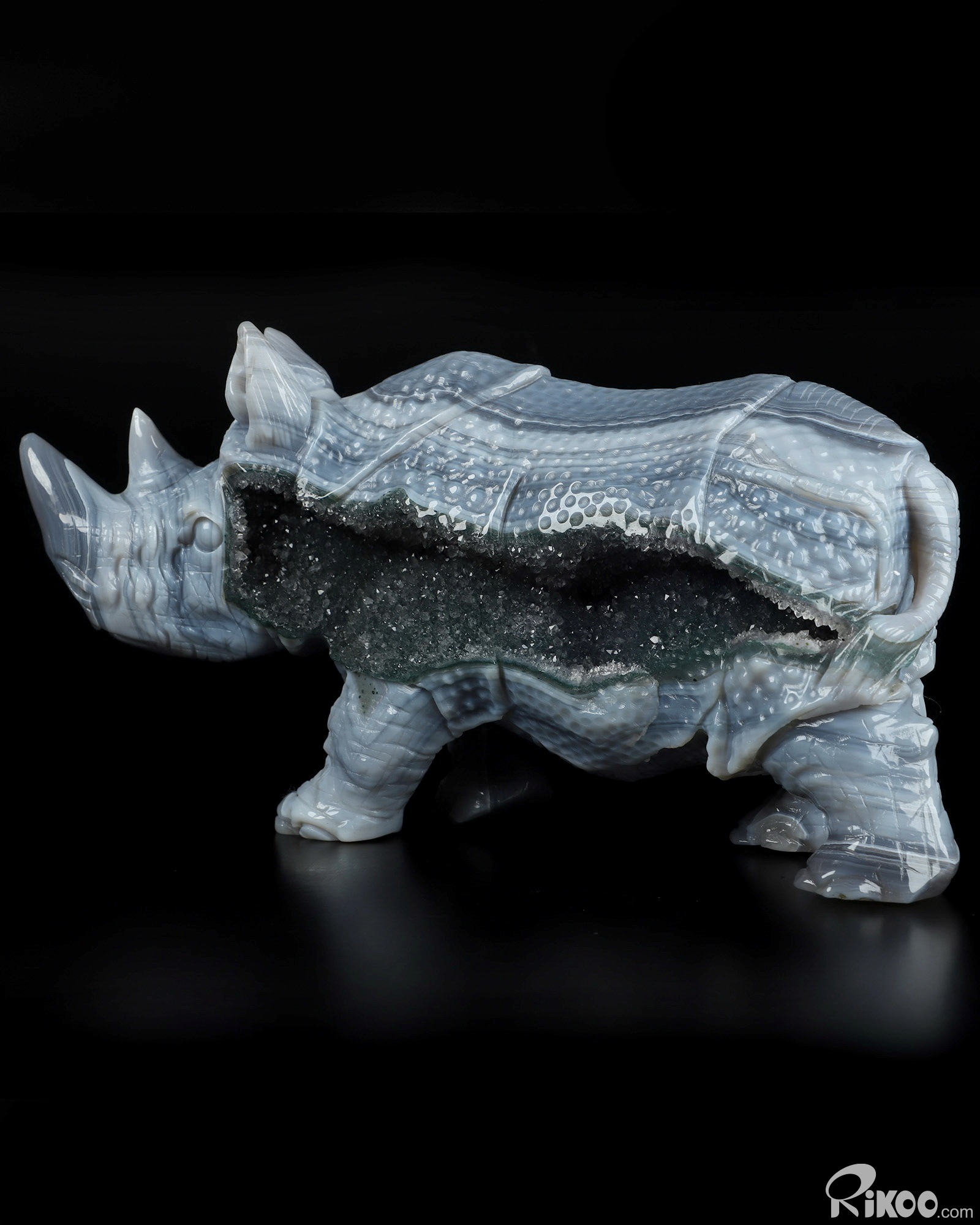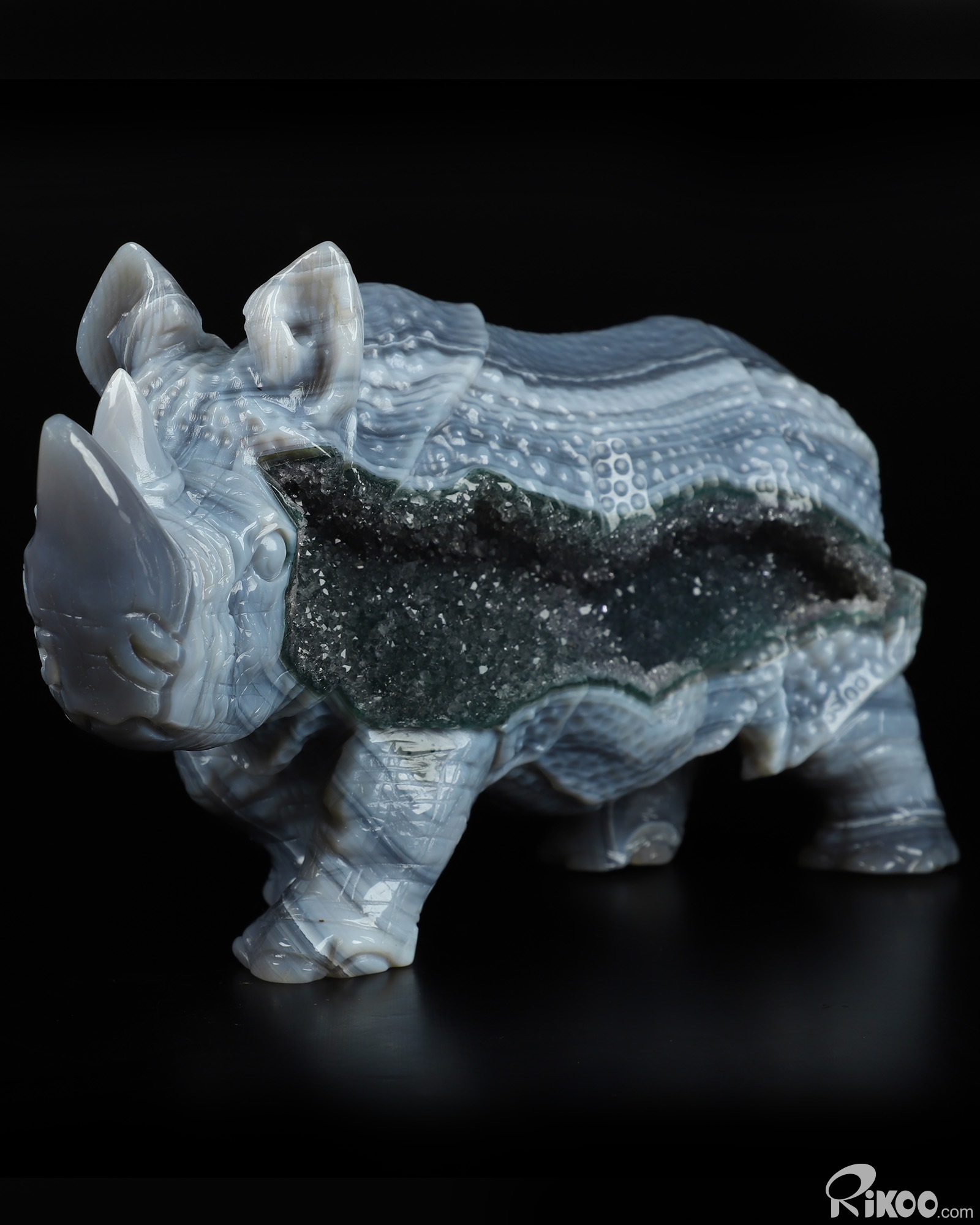 Awesome 5.8" Agate Geode Carved Crystal Rhinoceros, Realistic, Crystal Healing
