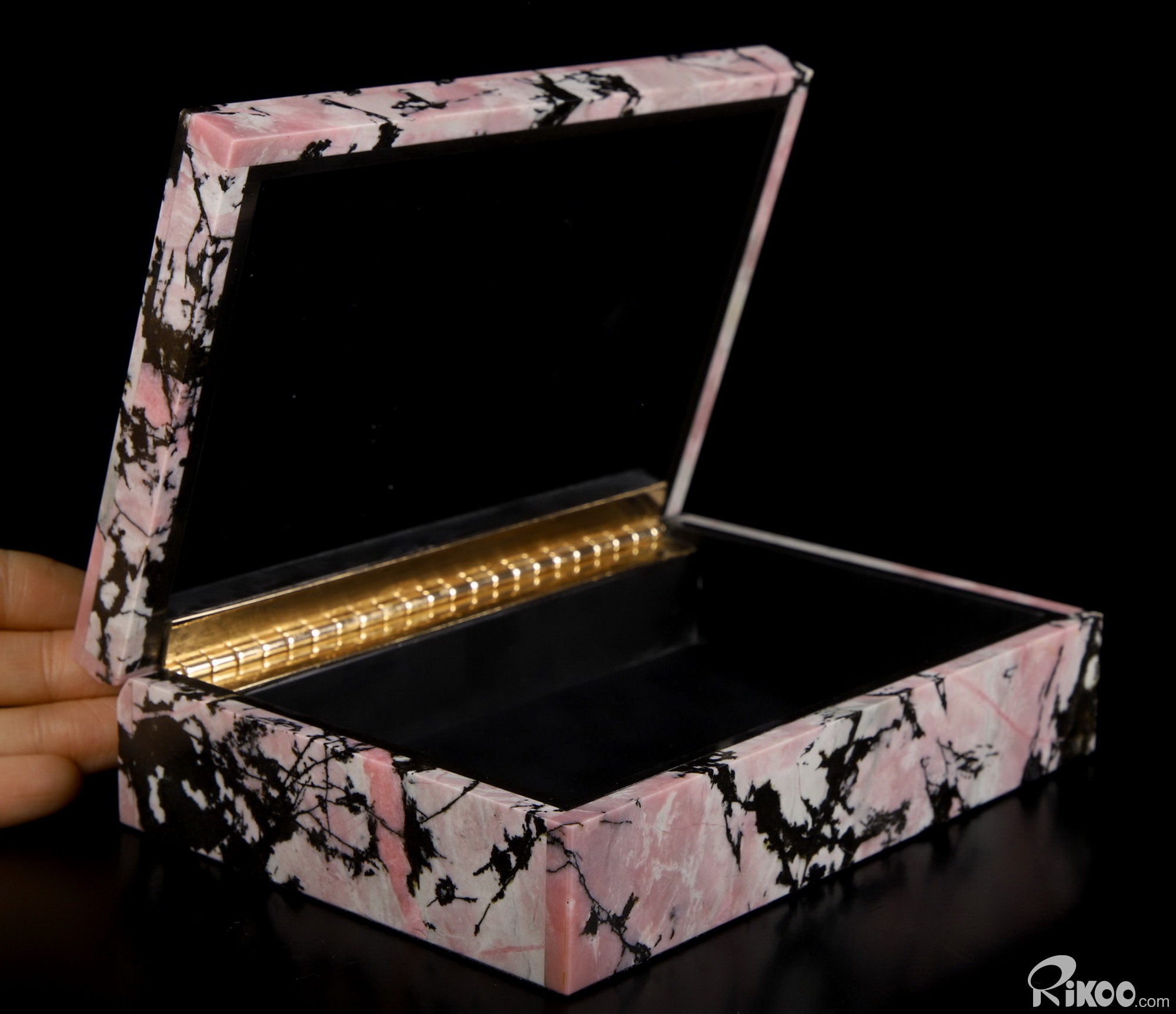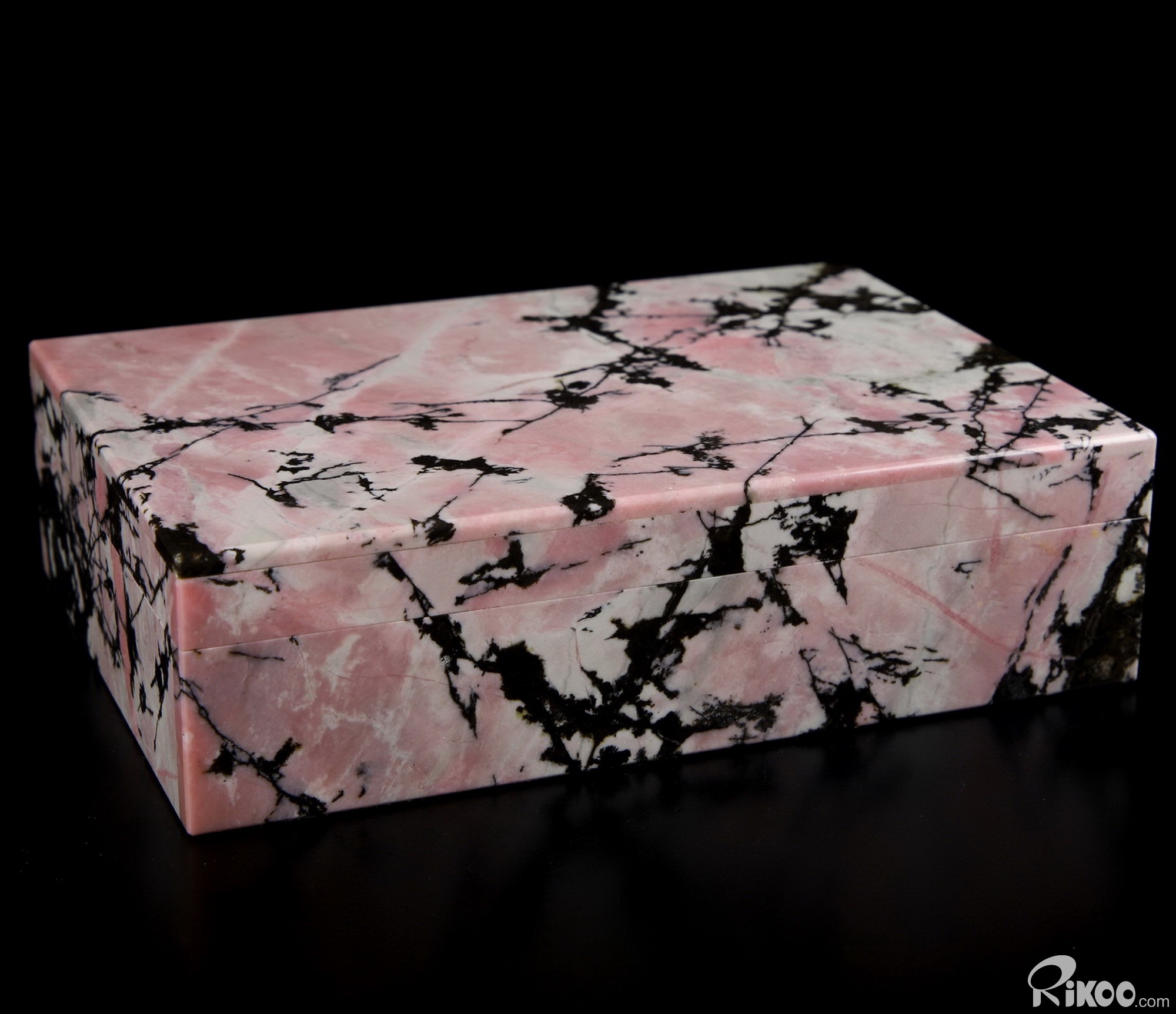 Awesome 6.0" Pink & Black Rhodonite Carved Crystal Jewelry Box, Crystal Healing