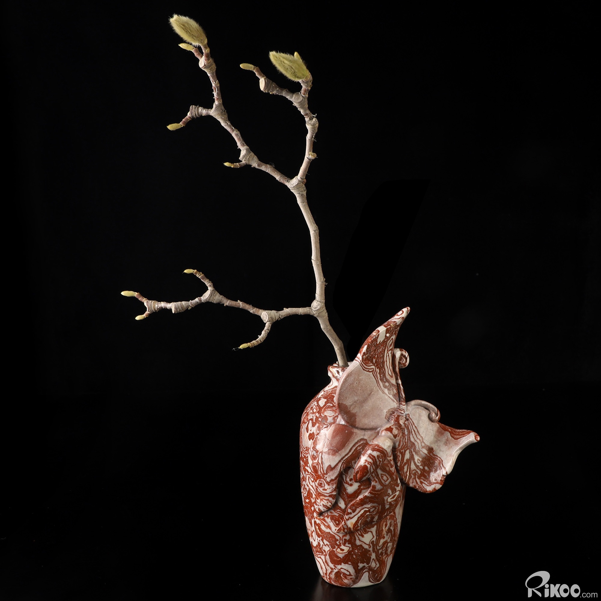 Awesome 6.7" Mexican Banded Jasper Hand Carved Crystal Butterfly Vase Sculpture, Crystal Healing
