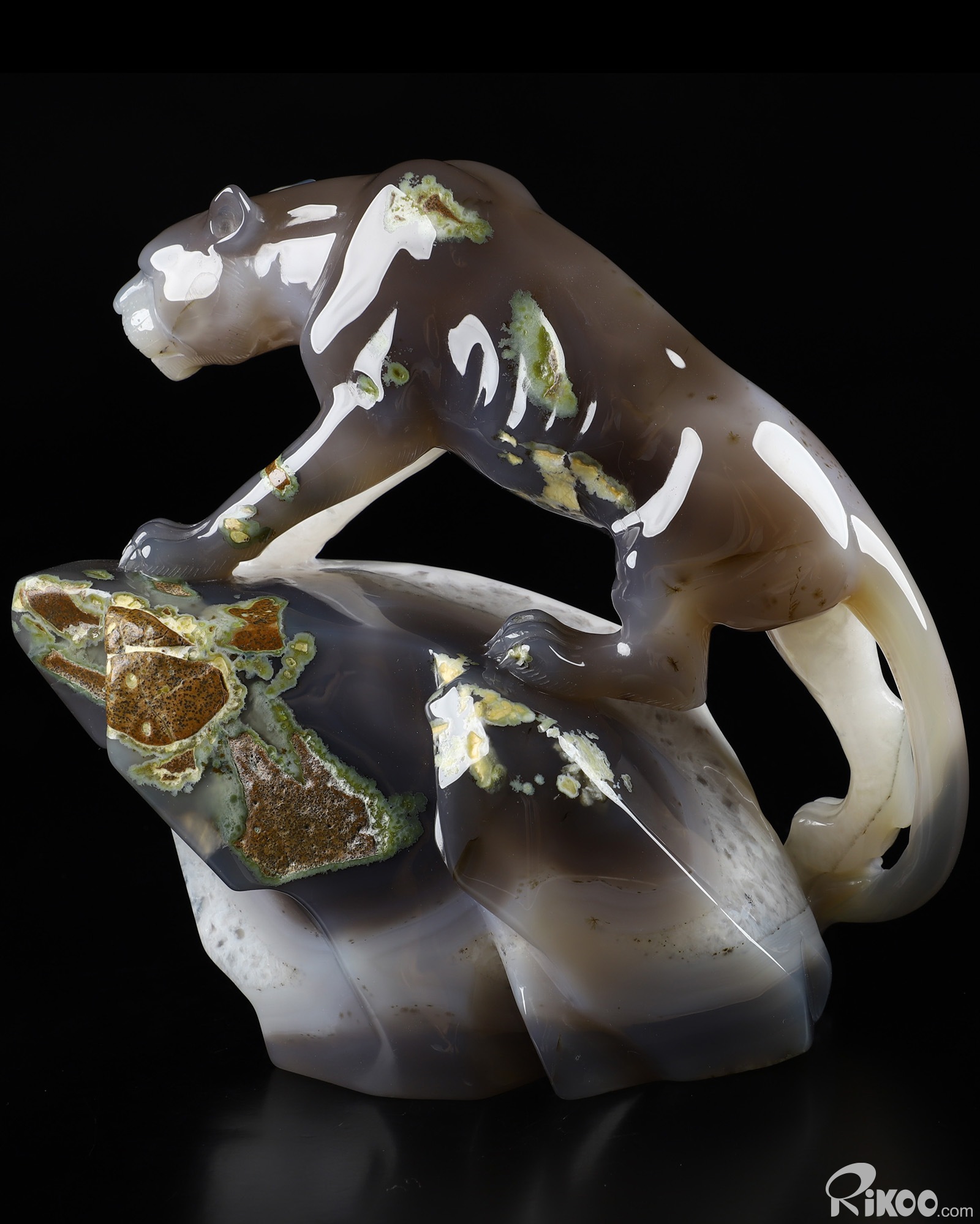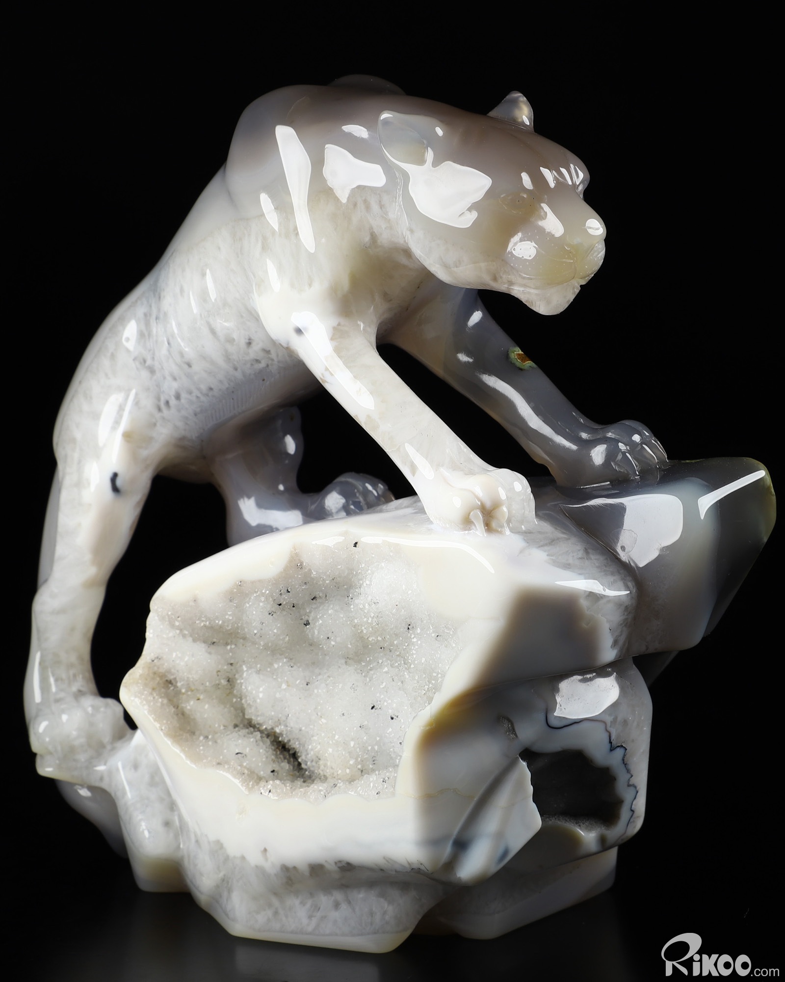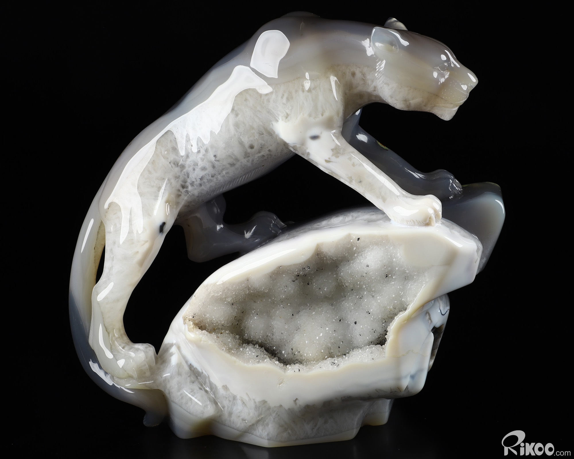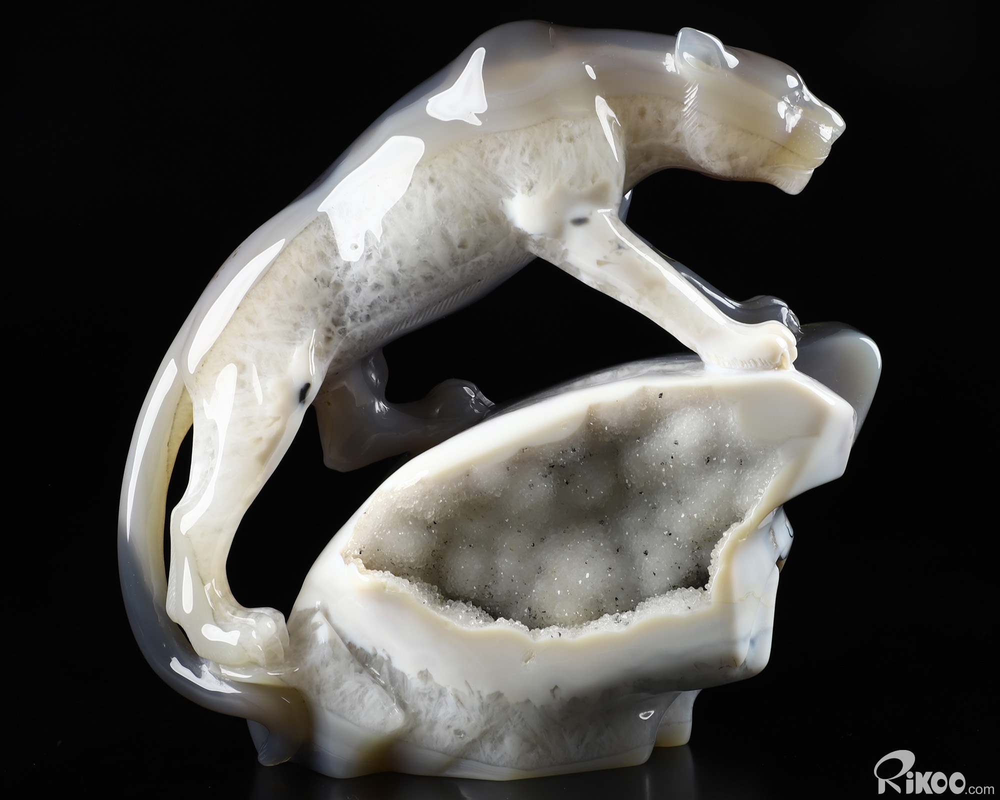 Awesome 6.9" Agate Geode Carved Crystal Leopard Sculpture, Realistic, Crystal Healing