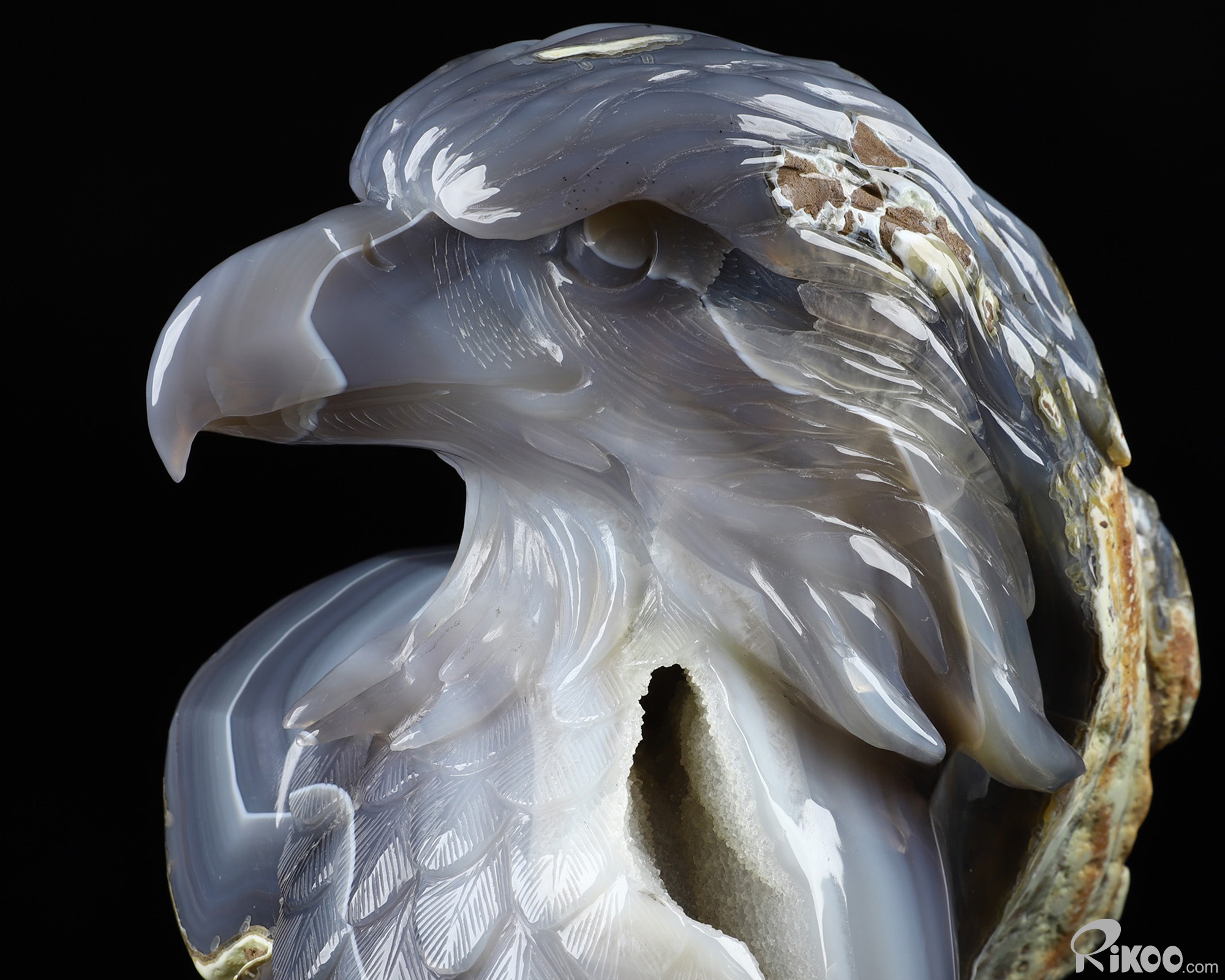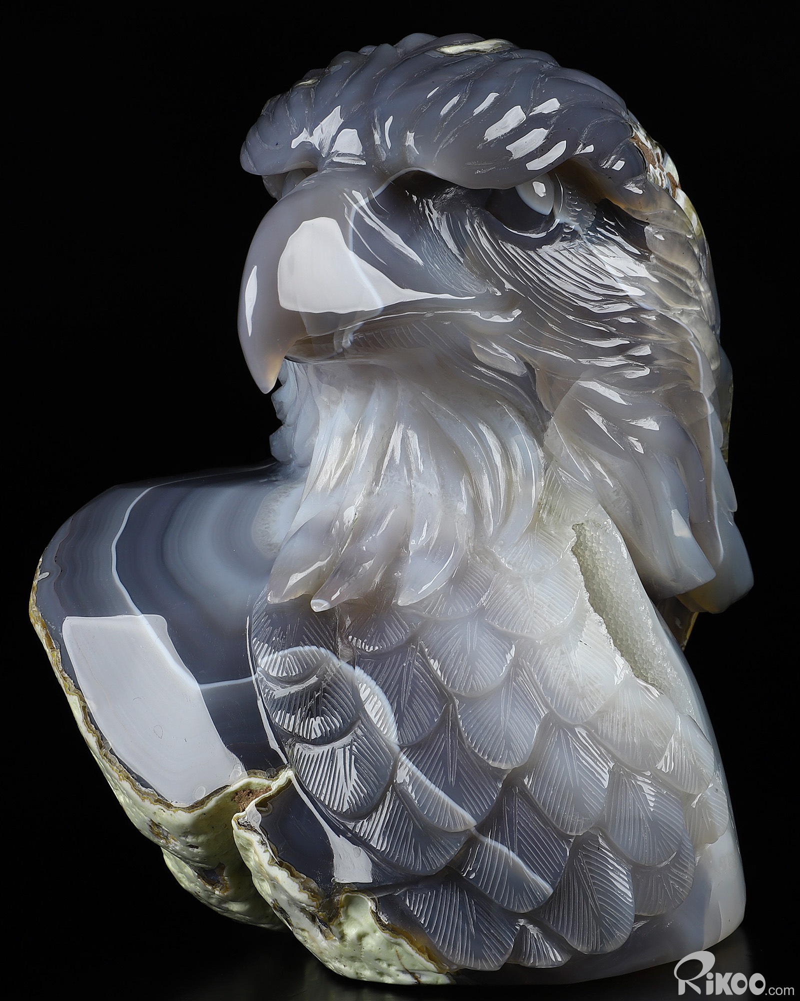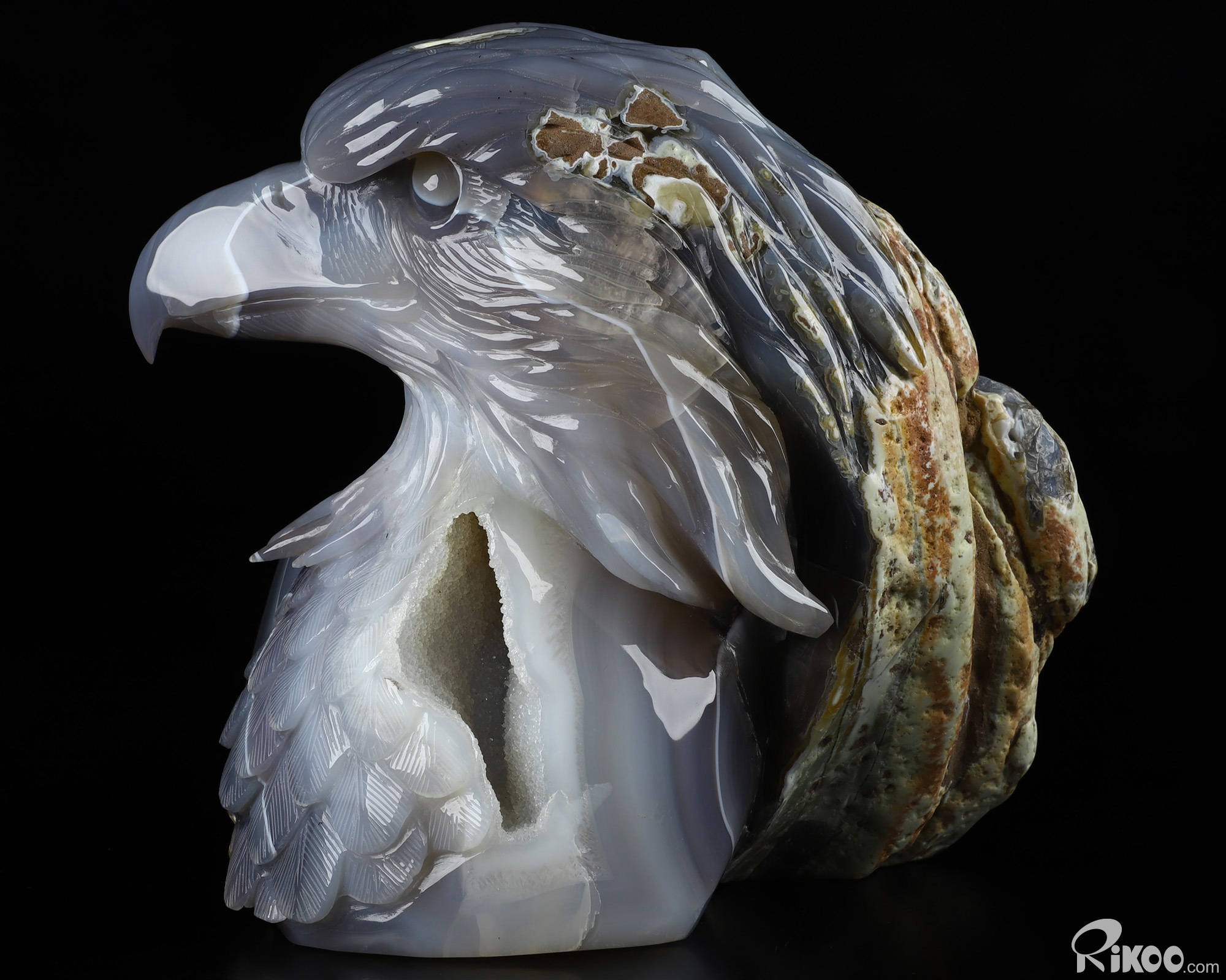 Awesome 7.6" Agate Geode Carved Crystal Eagle Sculpture, Realistic, Crystal Healing