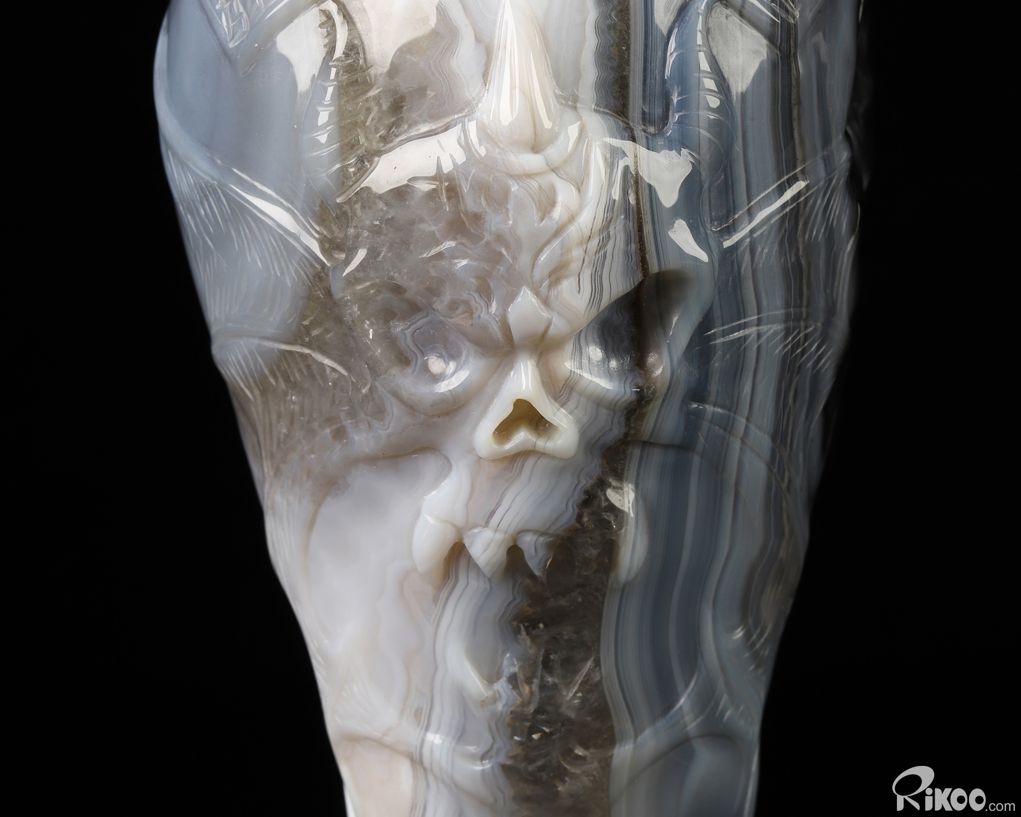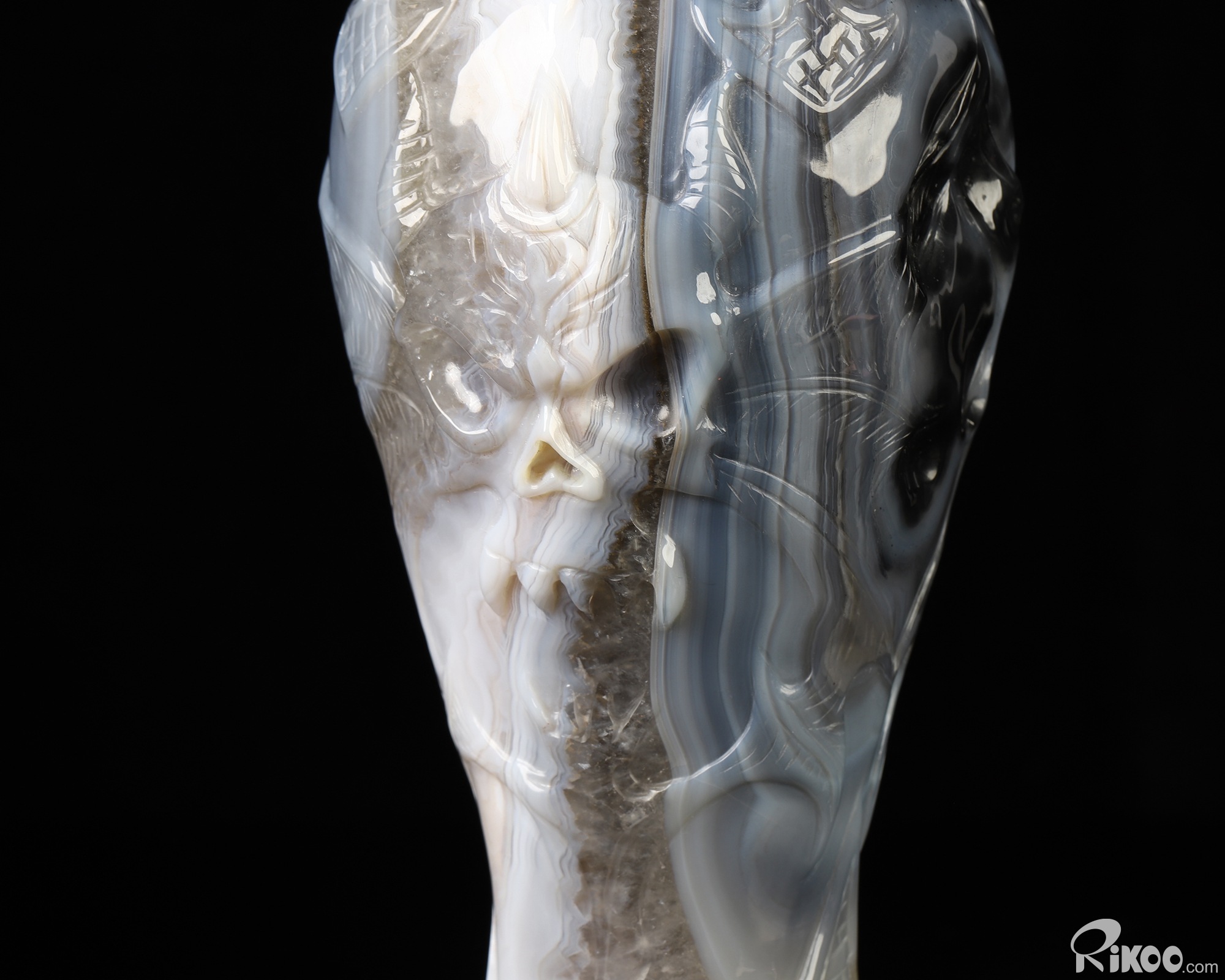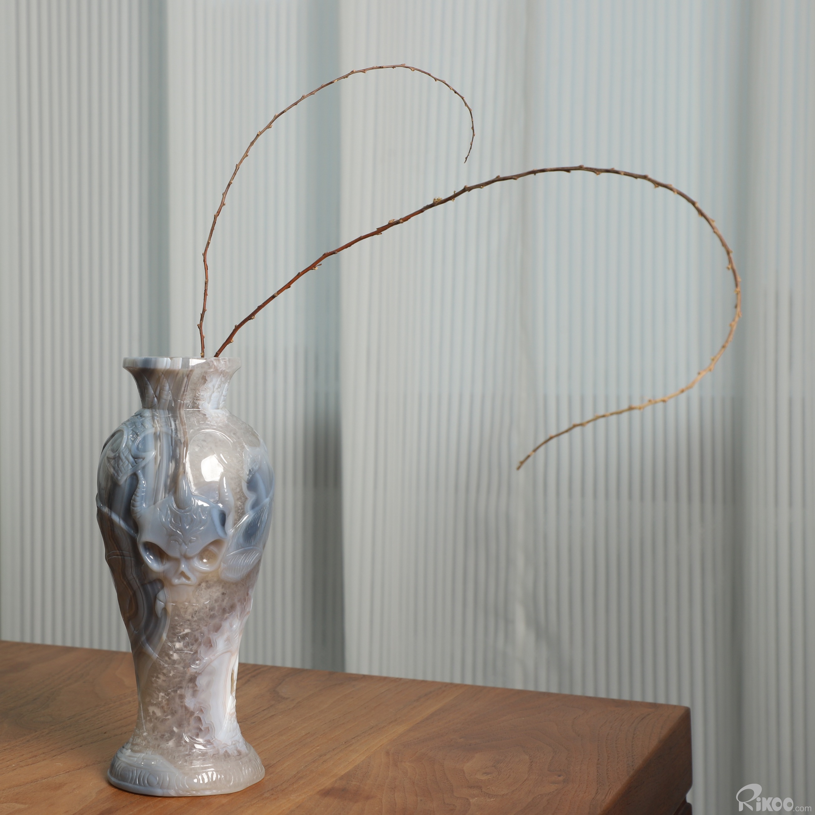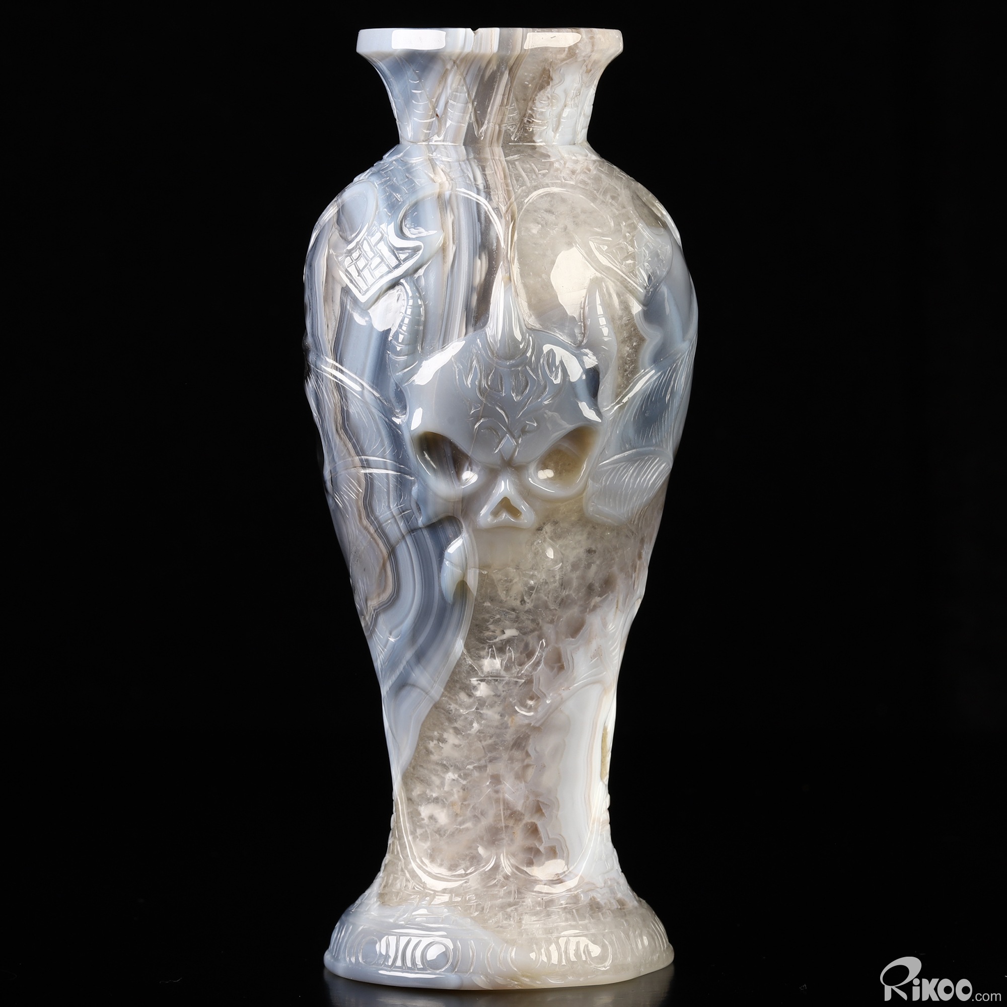 Awesome 7.6" Gray & White Agate Hand Carved Crystal Skull Vase Sculpture, Crystal Healing