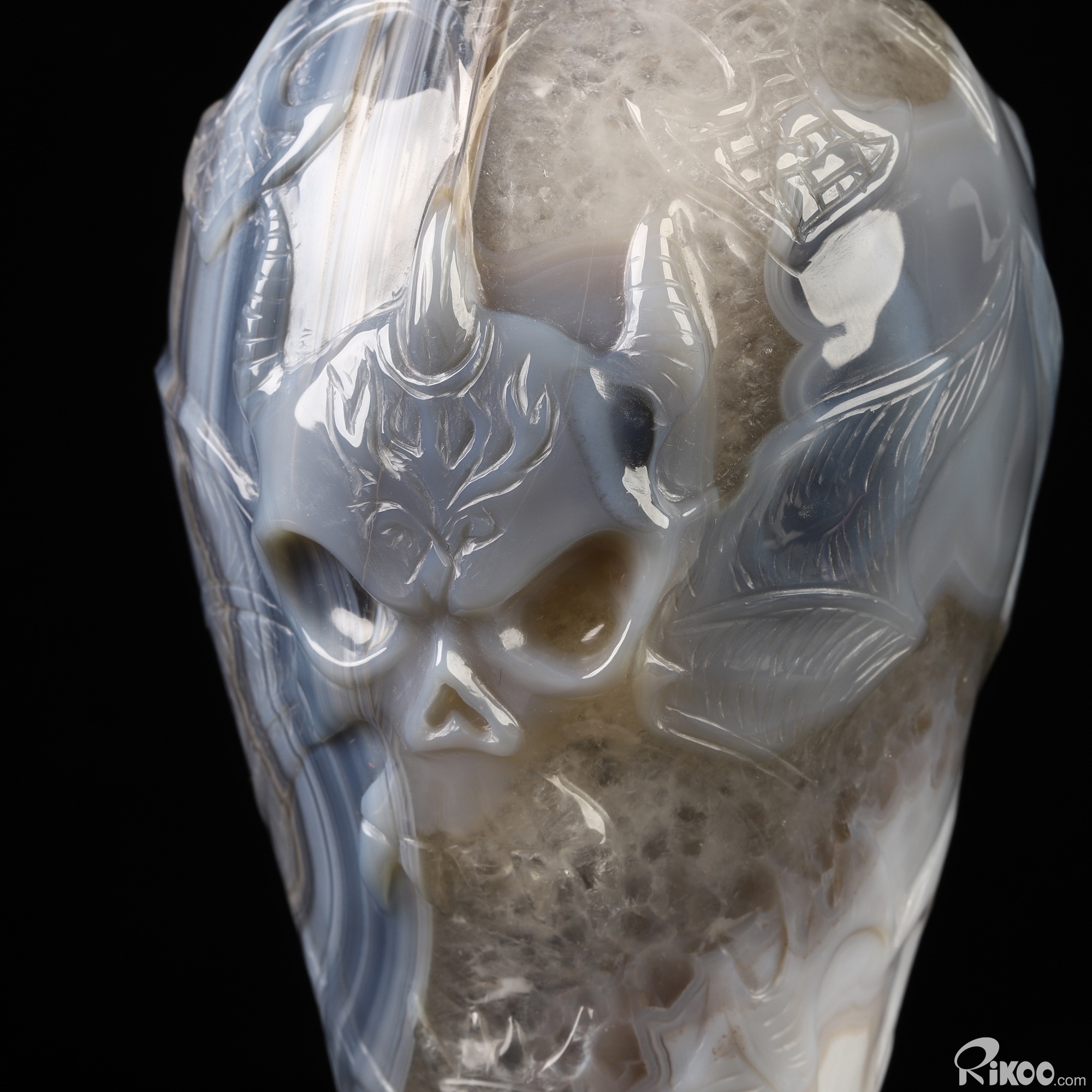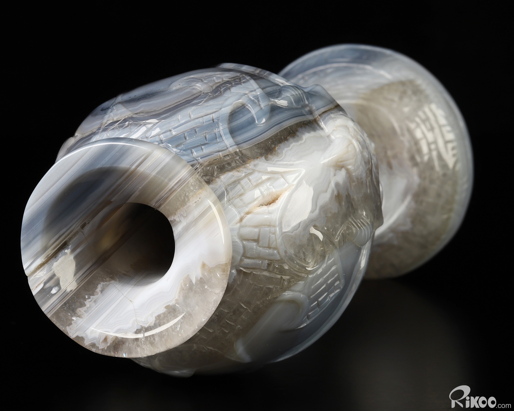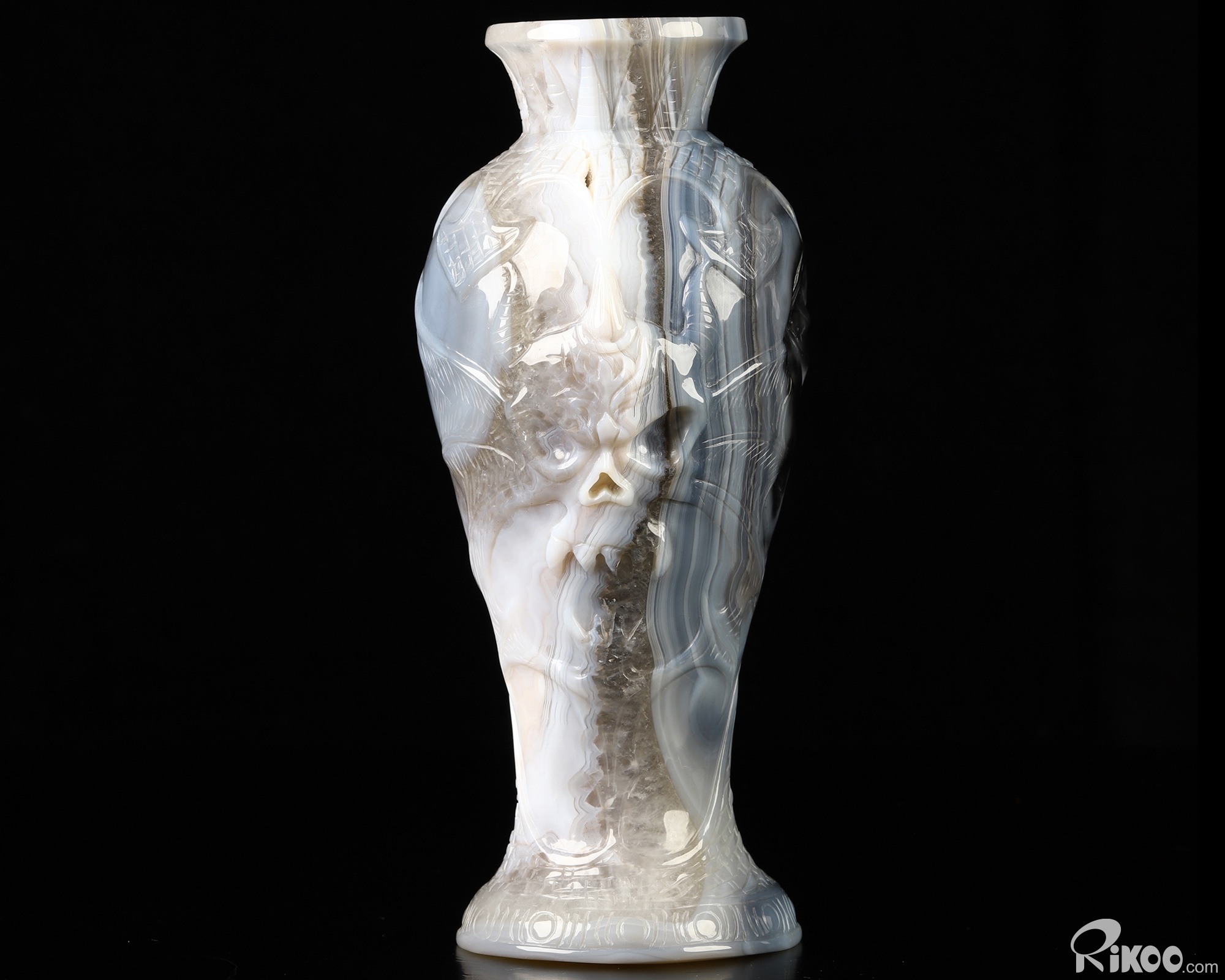 Awesome 7.6" Gray & White Agate Hand Carved Crystal Skull Vase Sculpture, Crystal Healing