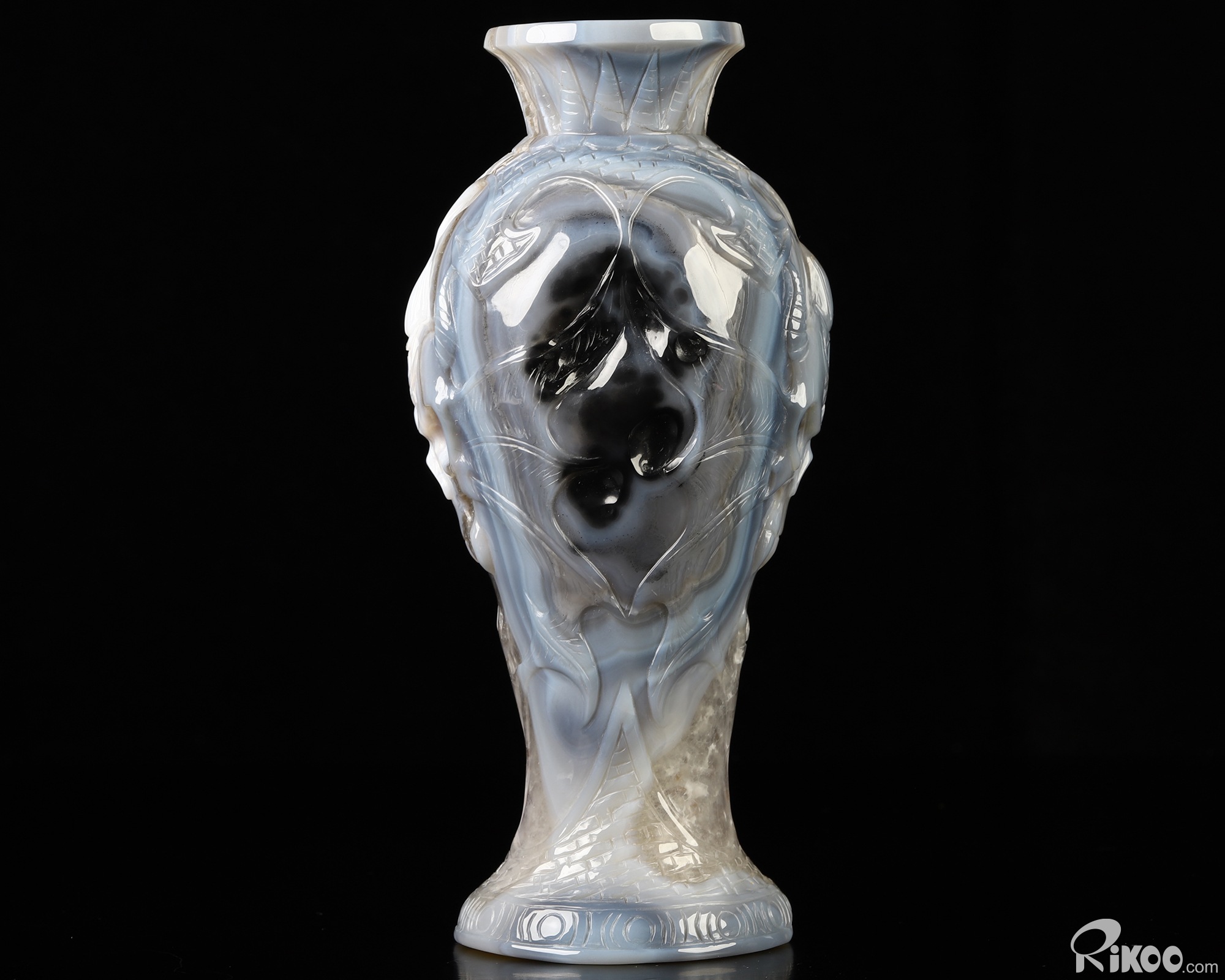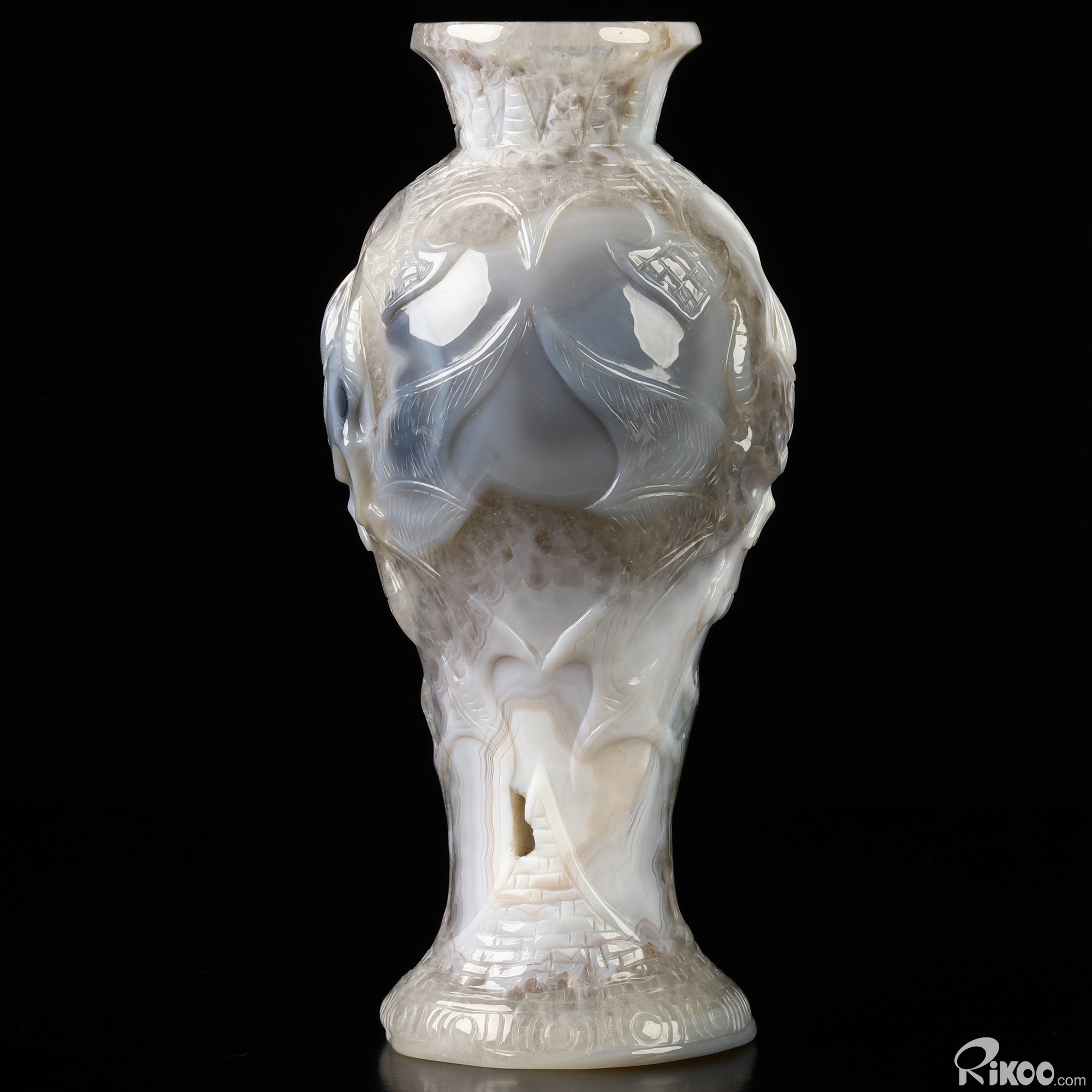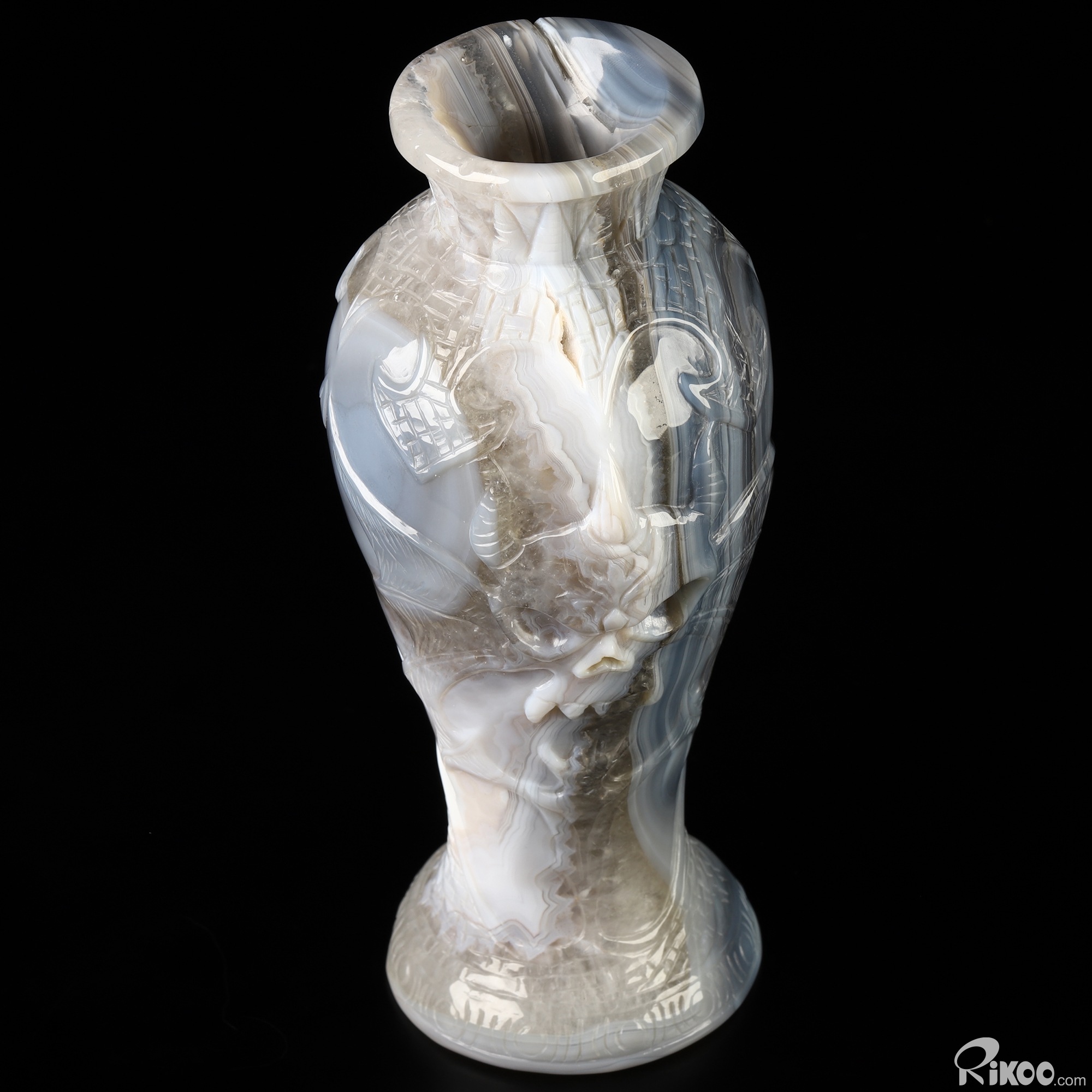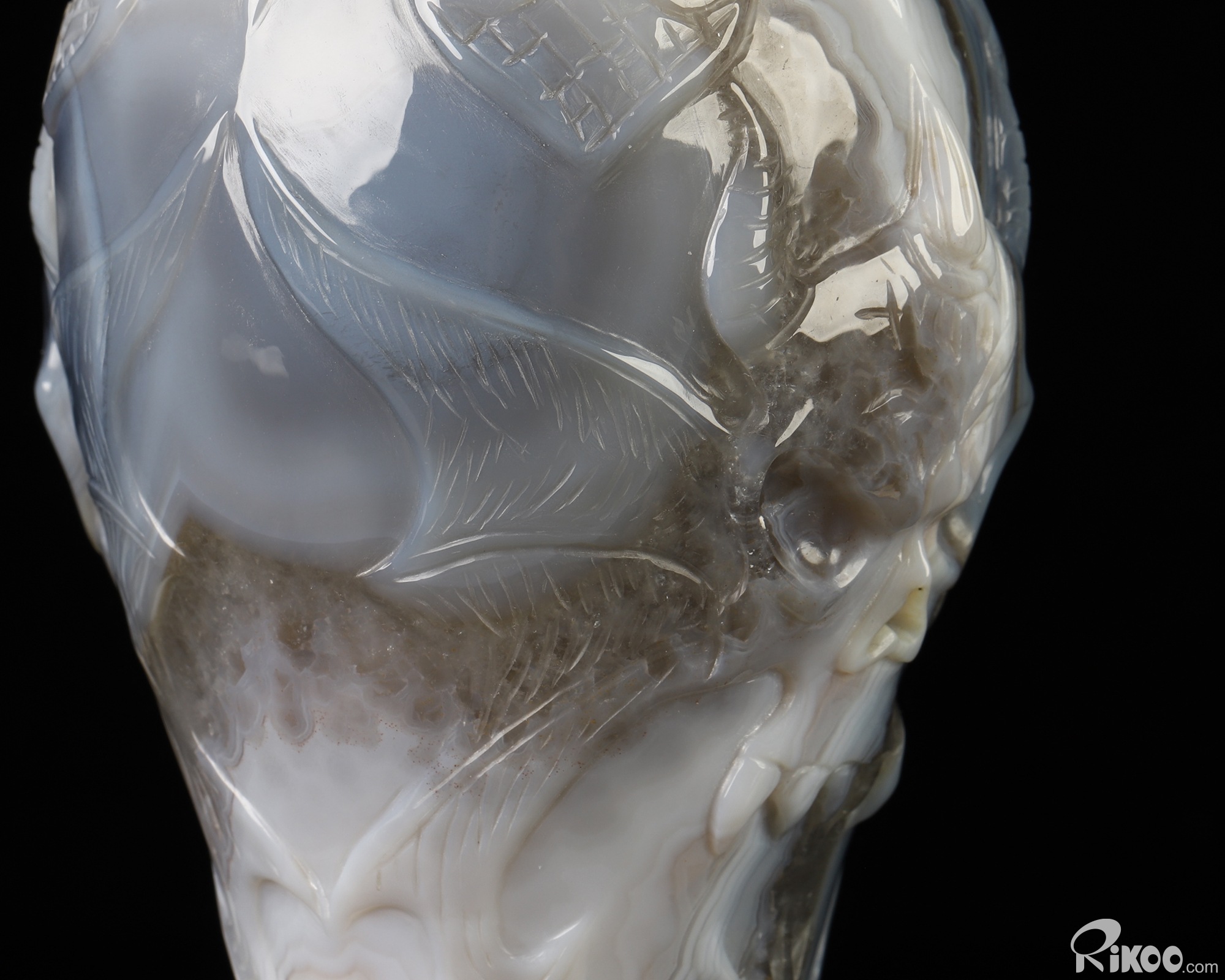 Awesome 7.6" Gray & White Agate Hand Carved Crystal Skull Vase Sculpture, Crystal Healing