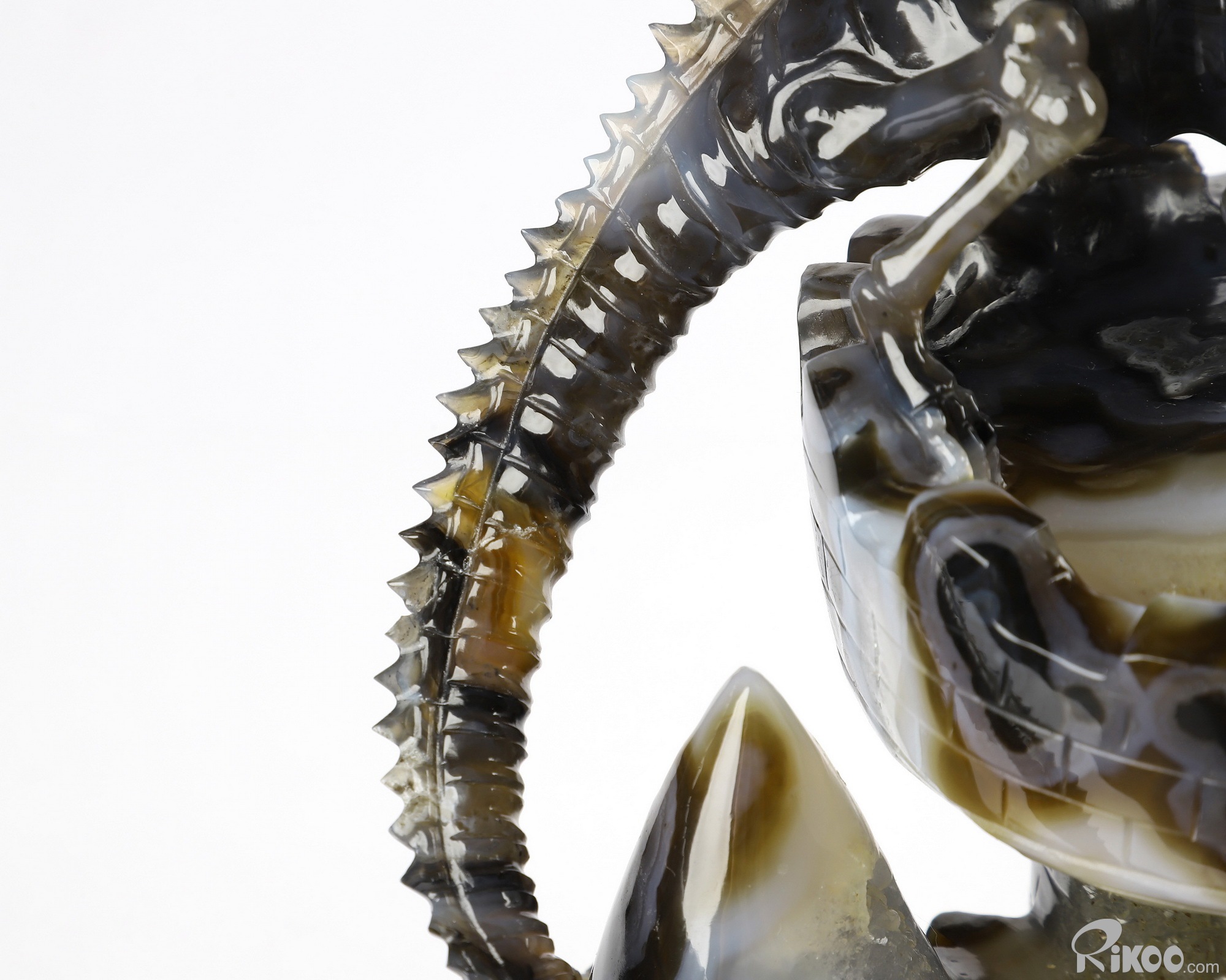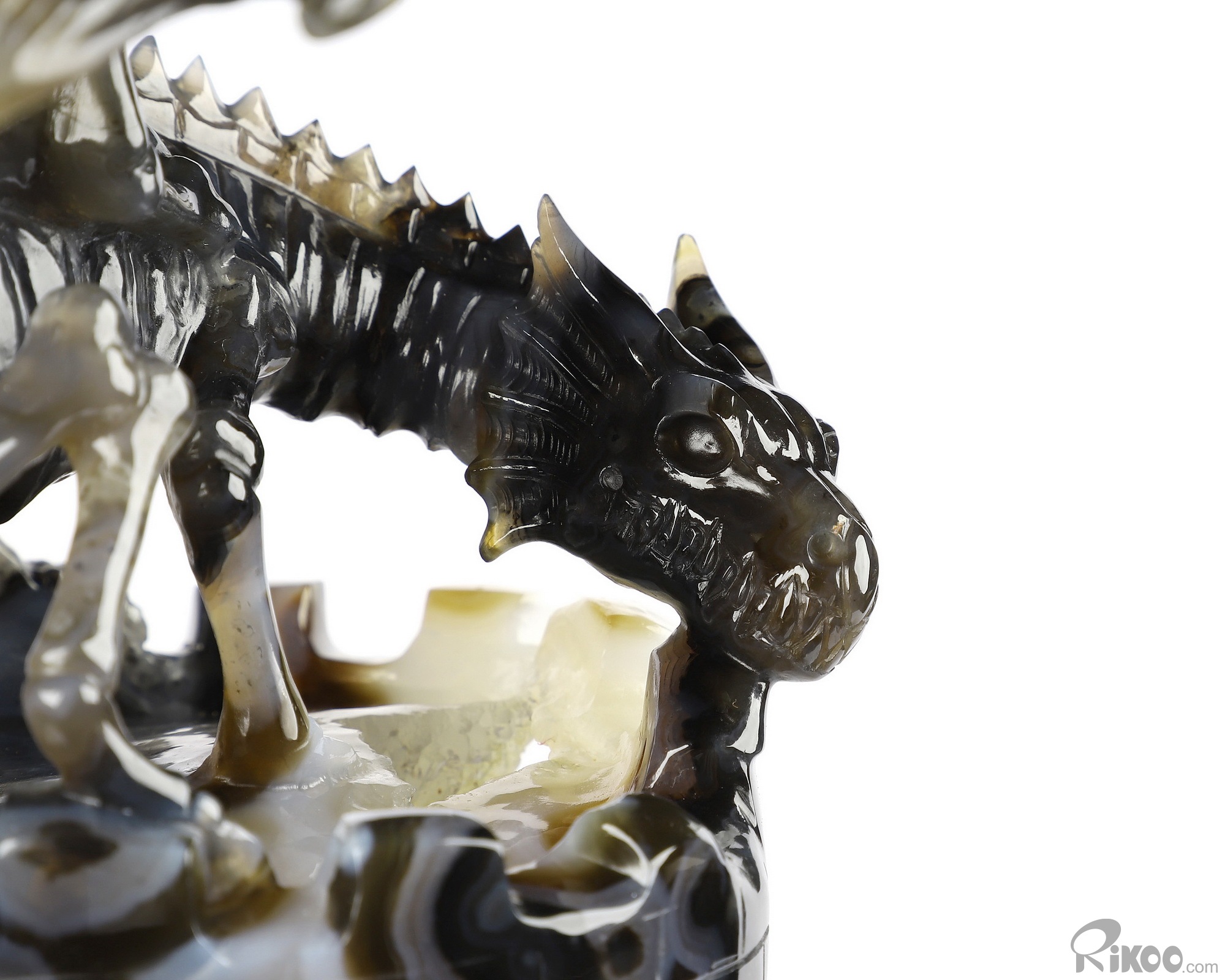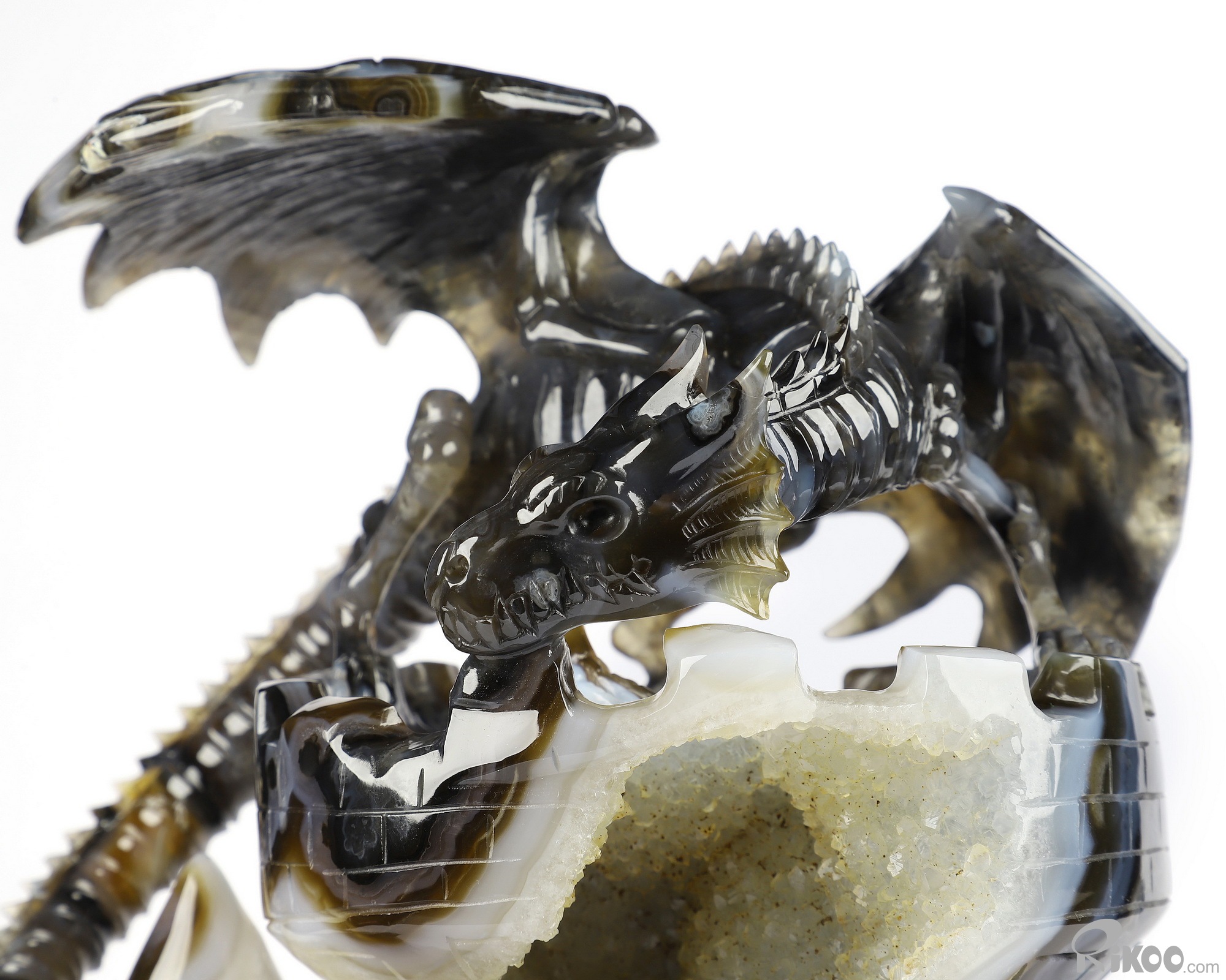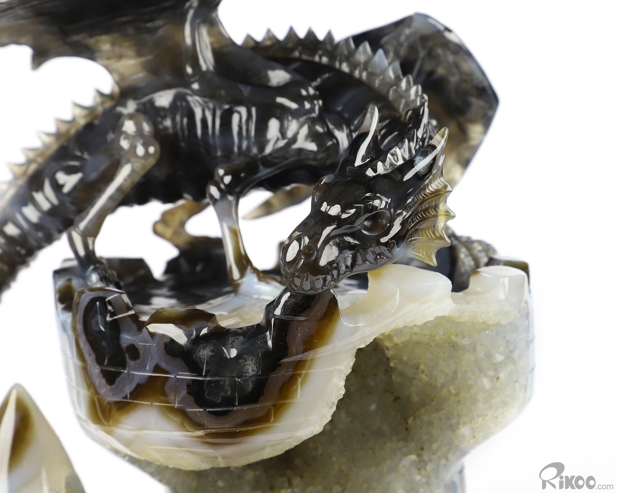 Awesome 7.7" Agate Geode Carved Crystal Western Dragon & Castle Sculpture, Realistic, Crystal Healing