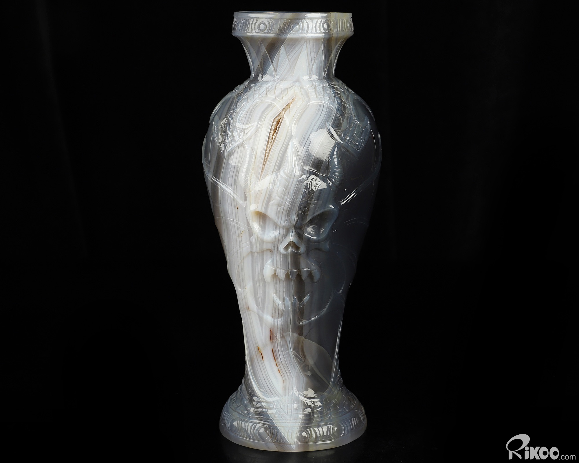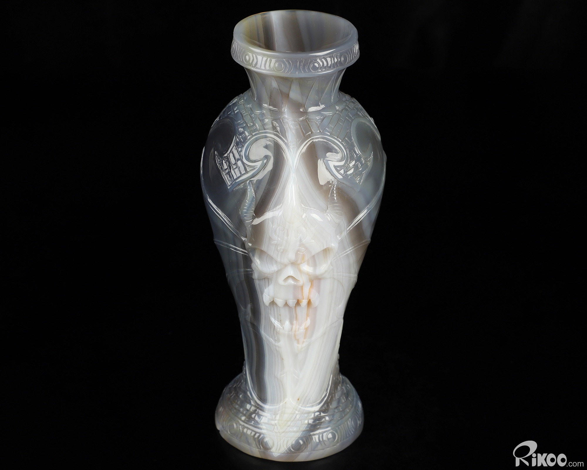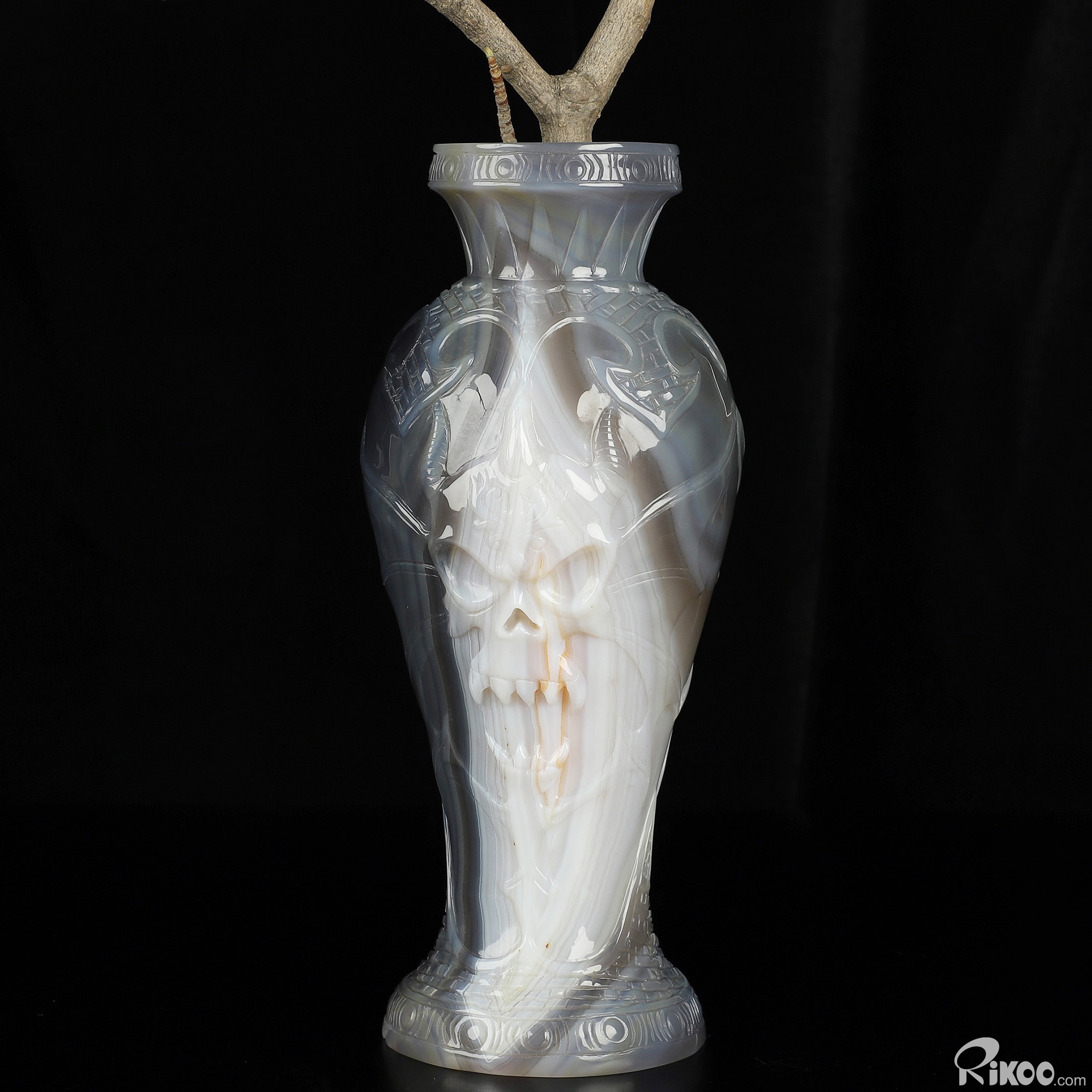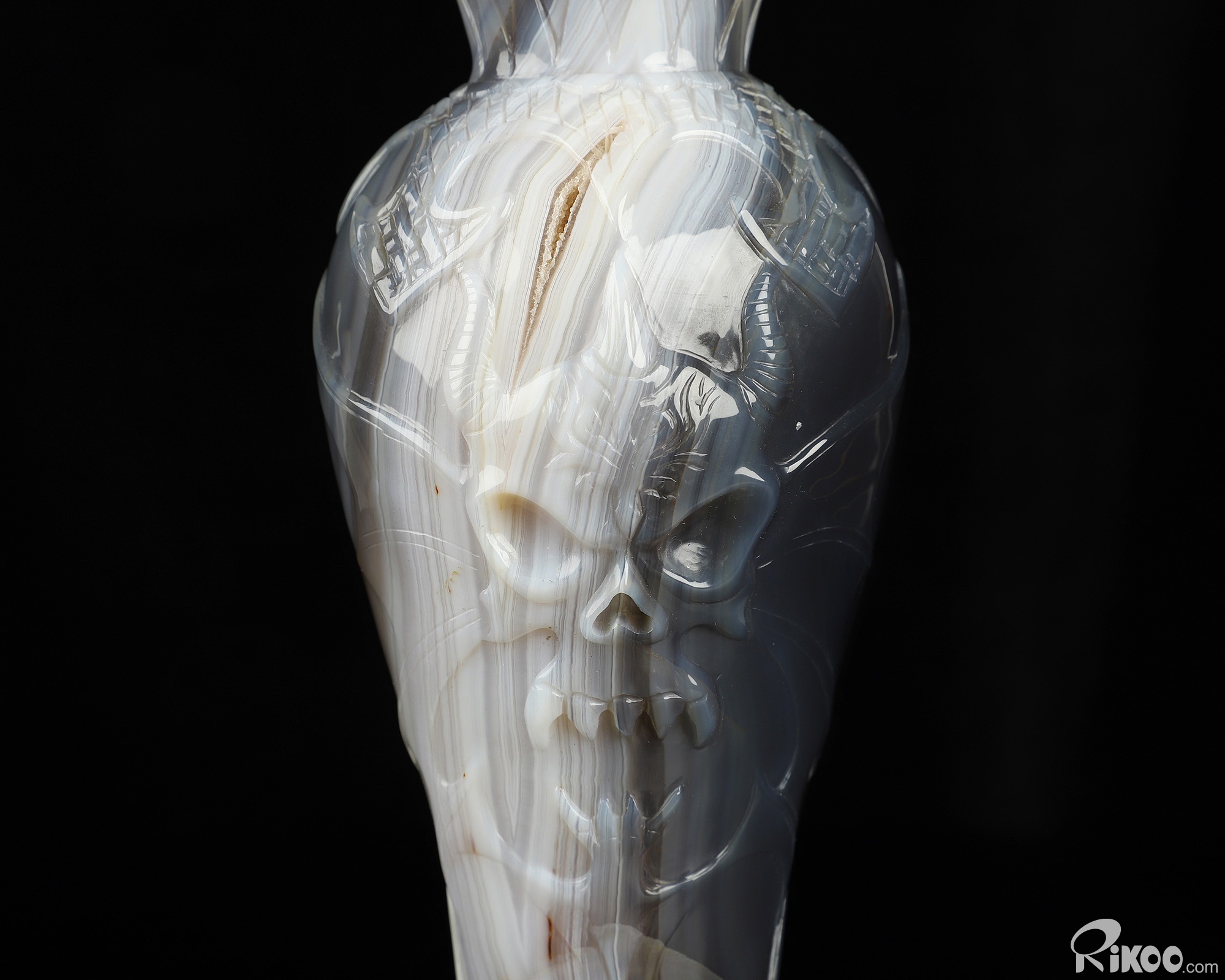 Awesome 7.7" Gray & White Agate Hand Carved Crystal Skull Vase Sculpture, Crystal Healing