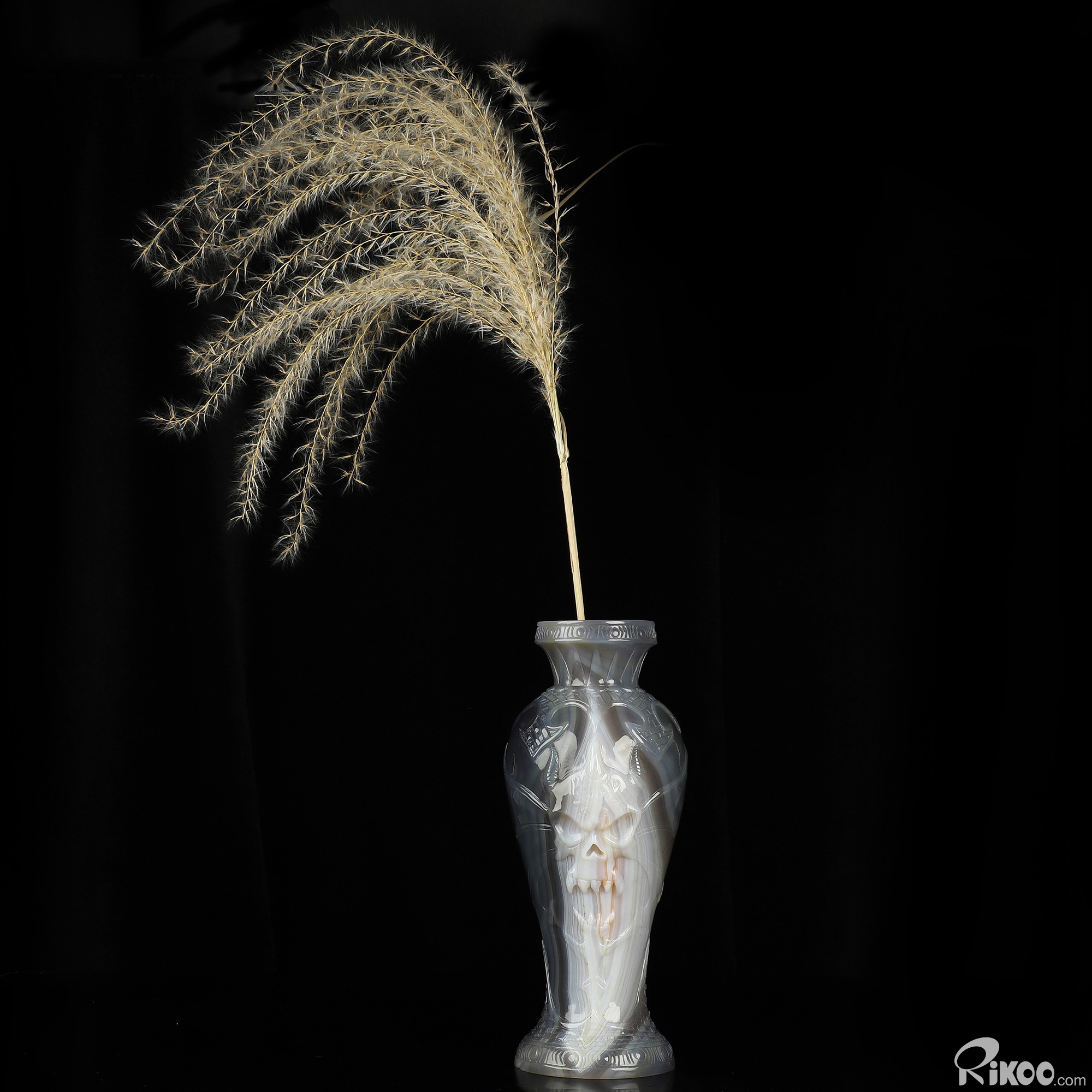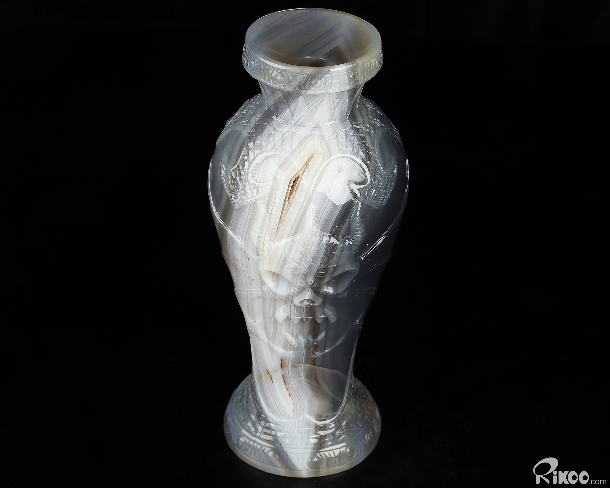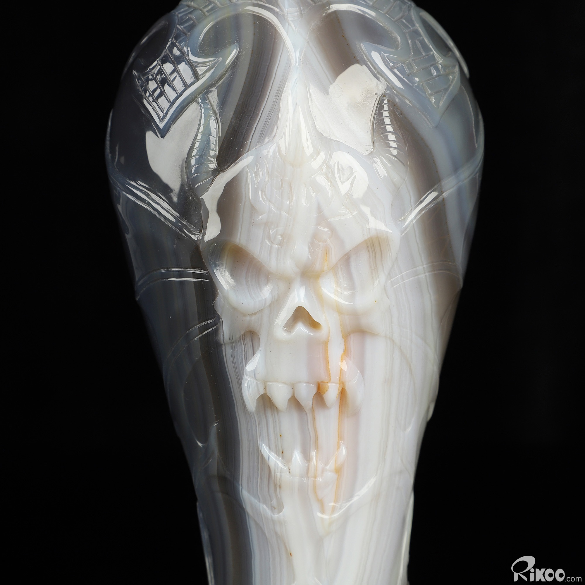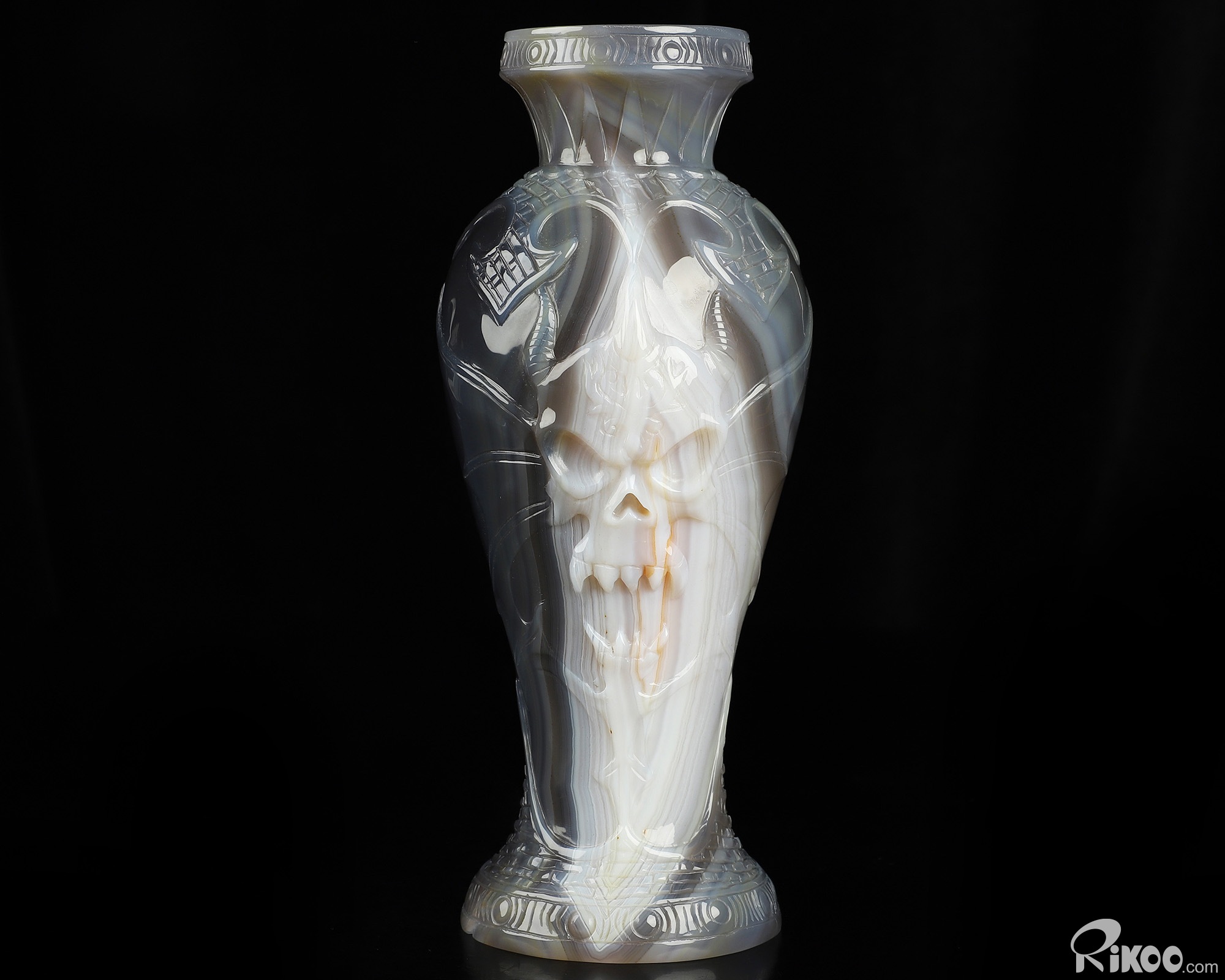 Awesome 7.7" Gray & White Agate Hand Carved Crystal Skull Vase Sculpture, Crystal Healing