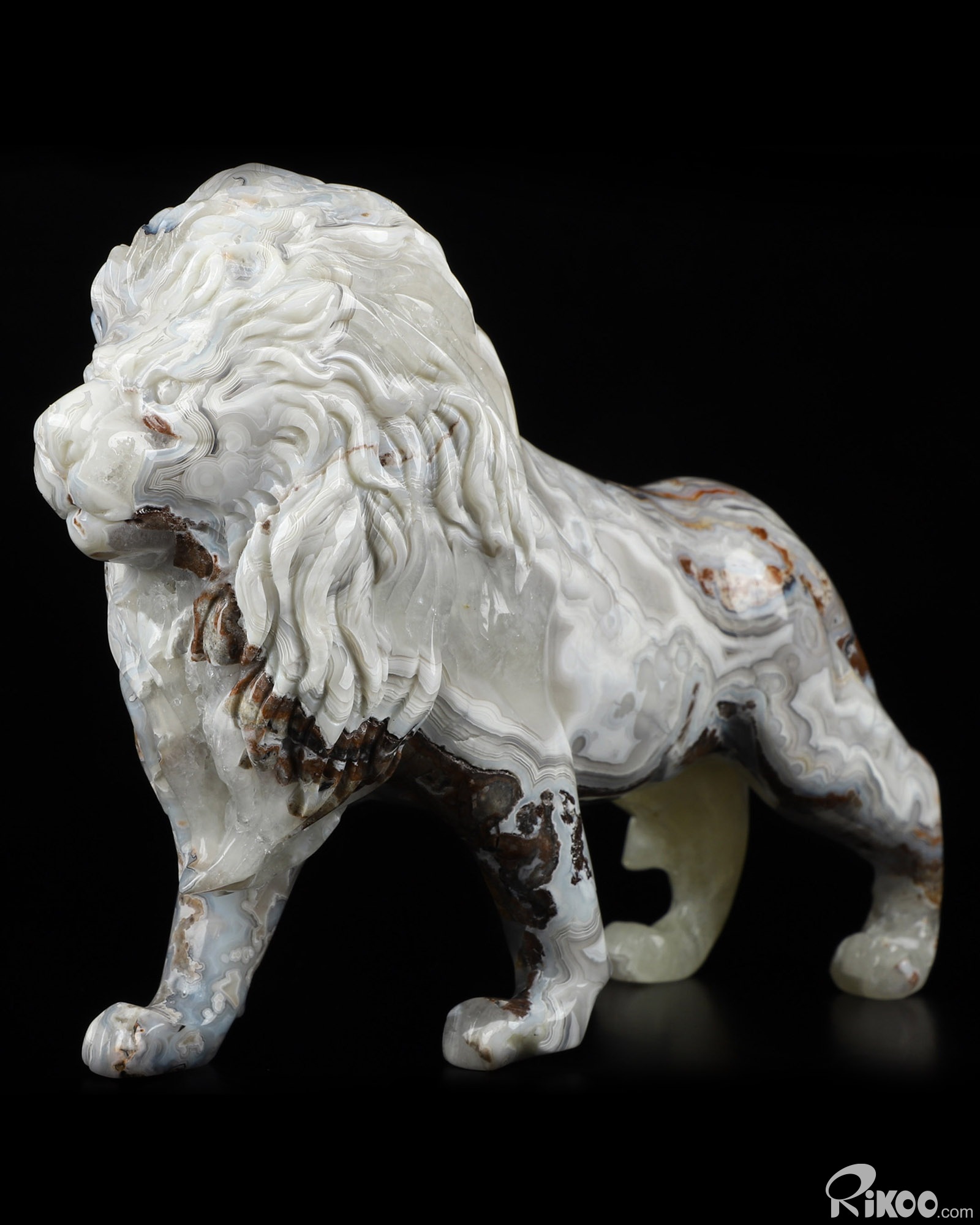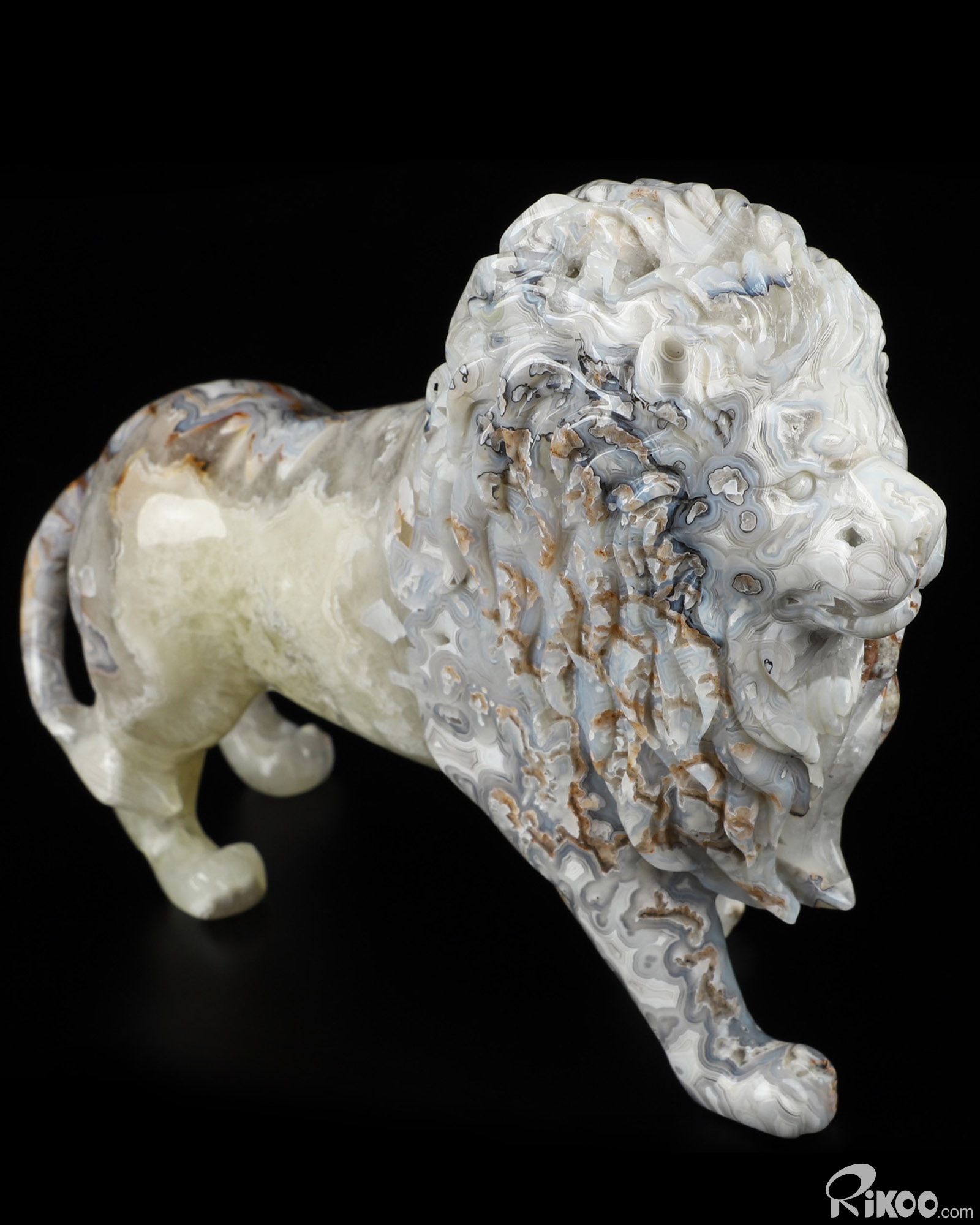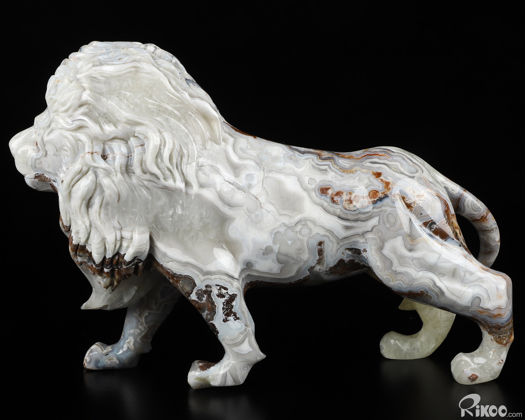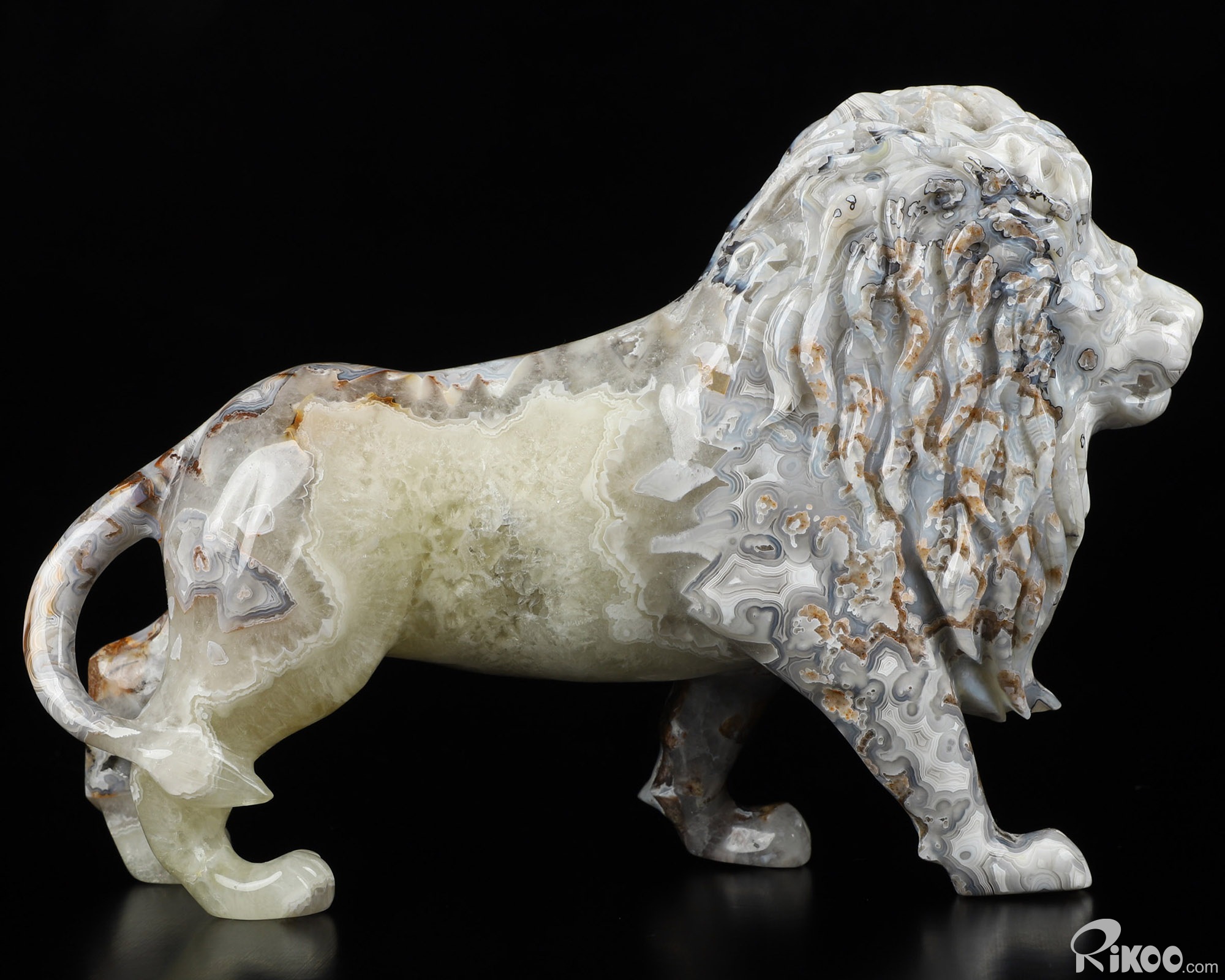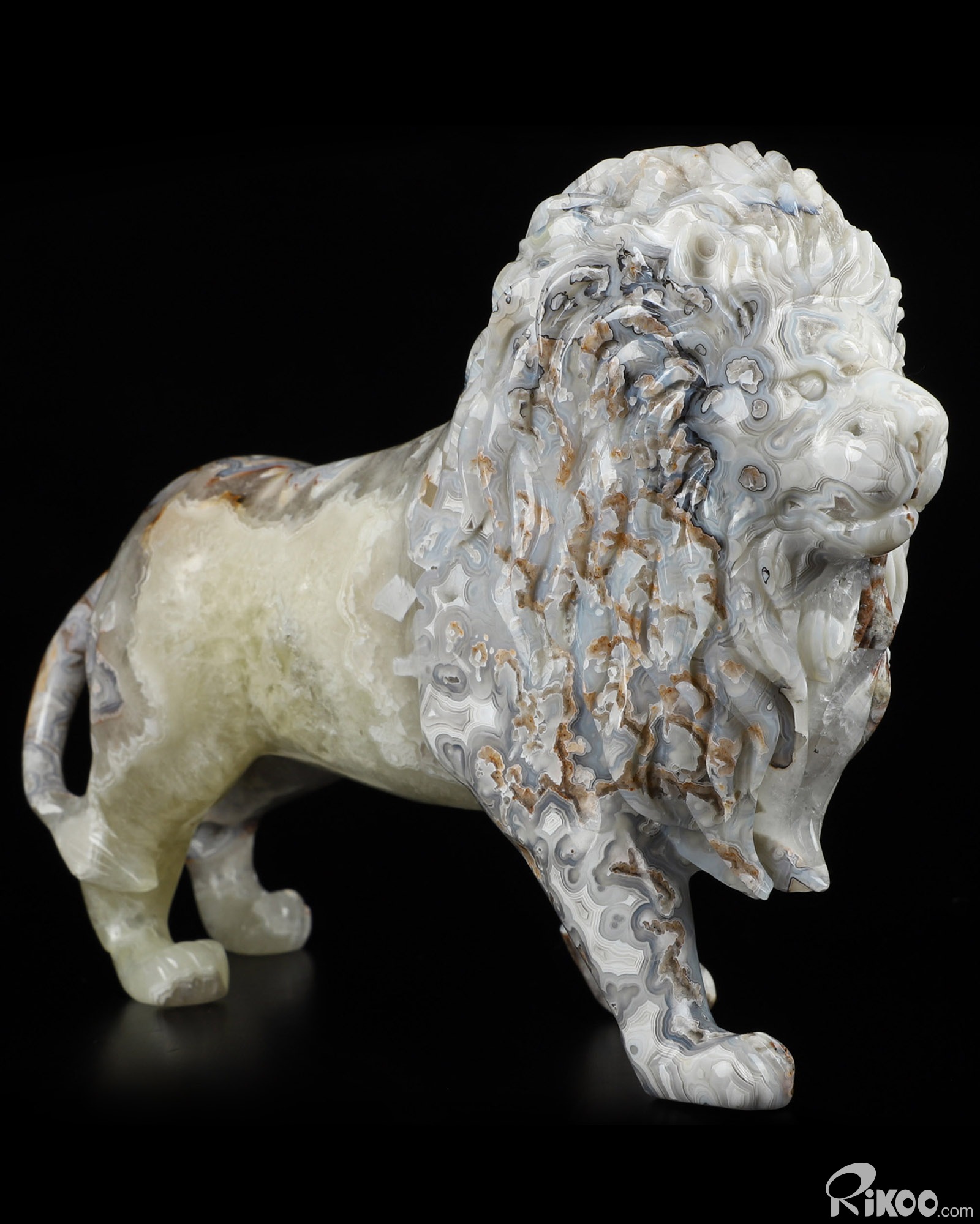Awesome 8.1" Crazy Lace Agate Carved Crystal Lion Sculpture, Crystal Healing