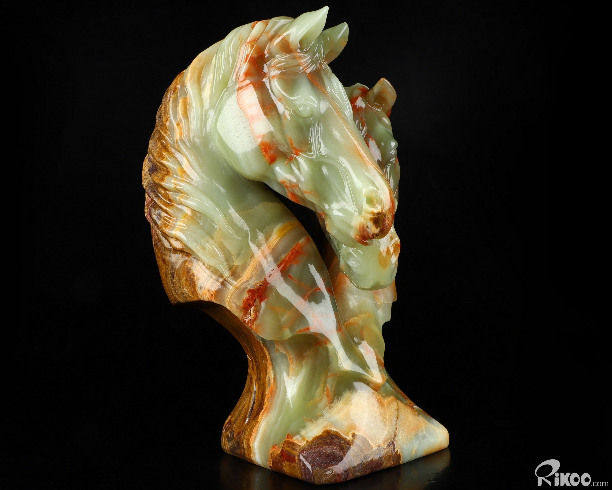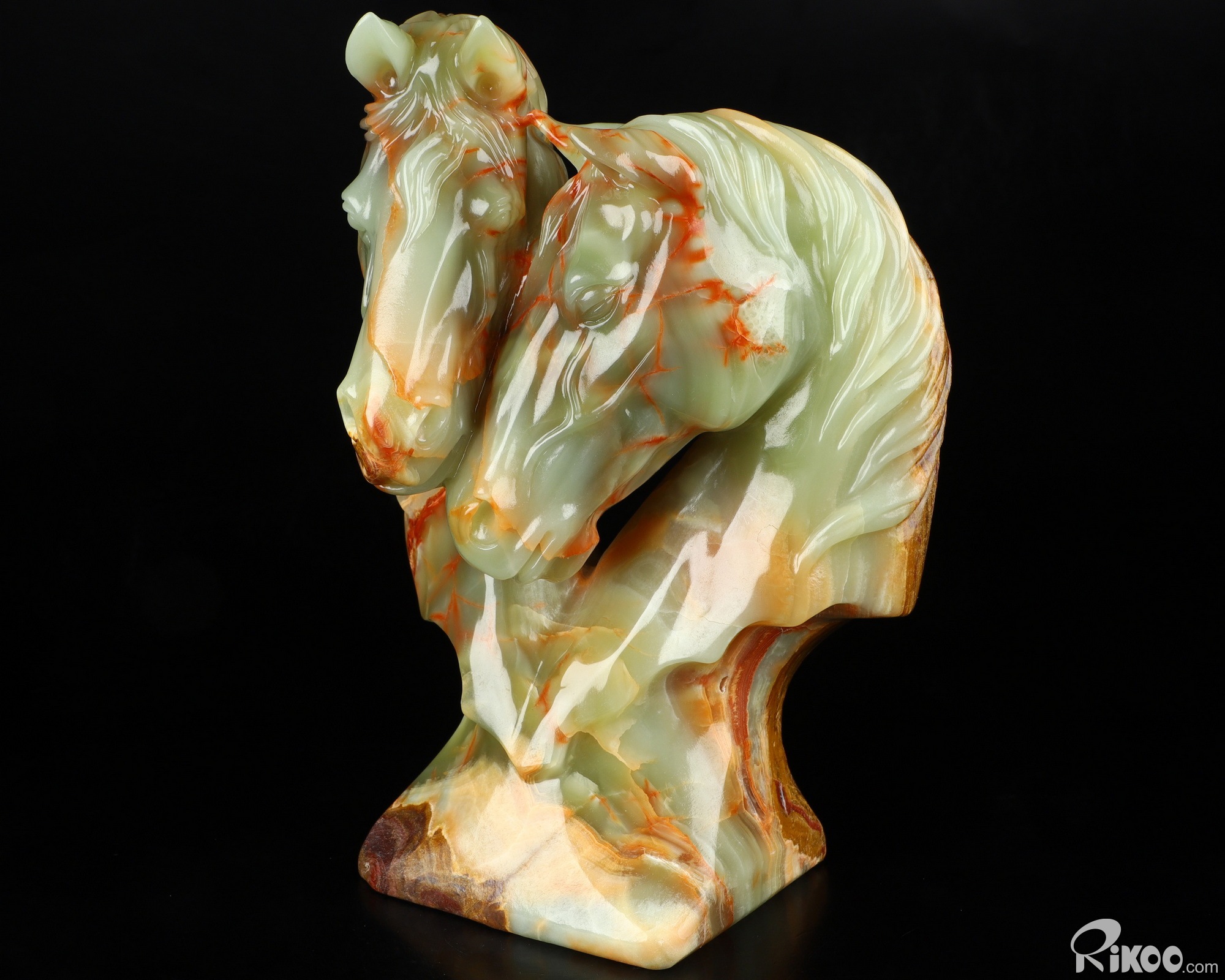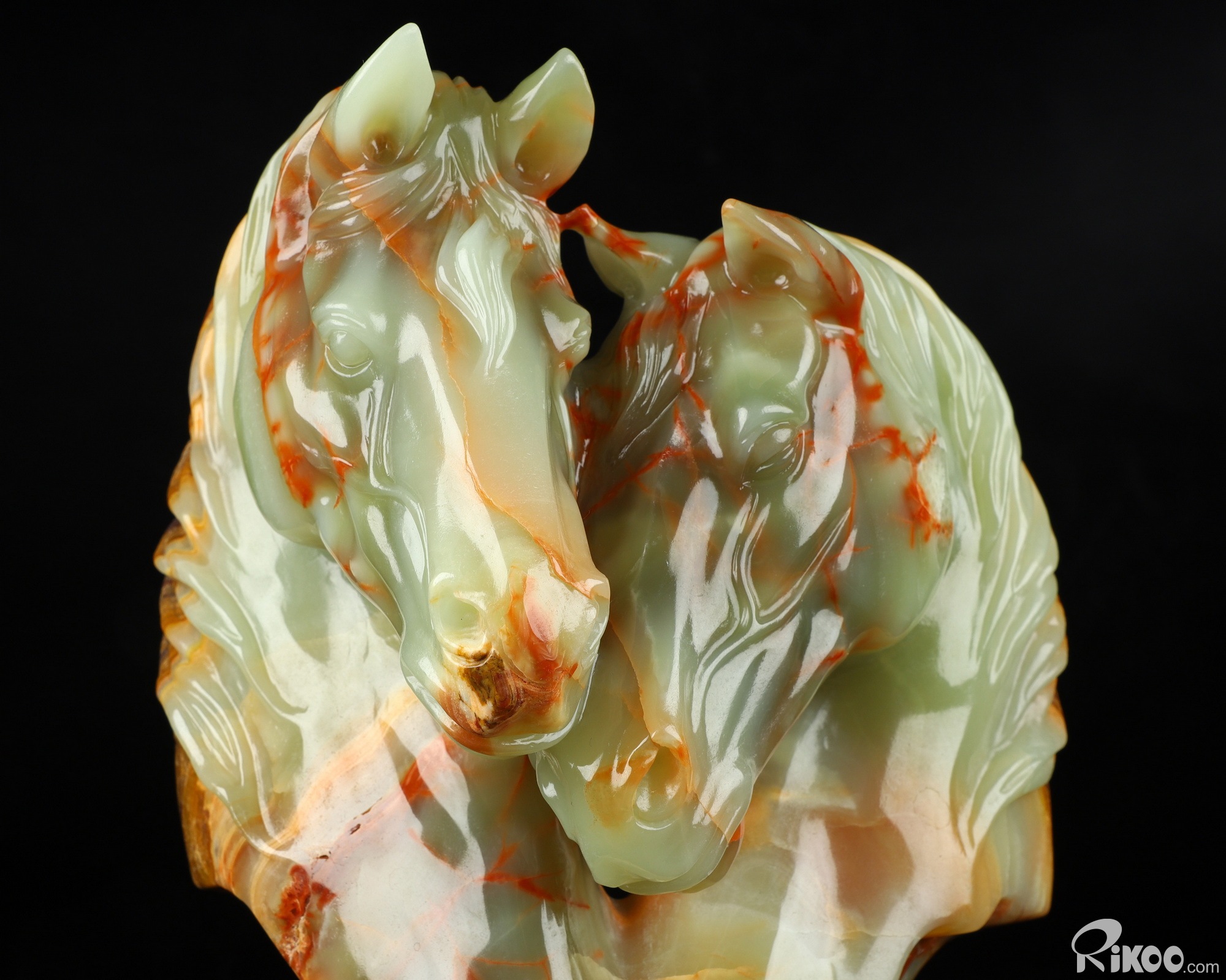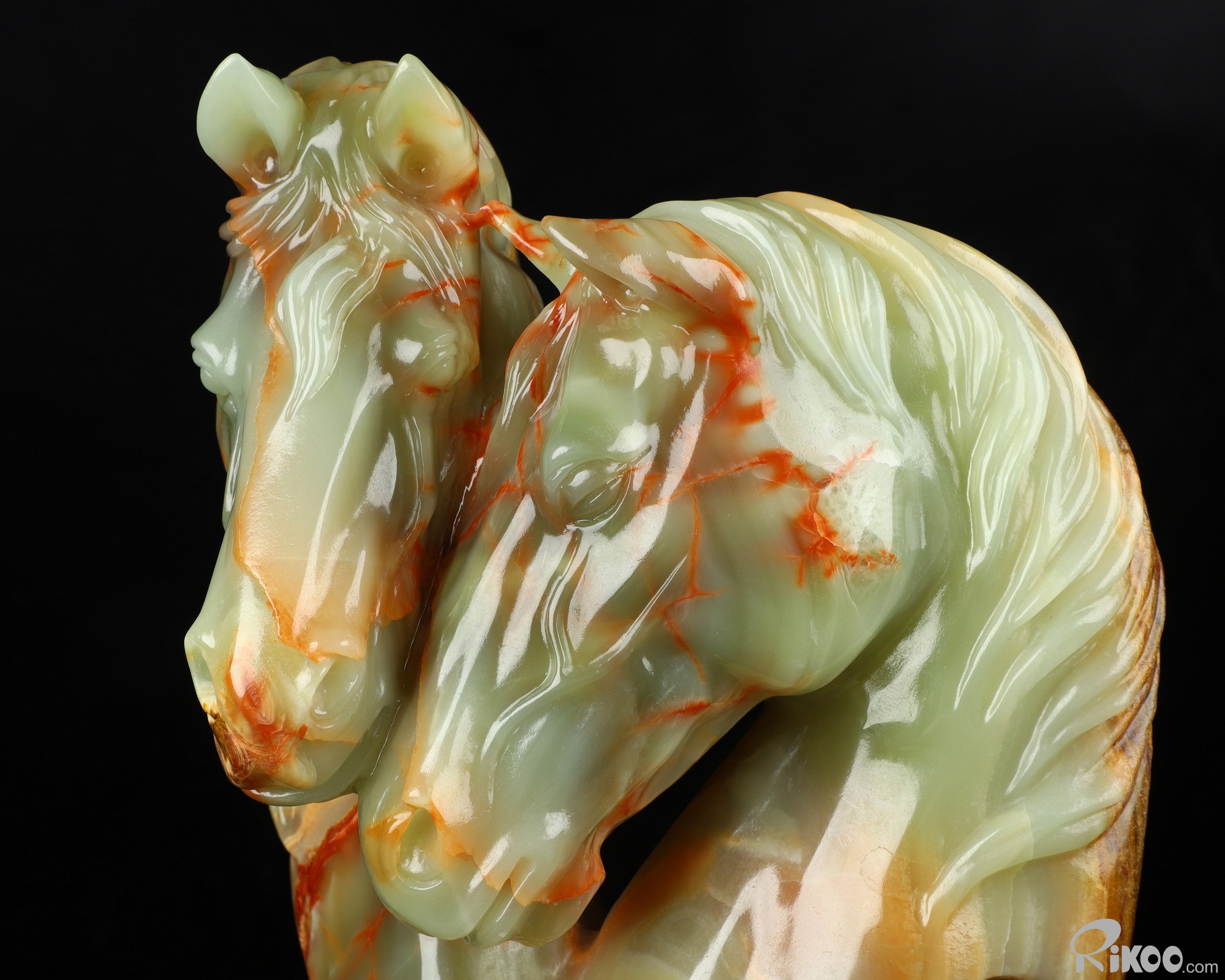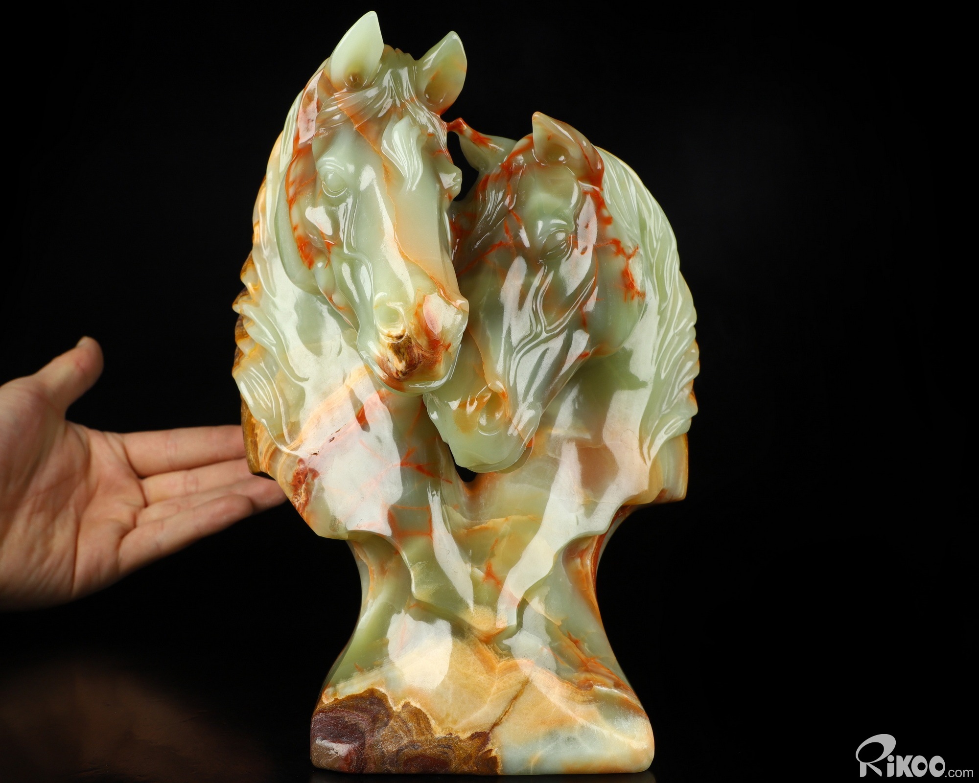 Awesome 8.4" Afghanistan Jade Carved Crystal Twin Horses Sculpture, Crystal Healing