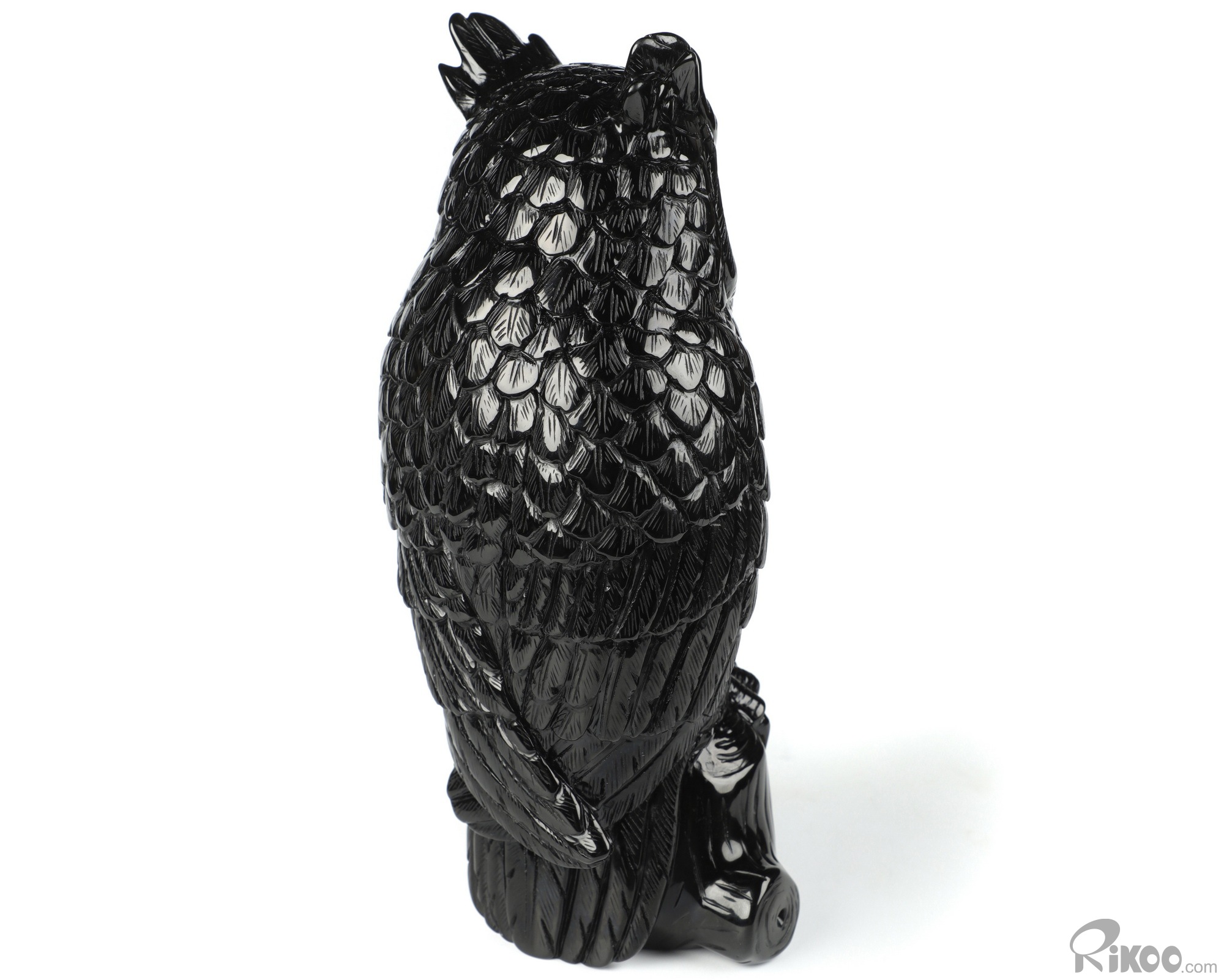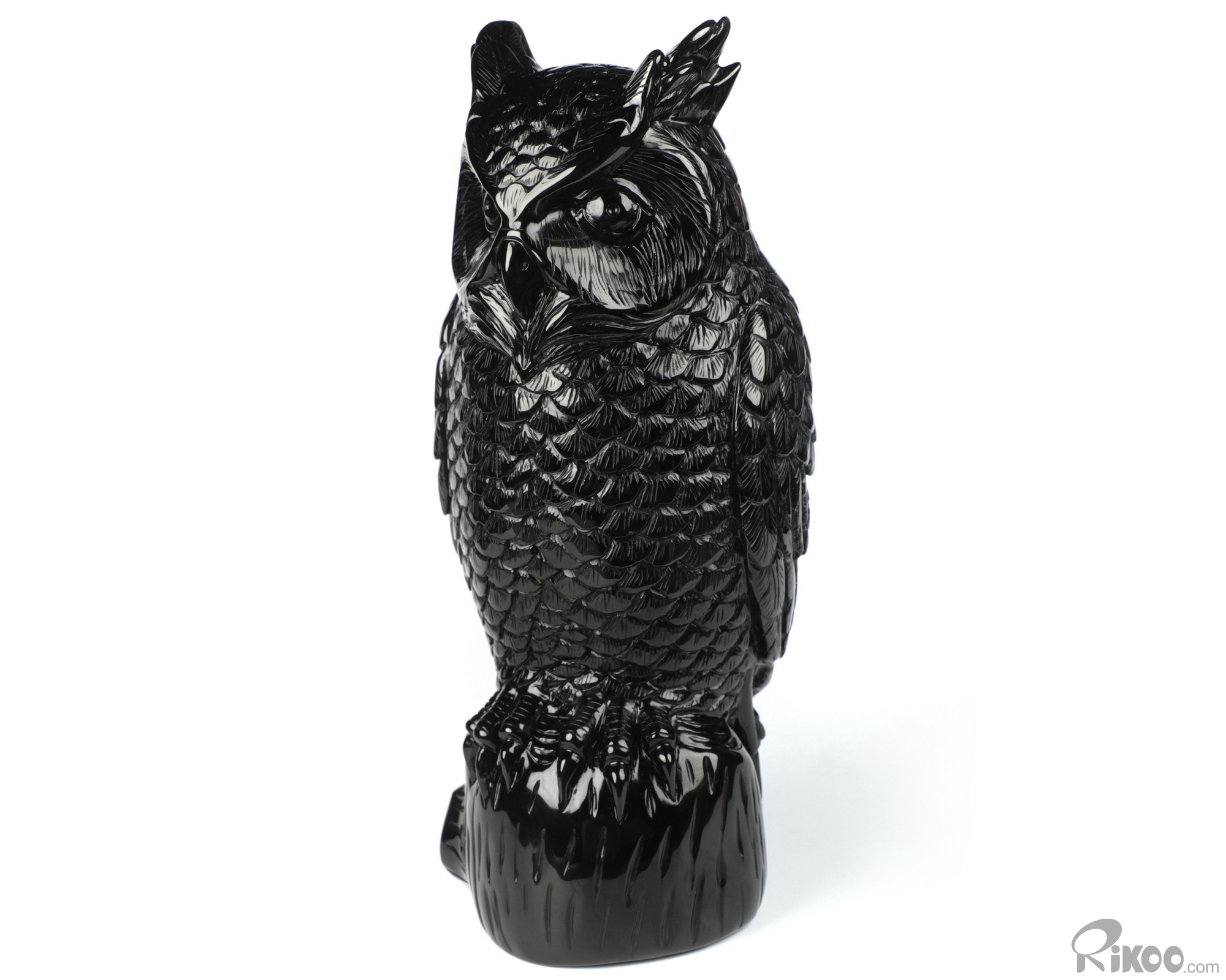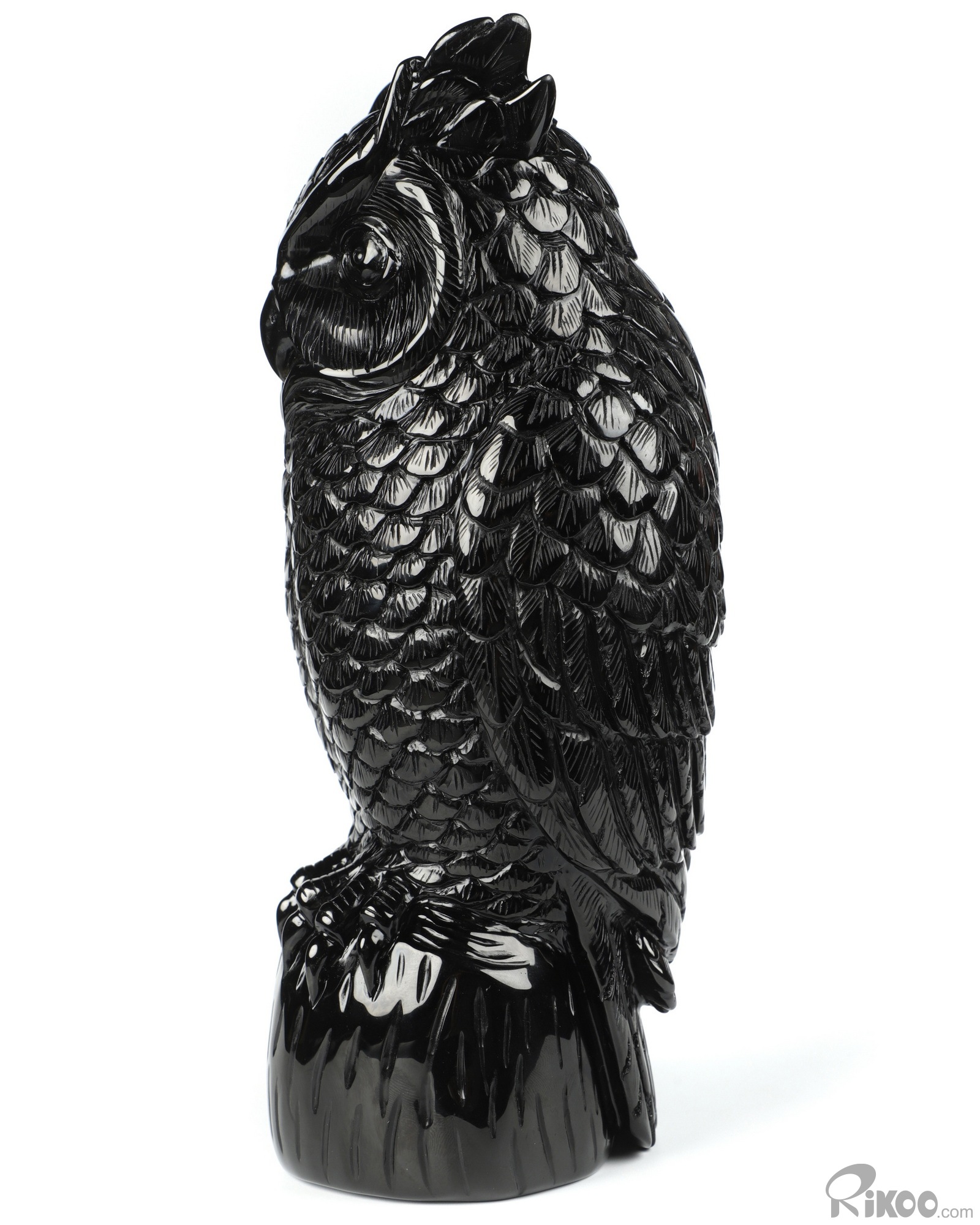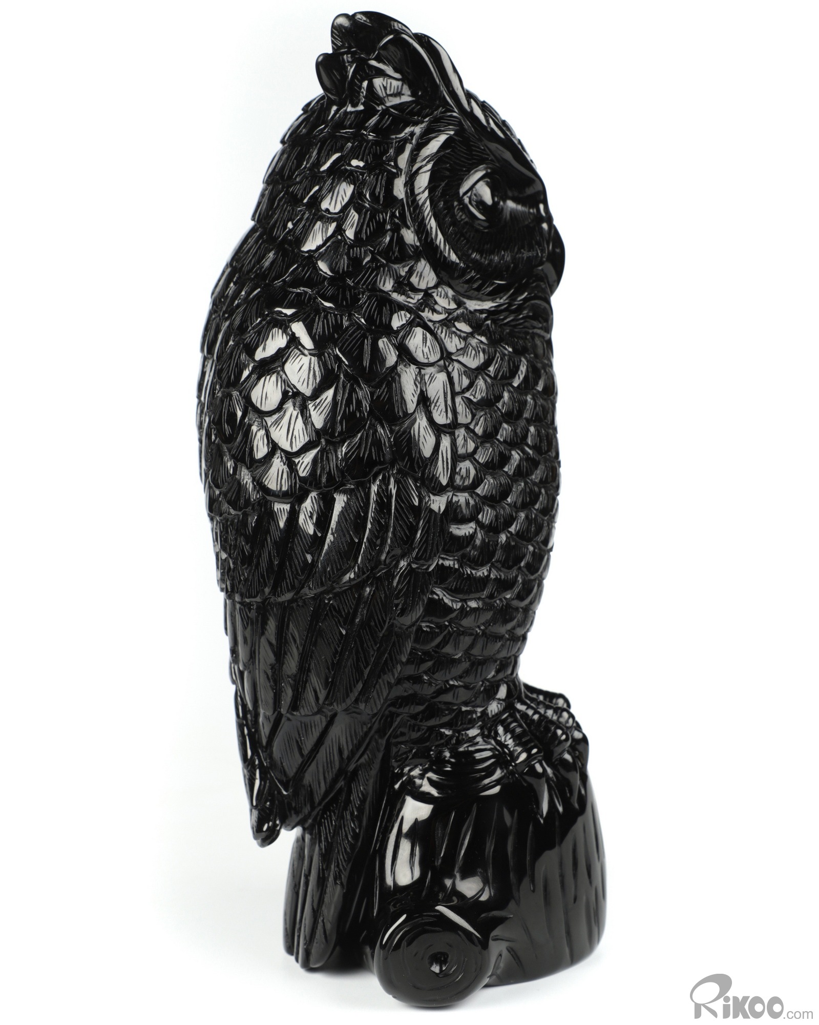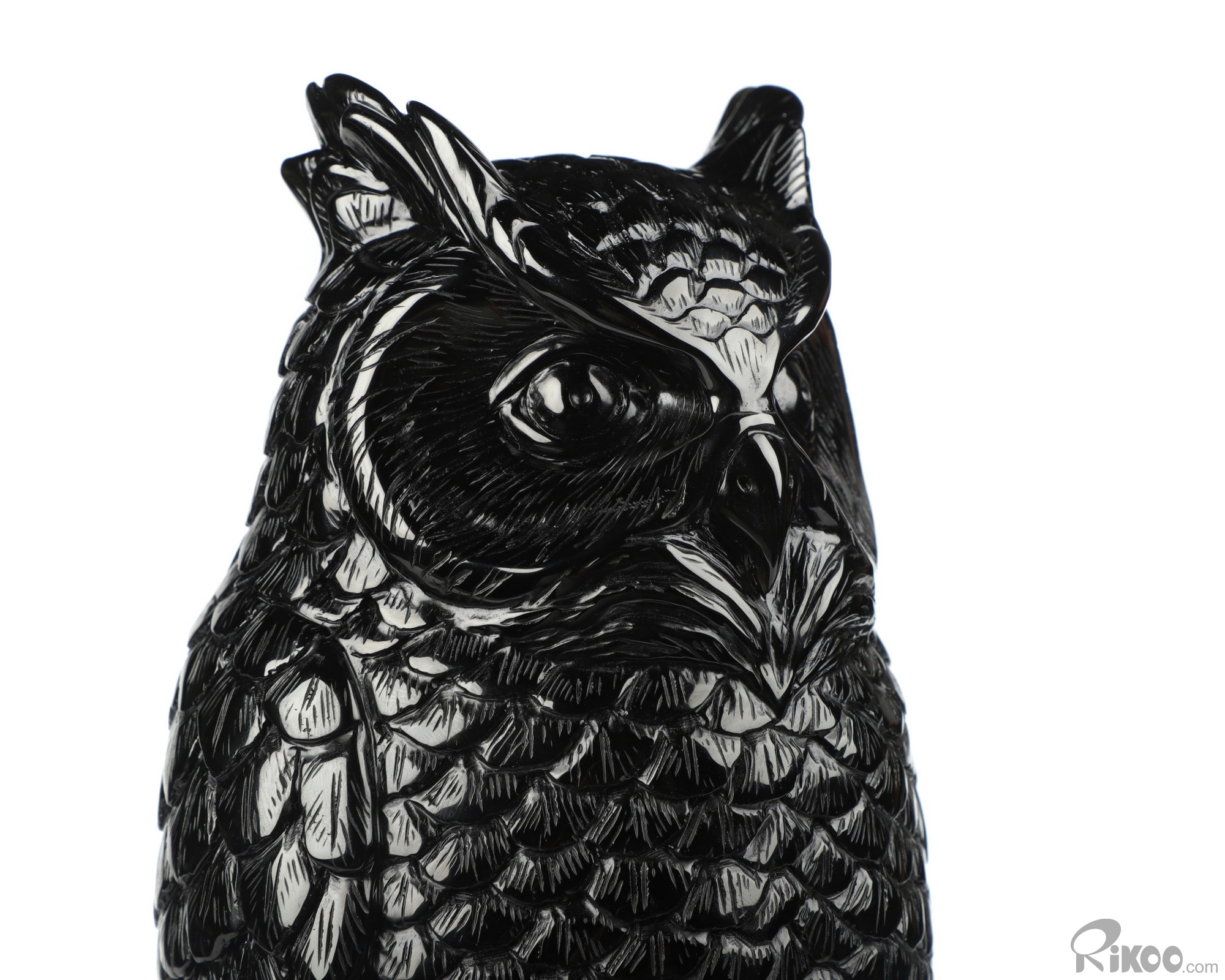 Awesome 8.4" Black Obsidian Carved Crystal Owl Sculpture, Realistic, Crystal Healing