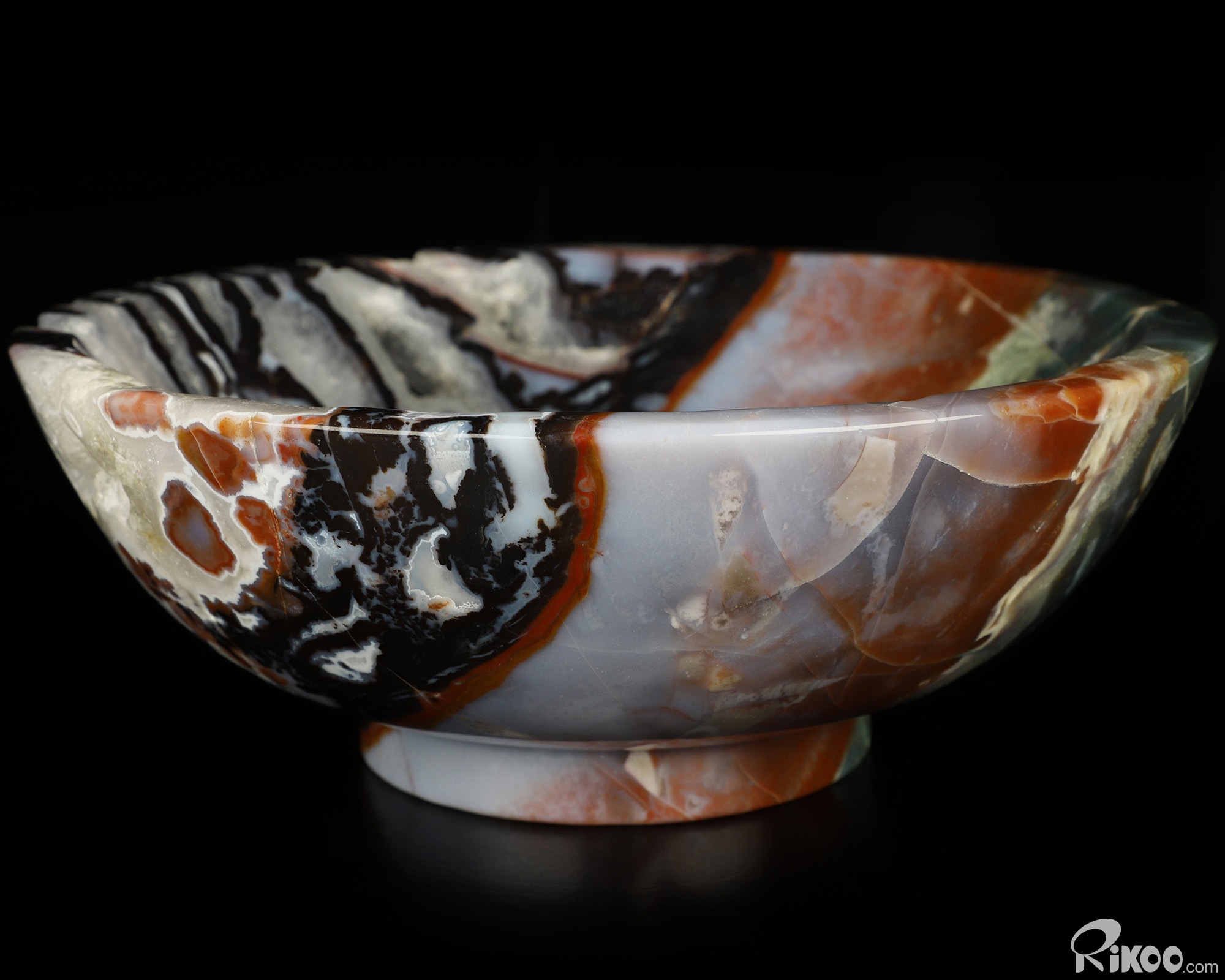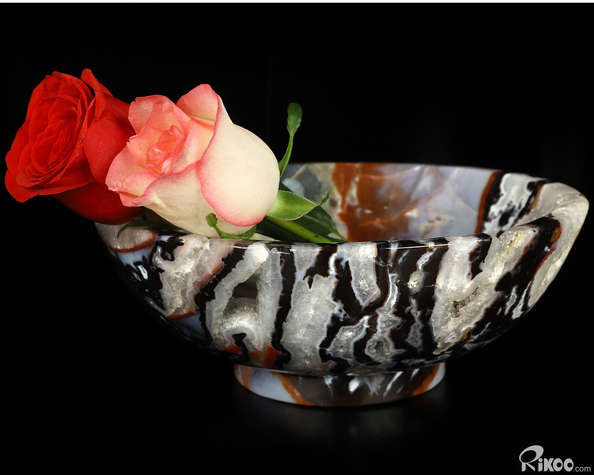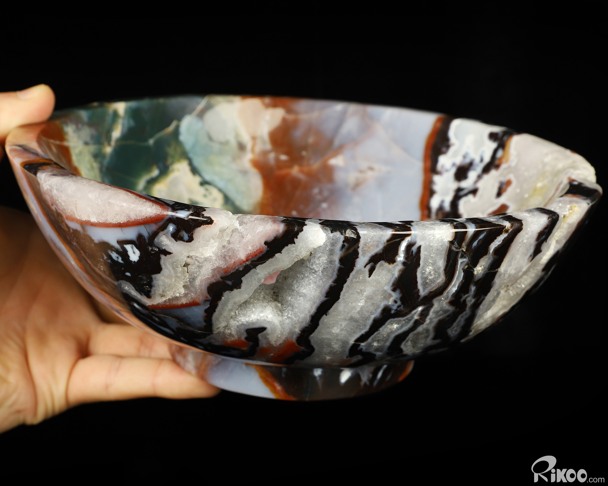 Awesome 8.5" Black Zebra Agate Hand Carved Crystal Bowl, Crystal Healing