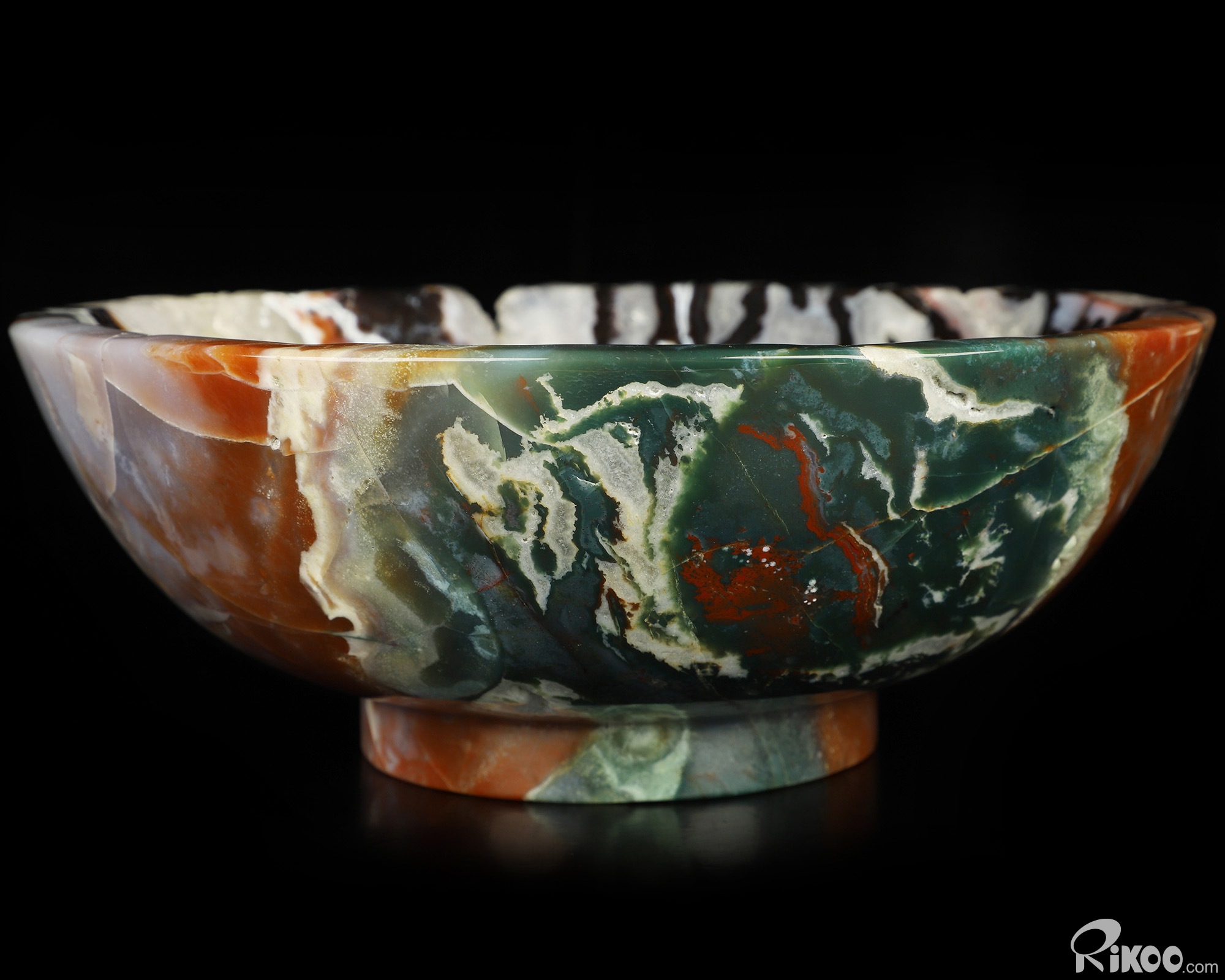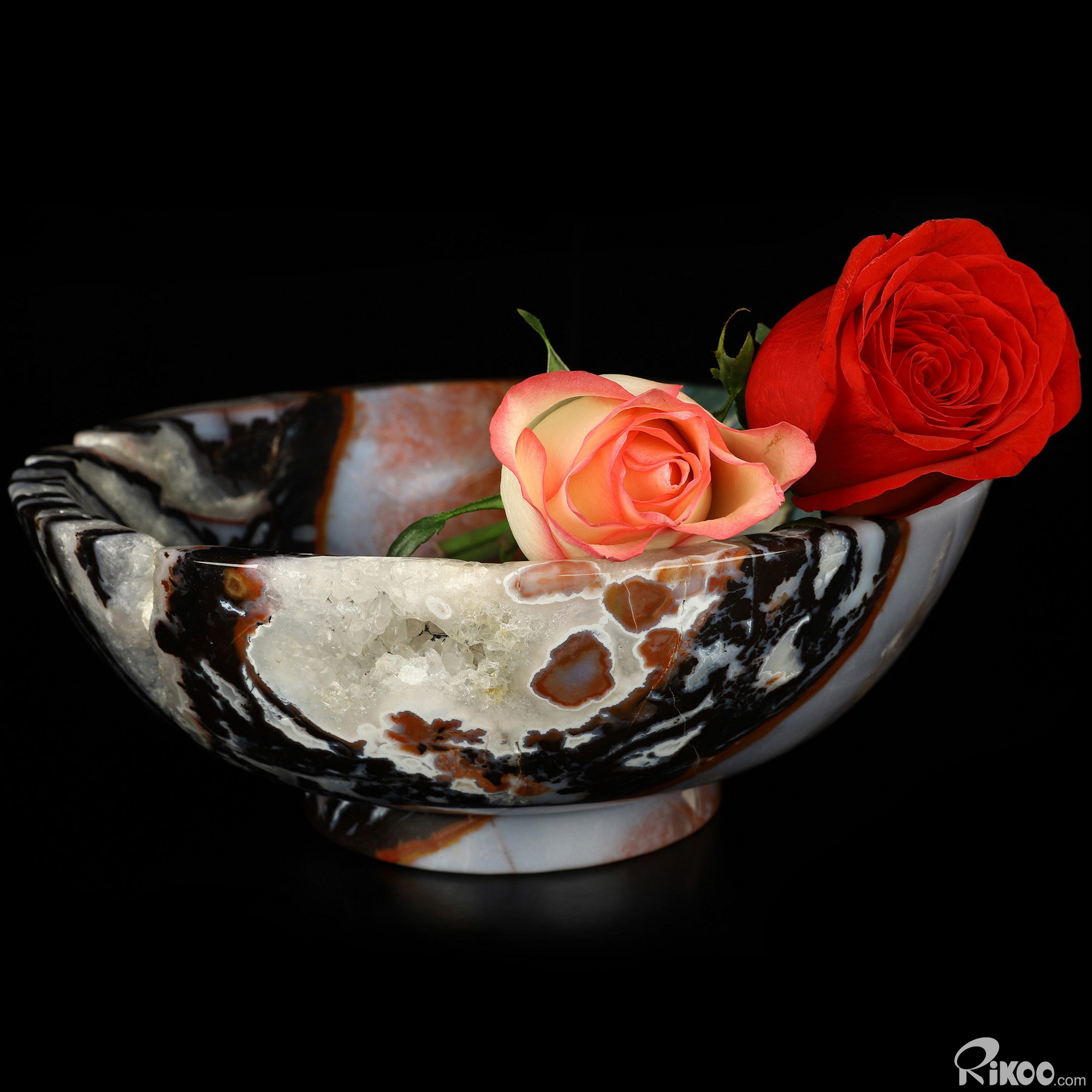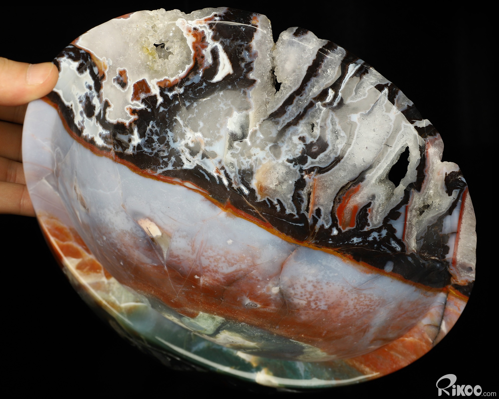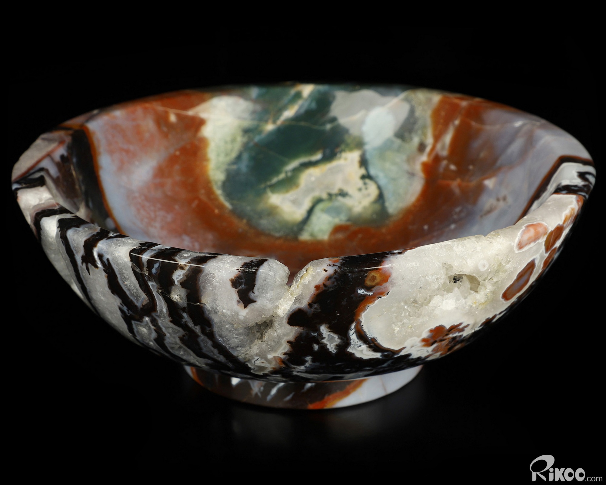 Awesome 8.5" Black Zebra Agate Hand Carved Crystal Bowl, Crystal Healing