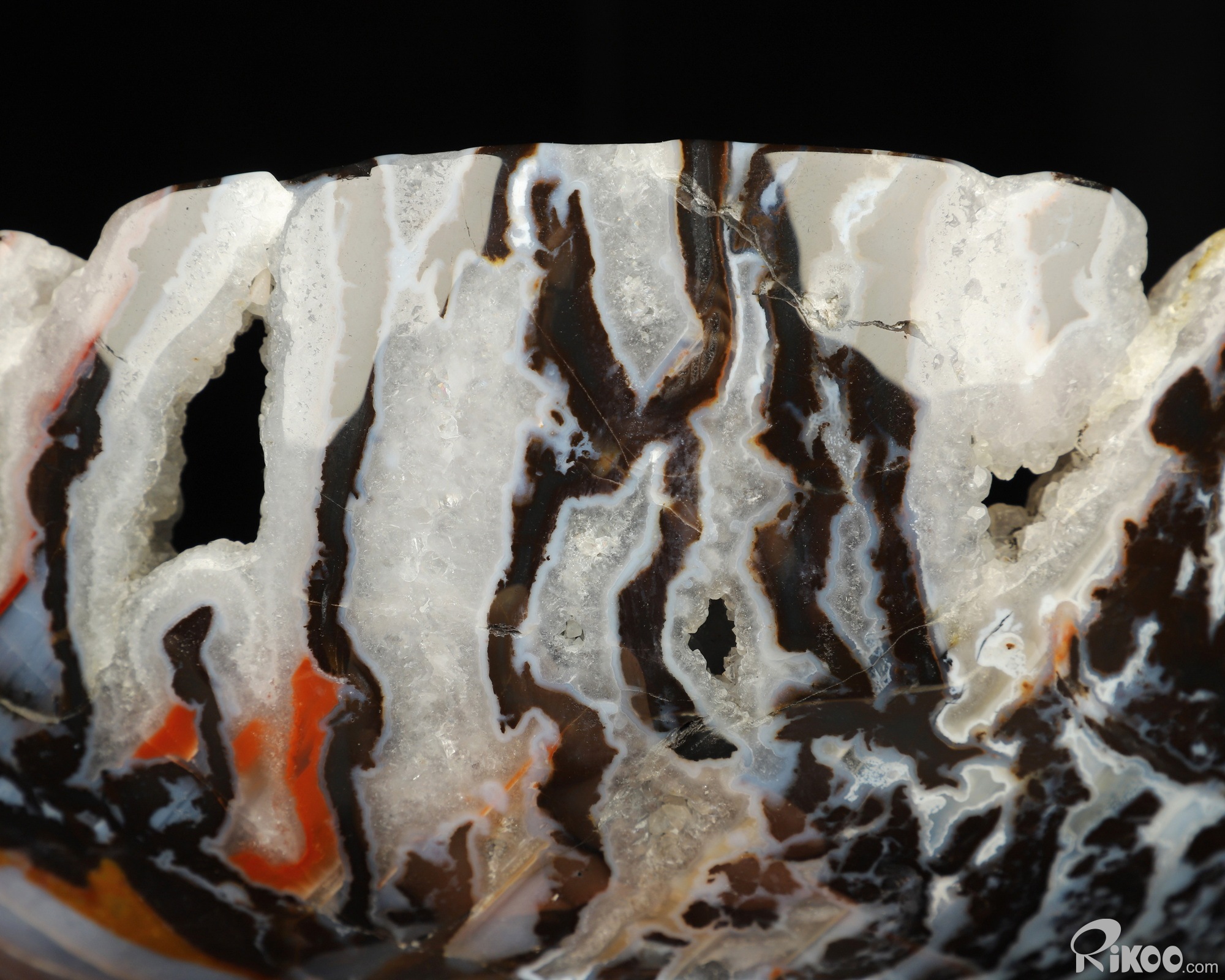 You are looking at a Black Zebra Agate sculpture. The sculpture is 8.5 inches long.