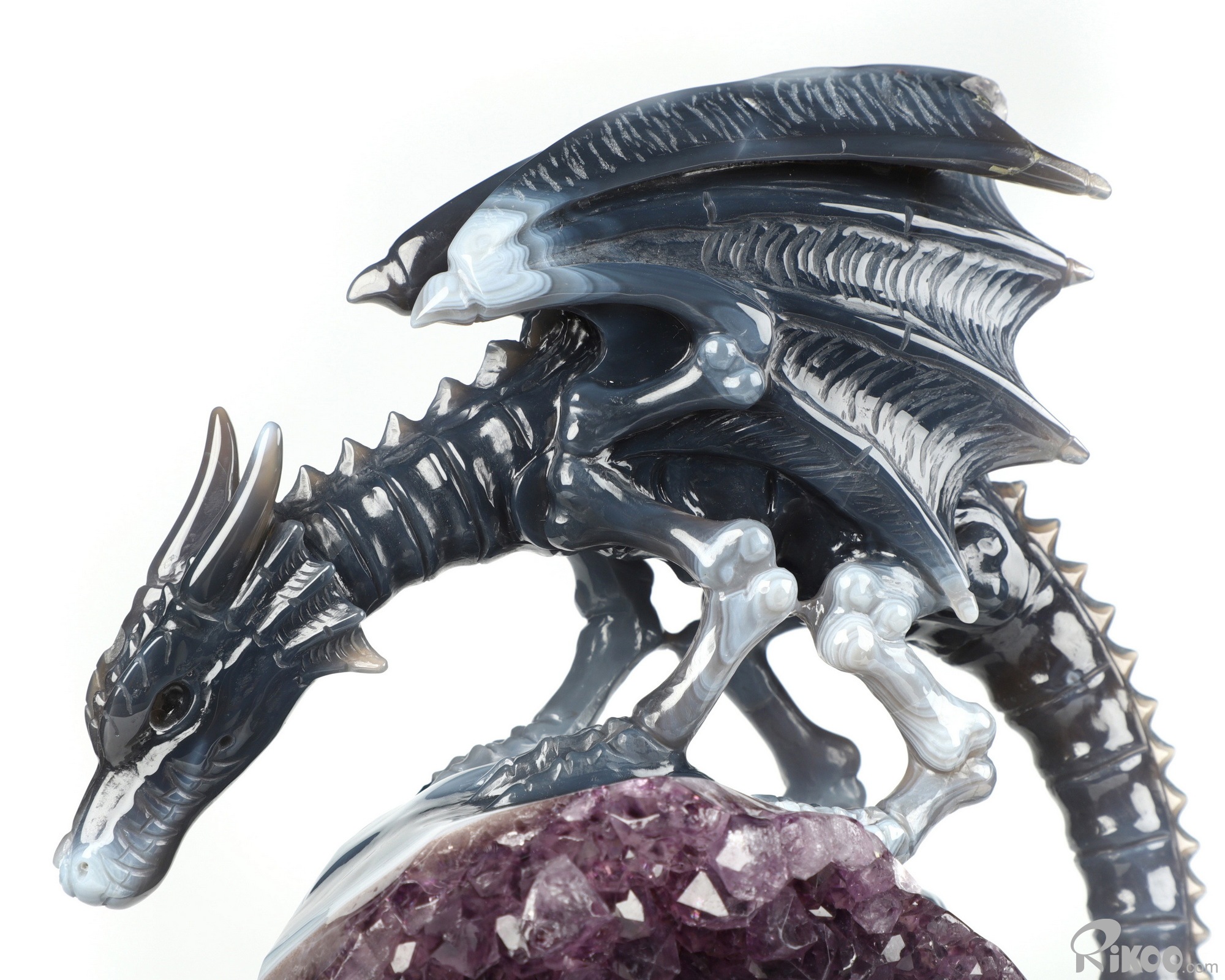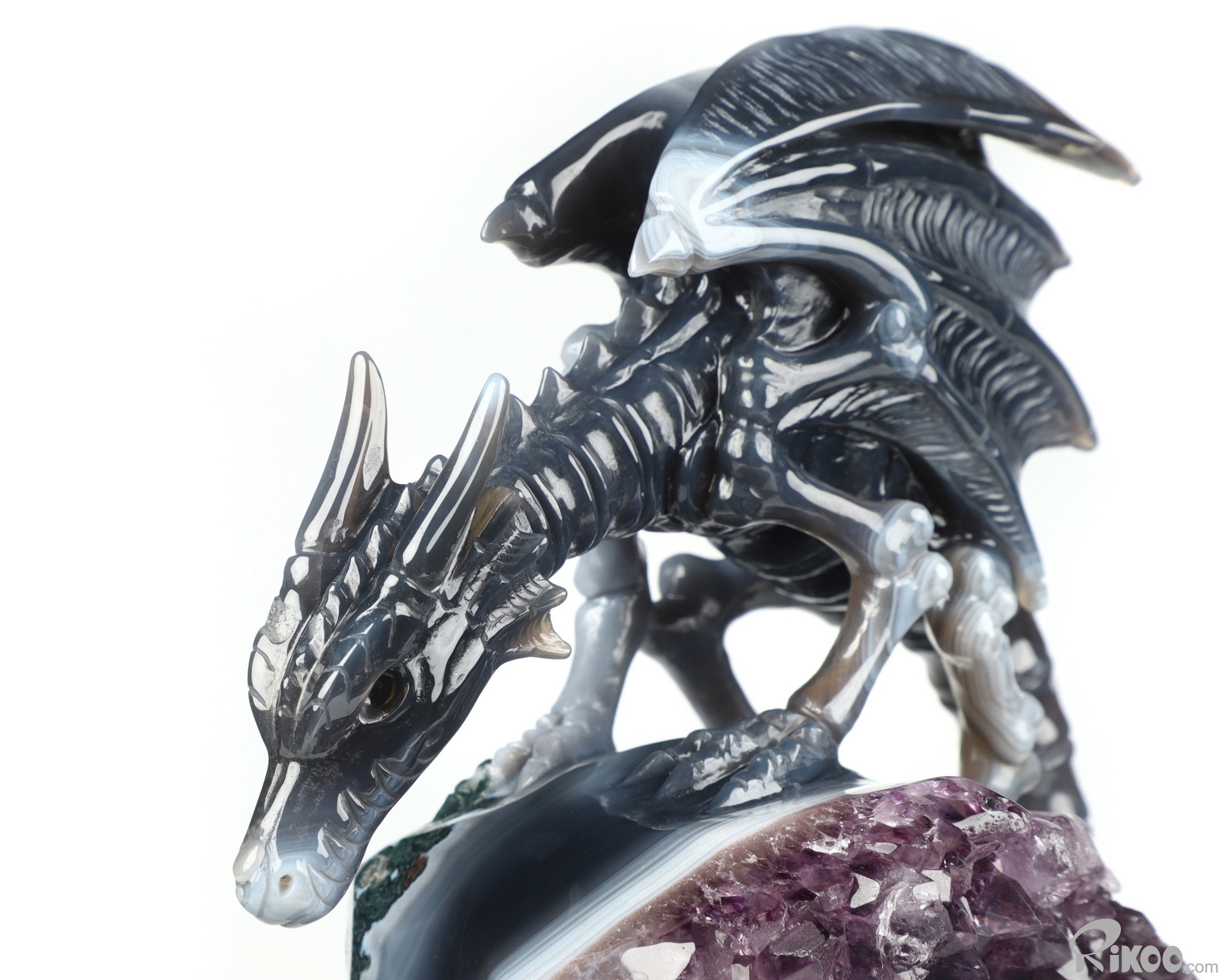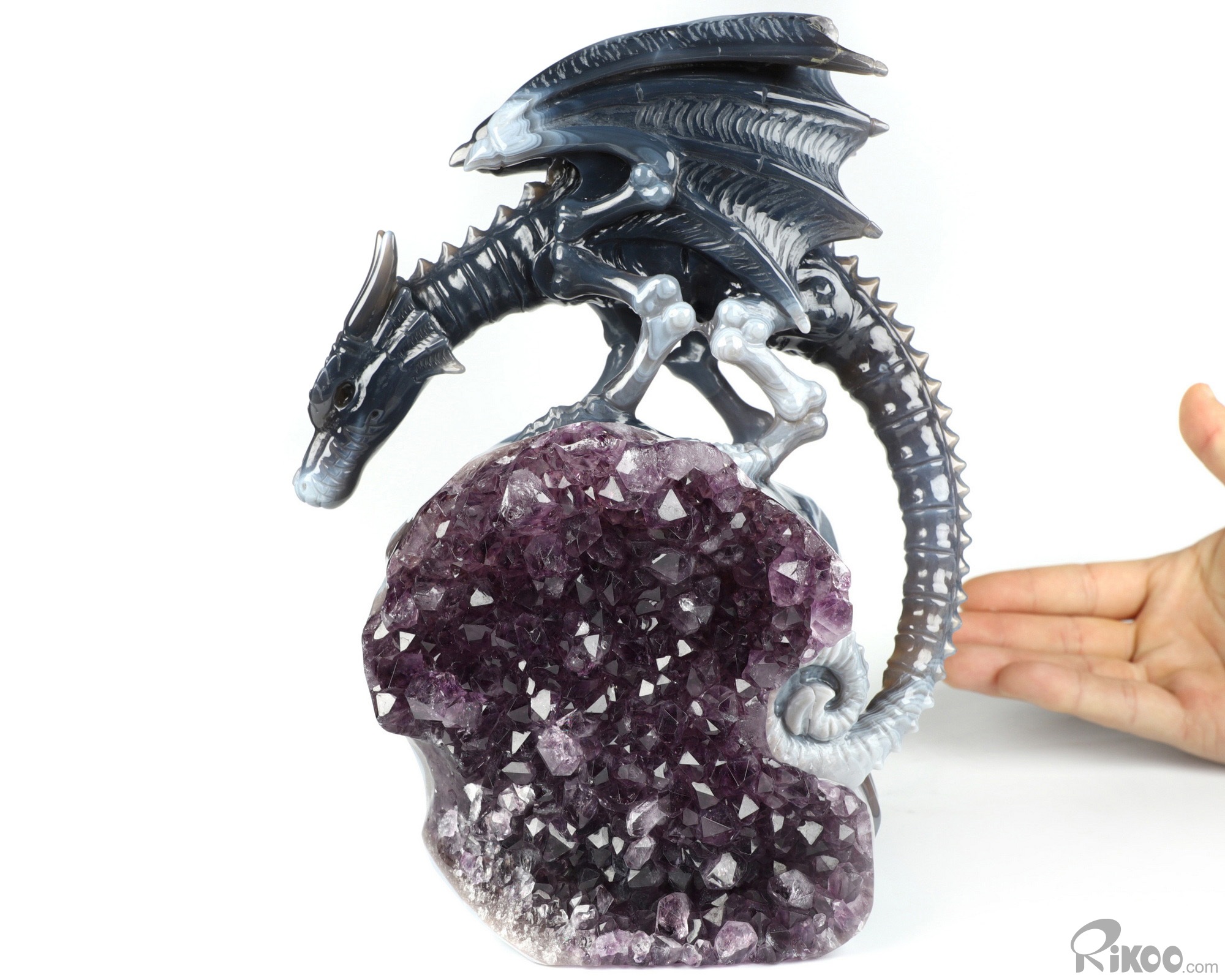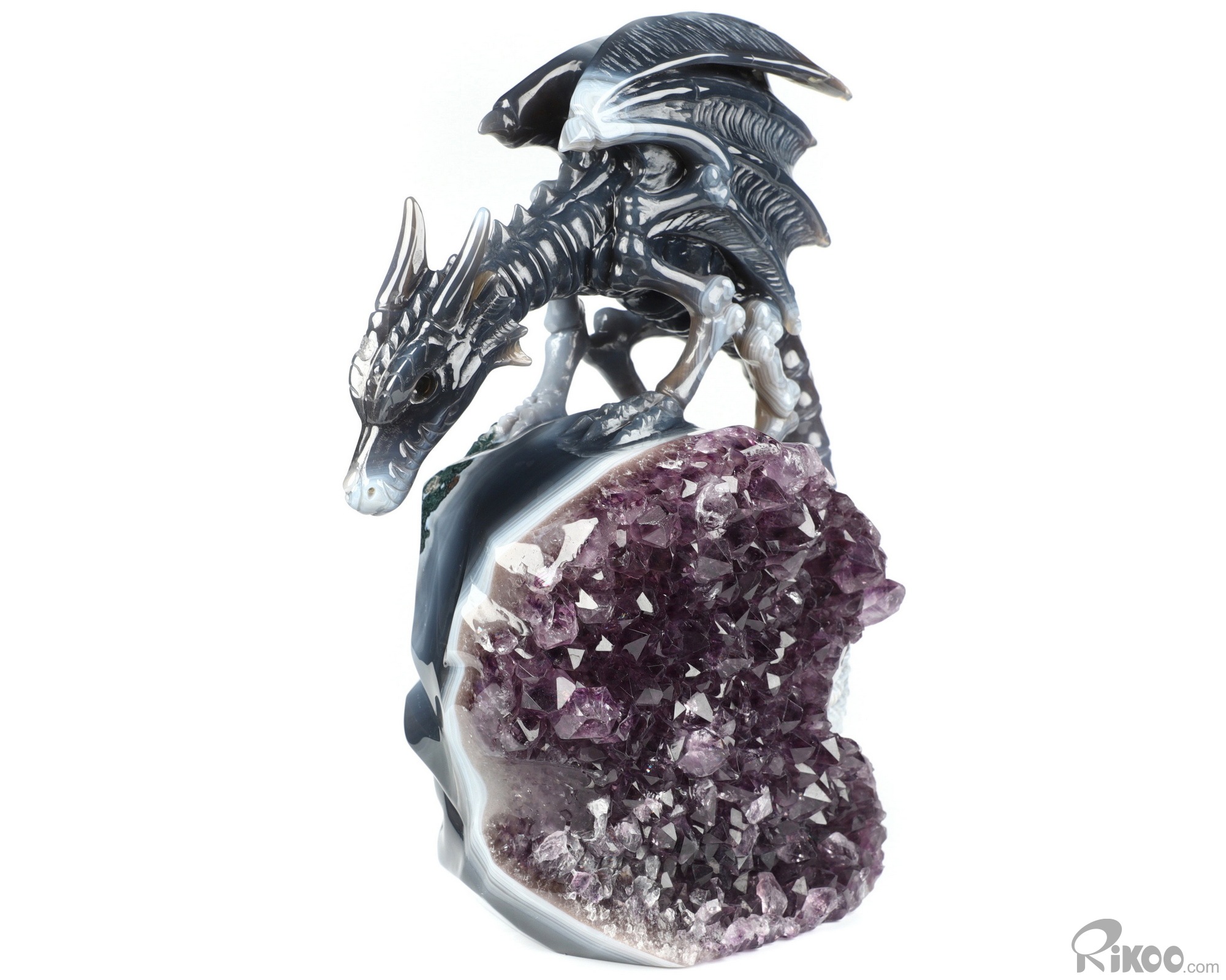 Awesome 8.7" Agate Amethyst Geode Carved Crystal Dragon Sculpture, Crystal Healing