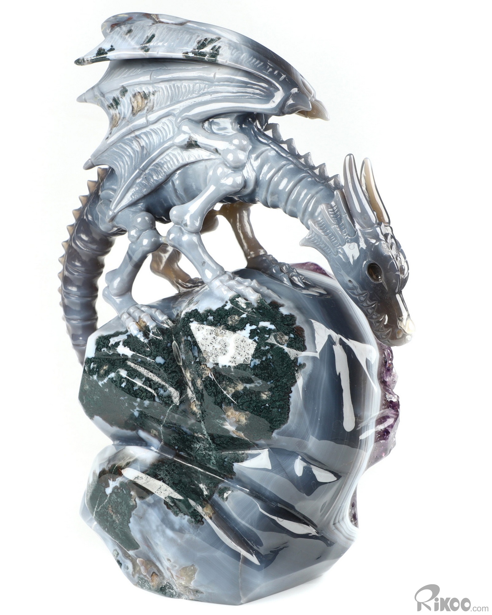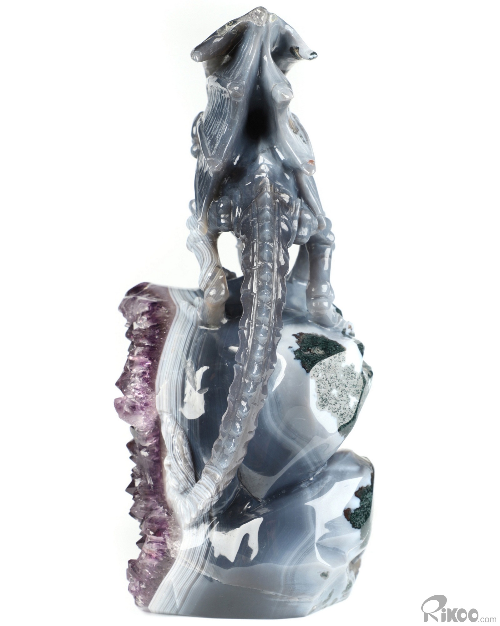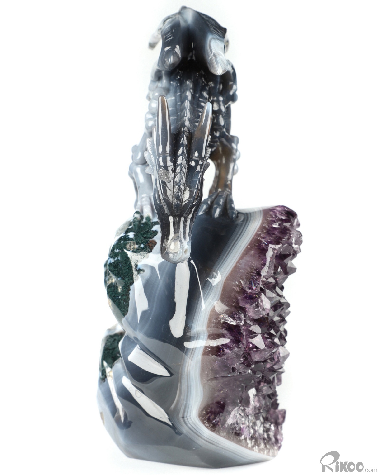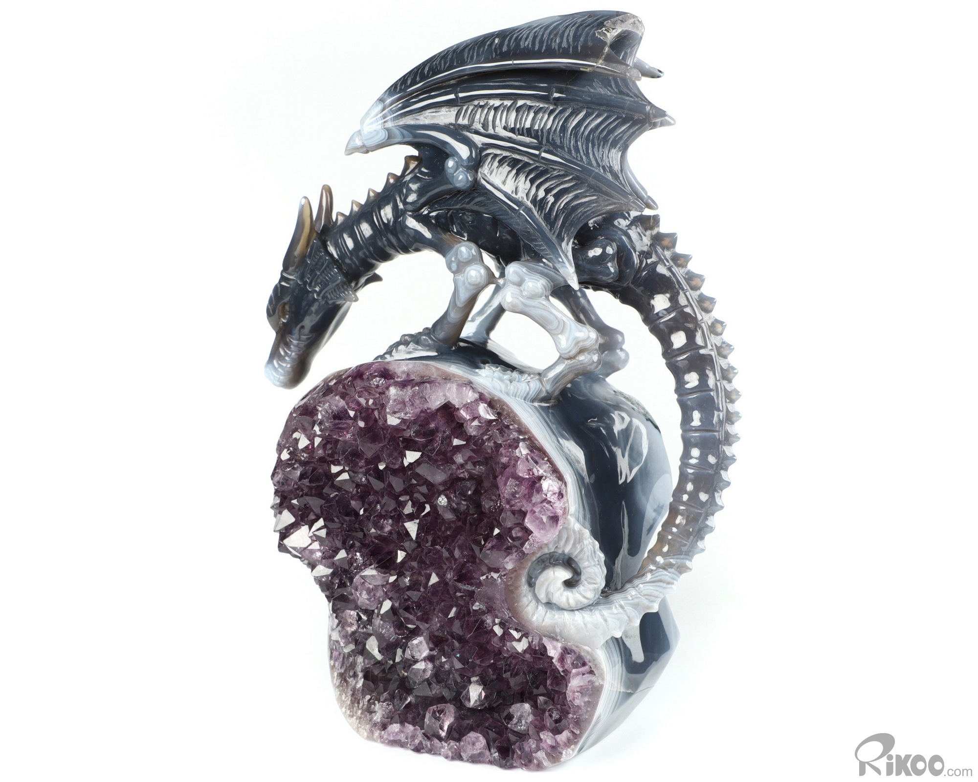 Awesome 8.7" Agate Amethyst Geode Carved Crystal Dragon Sculpture, Crystal Healing