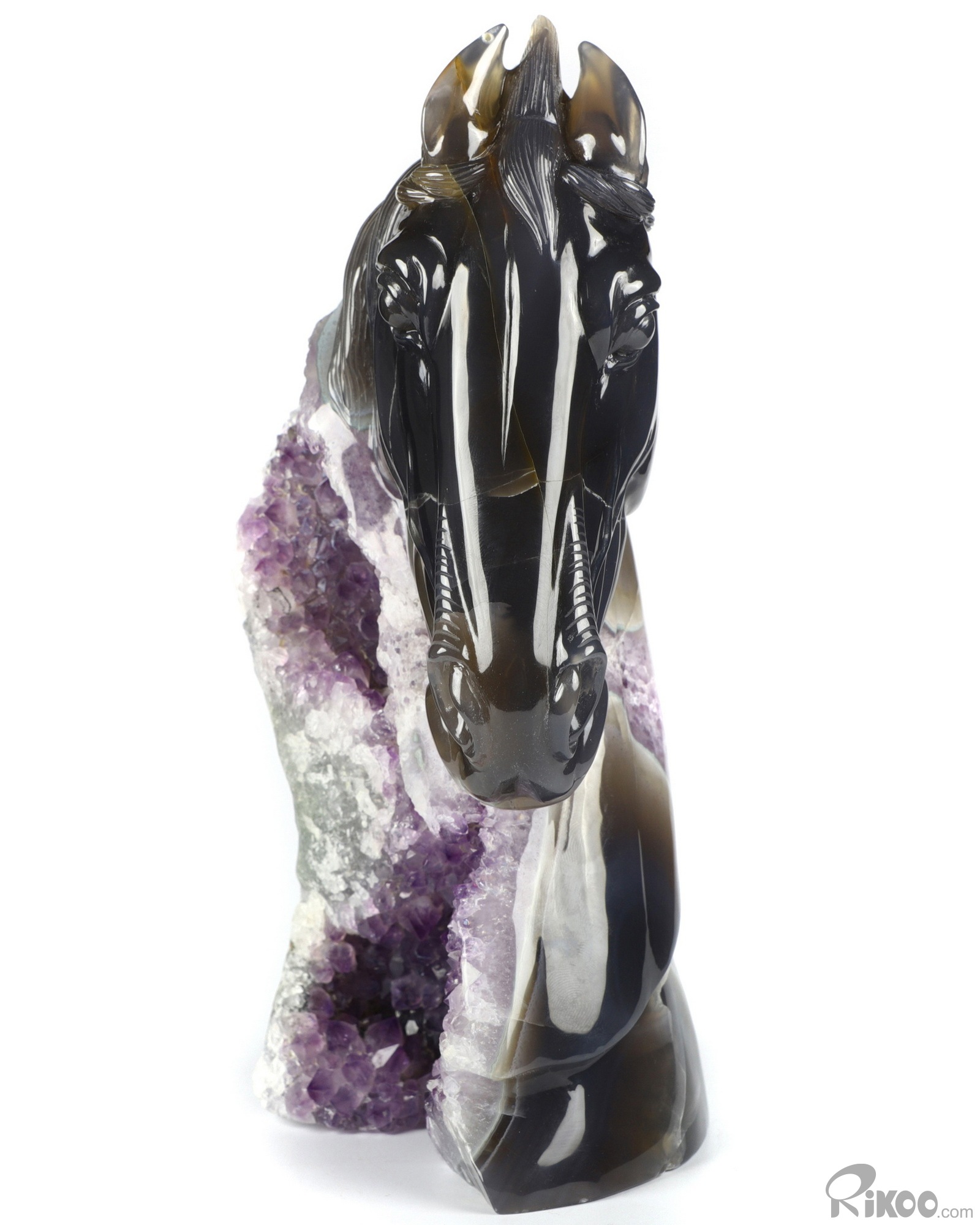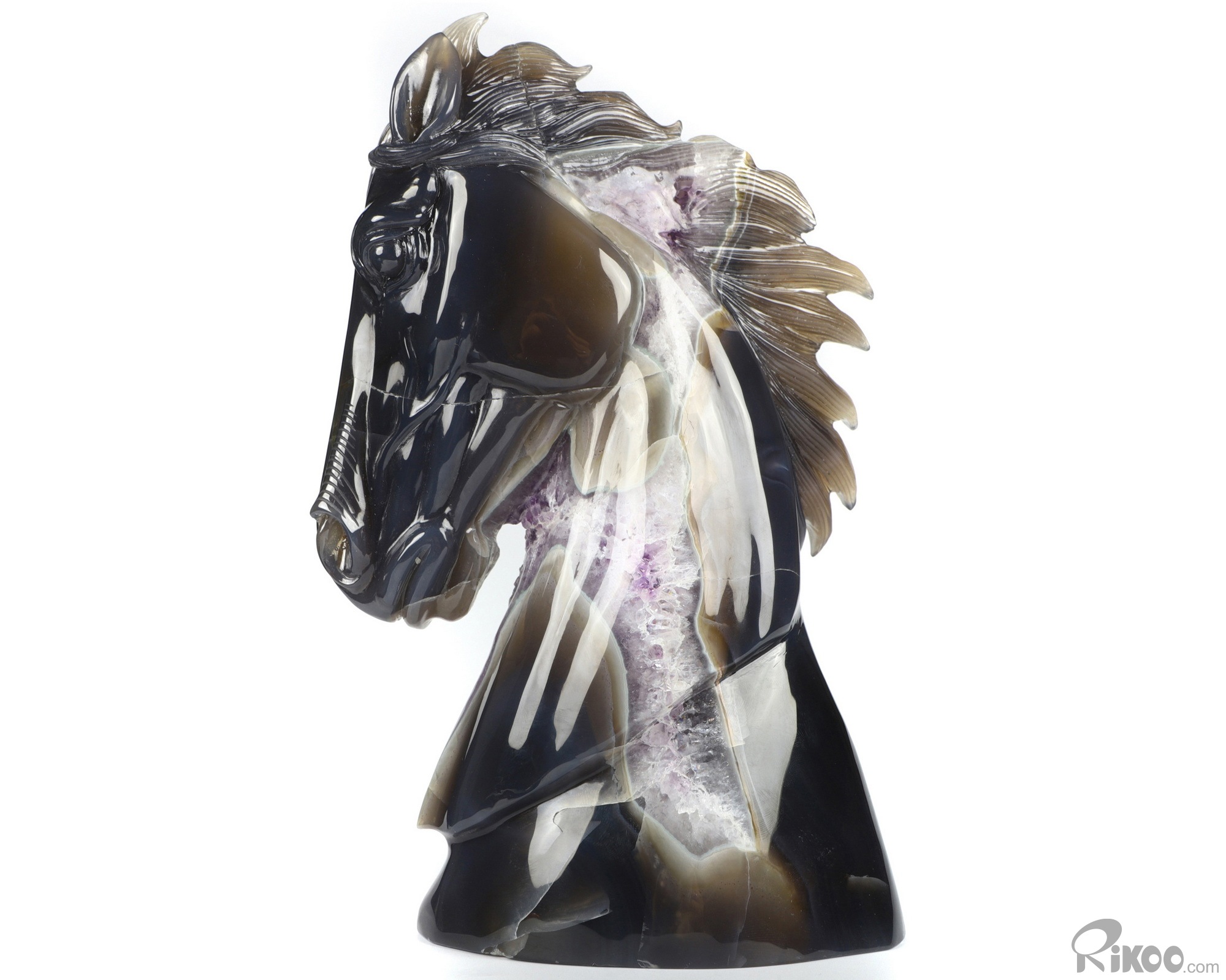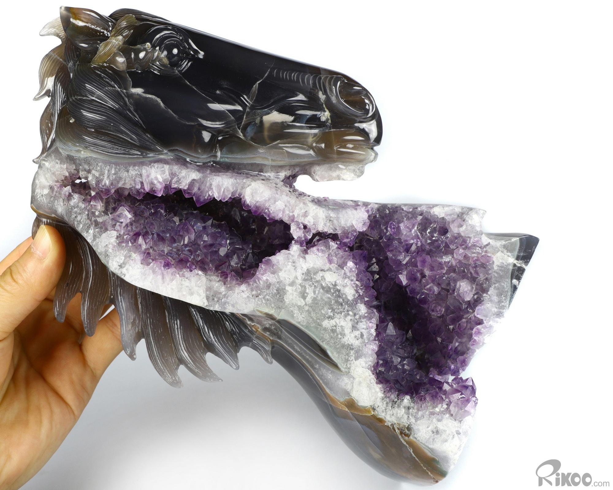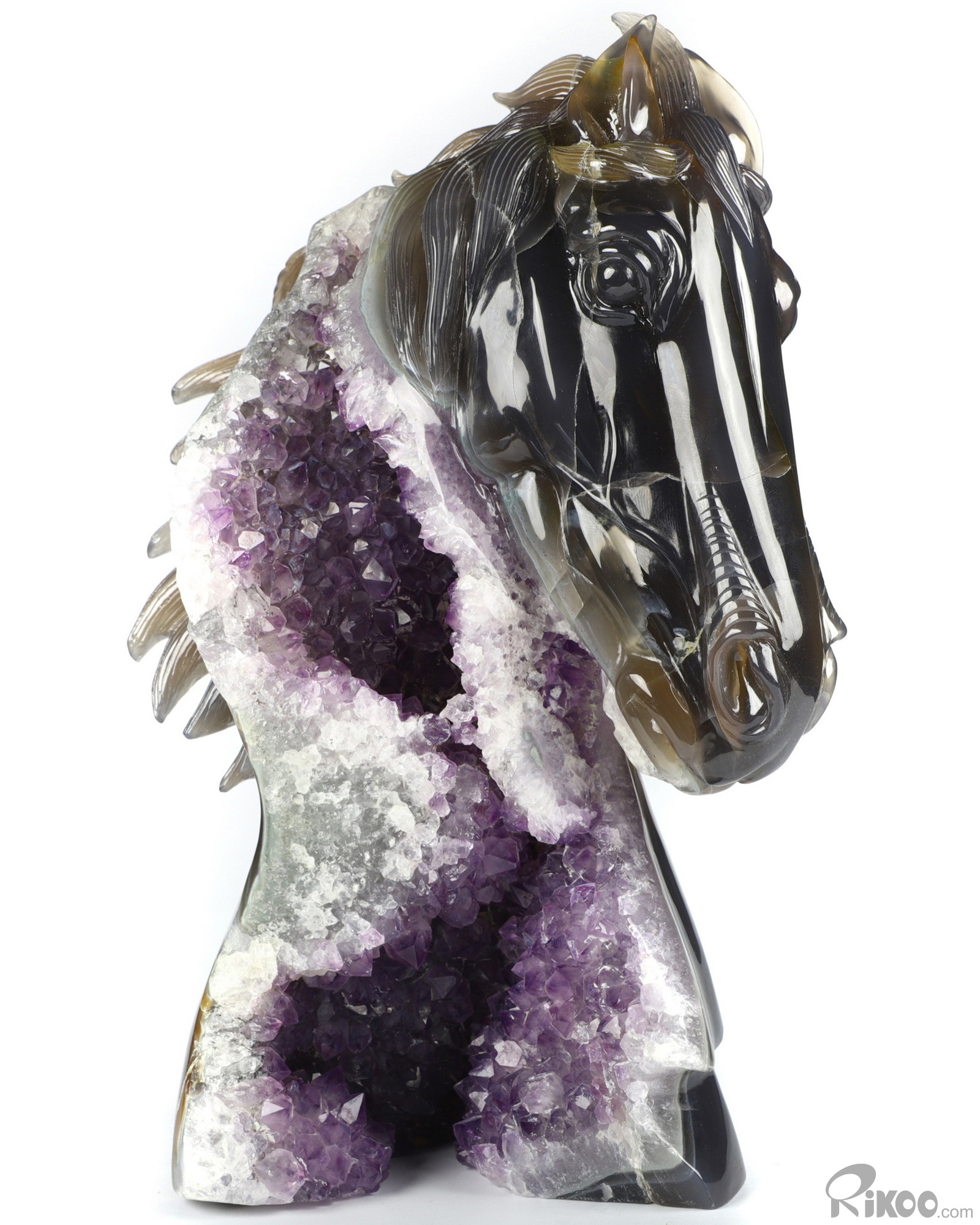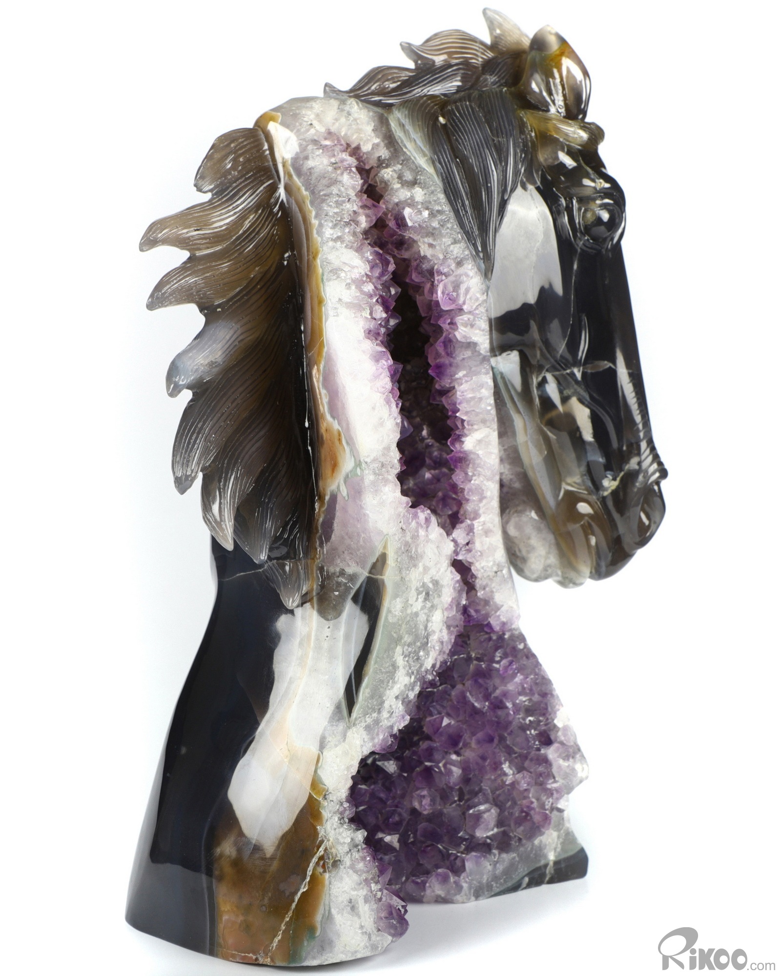 Awesome 9.8" Agate Amethyst Geode Carved Crystal Horse Sculpture, Crystal Healing