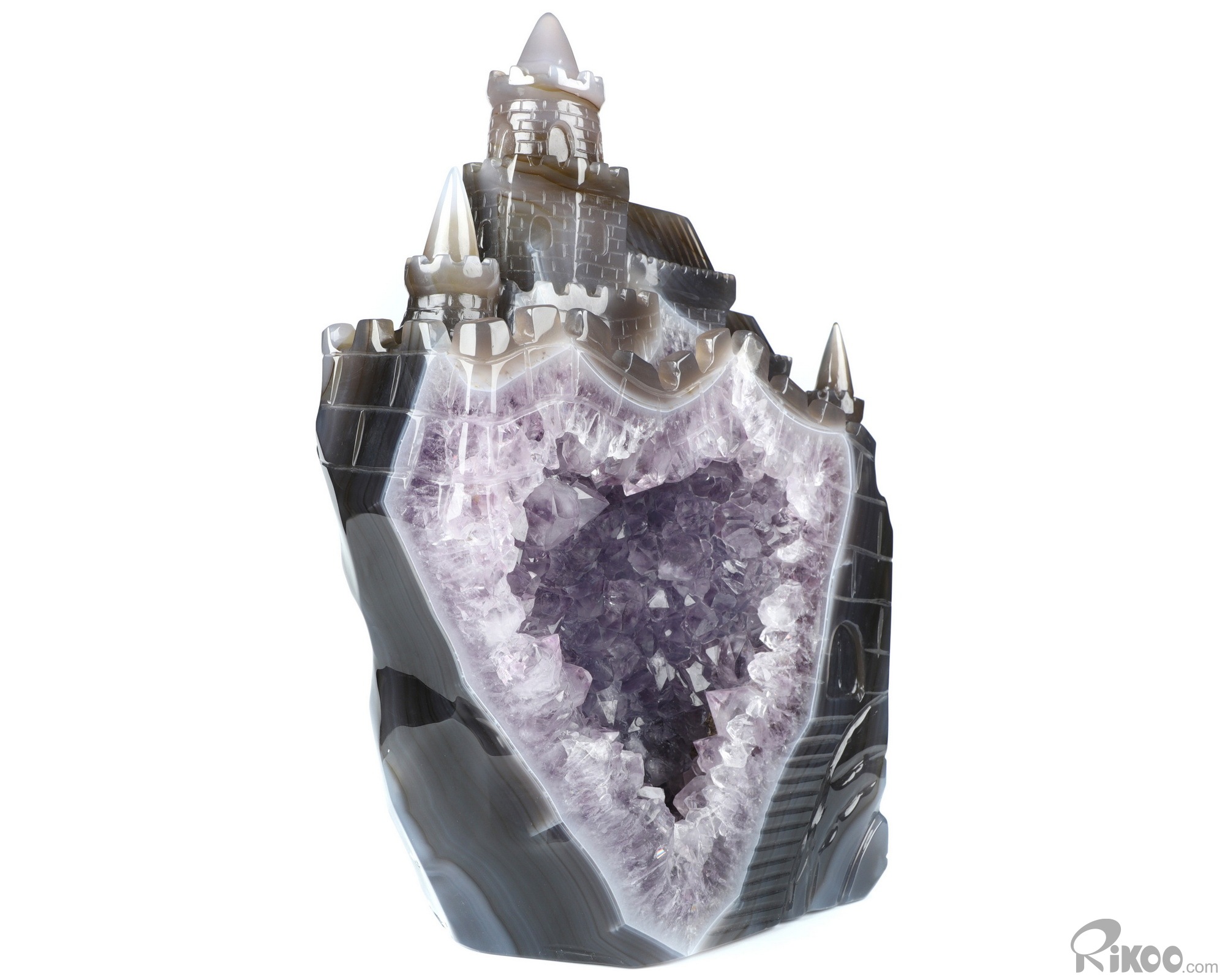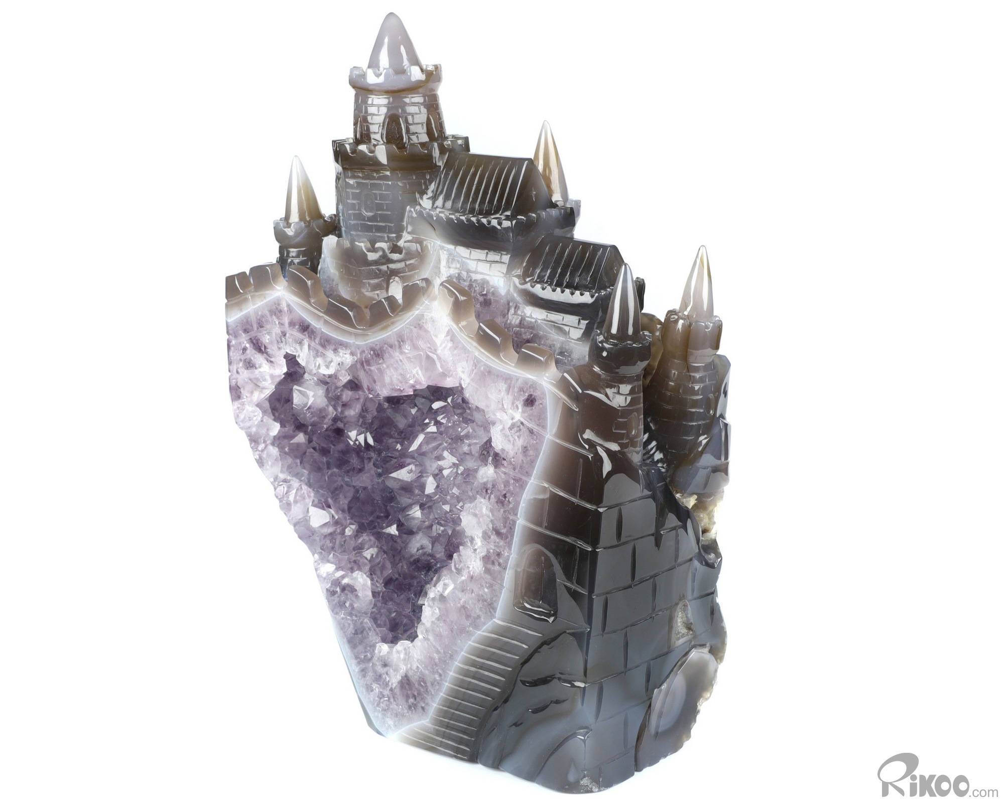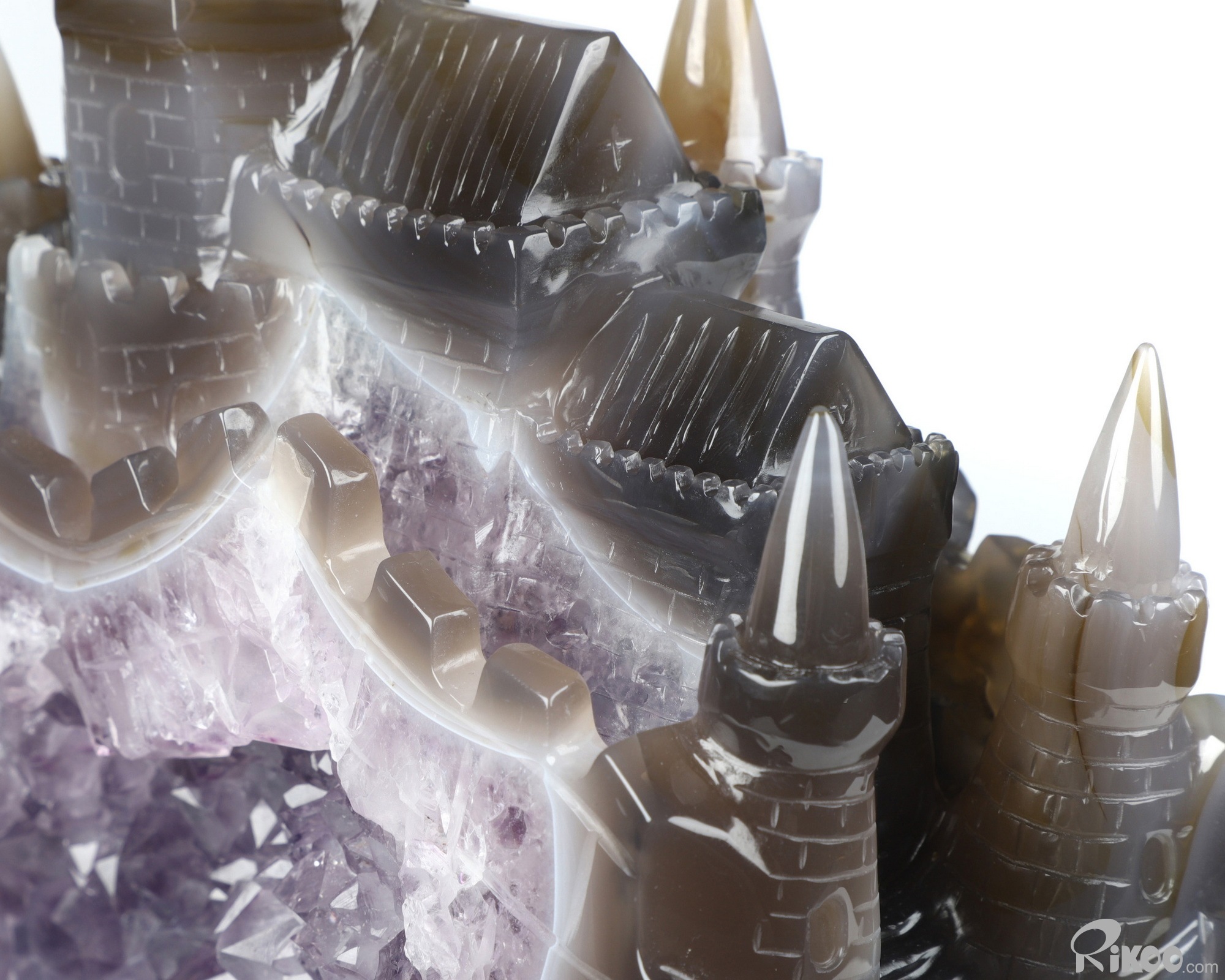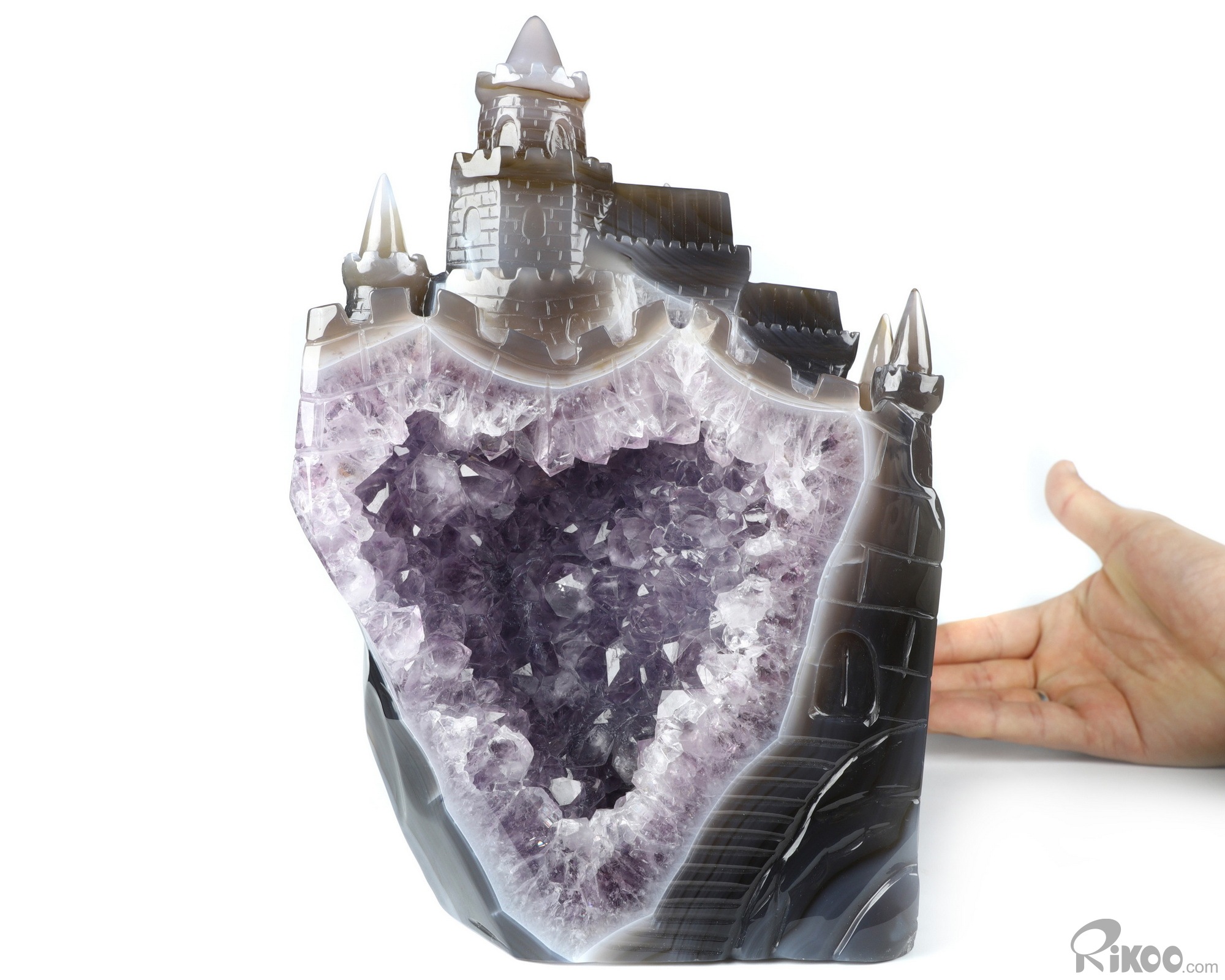 Awesome GIANT 9.0" Agate Amethyst Geode Carved Crystal Loving Luxury Castle, Realistic, Crystal Healing