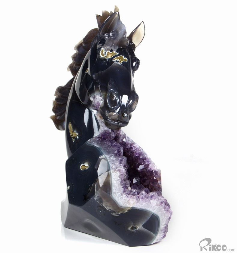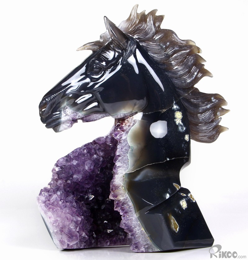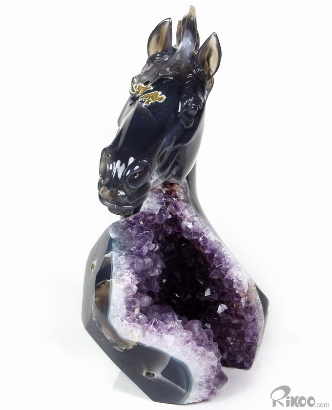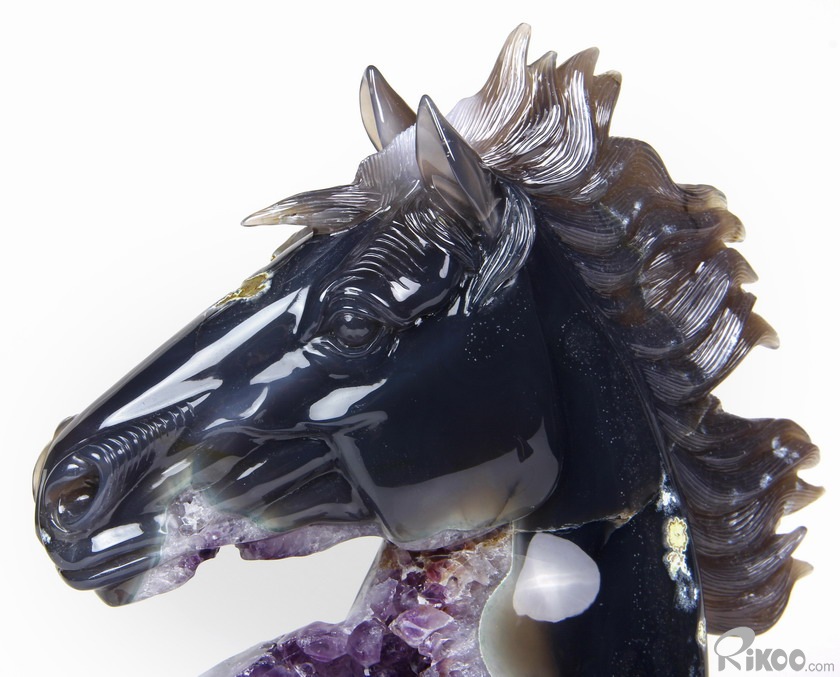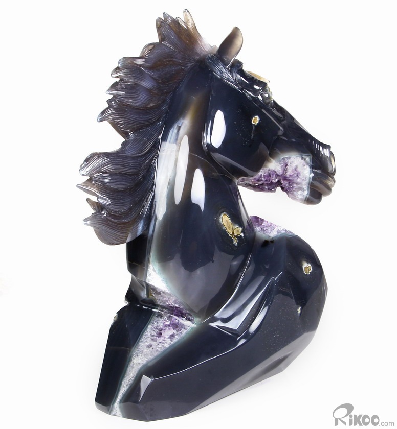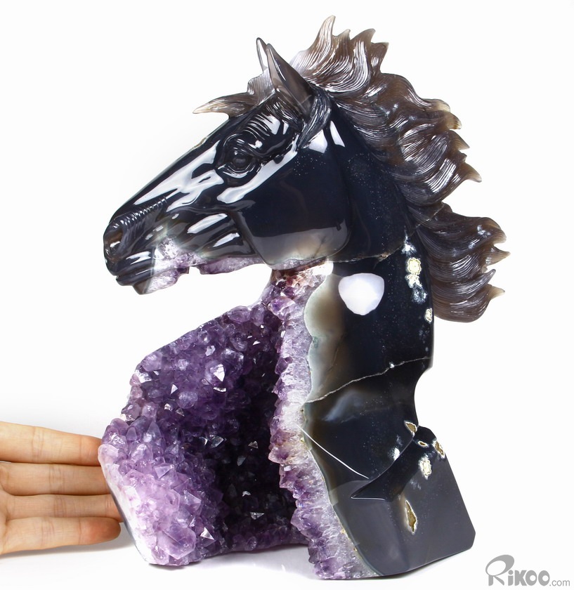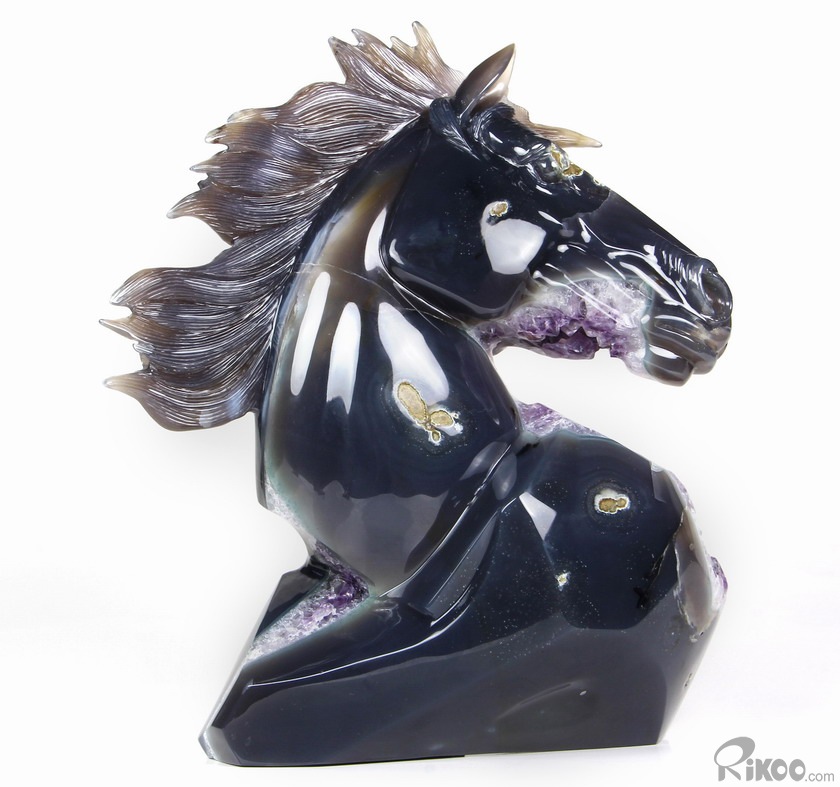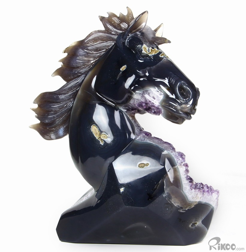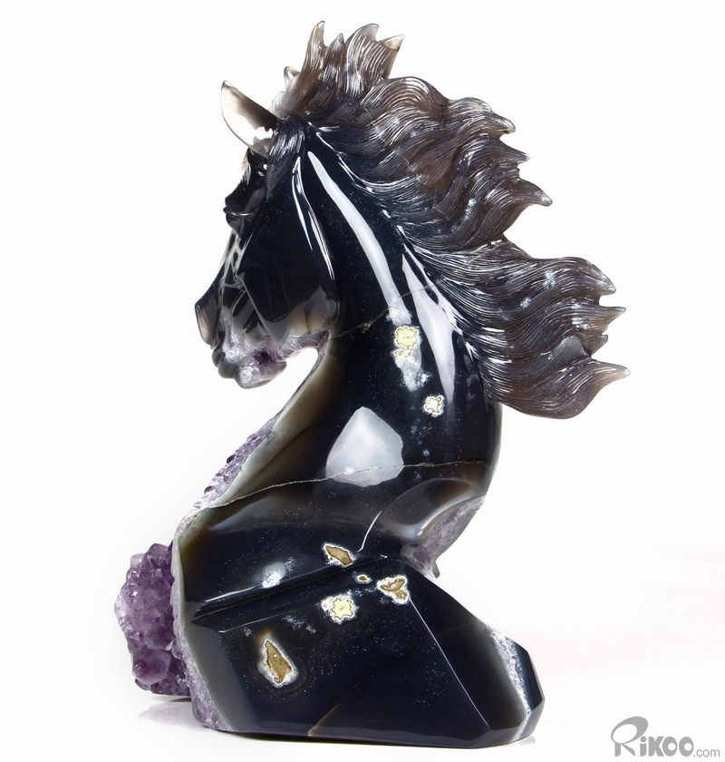 Awesome Giant 9.9" Amethyst Druse Agate Carved Crystal Horse Head Sculpture