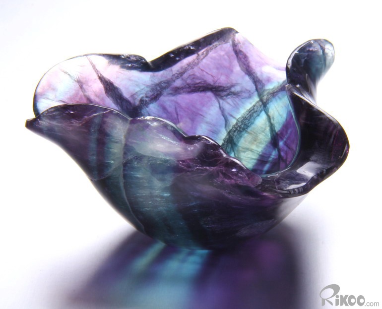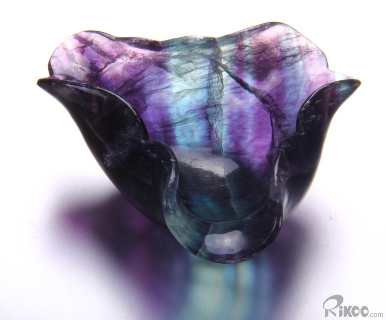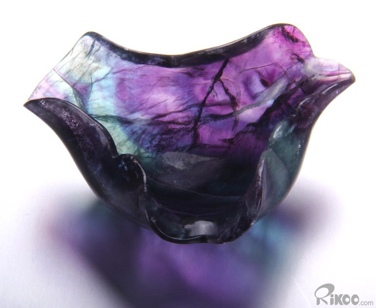 BEAUTIFUL HUGE 3.7" Fluorite Carved Crystal Vessel Sculpture