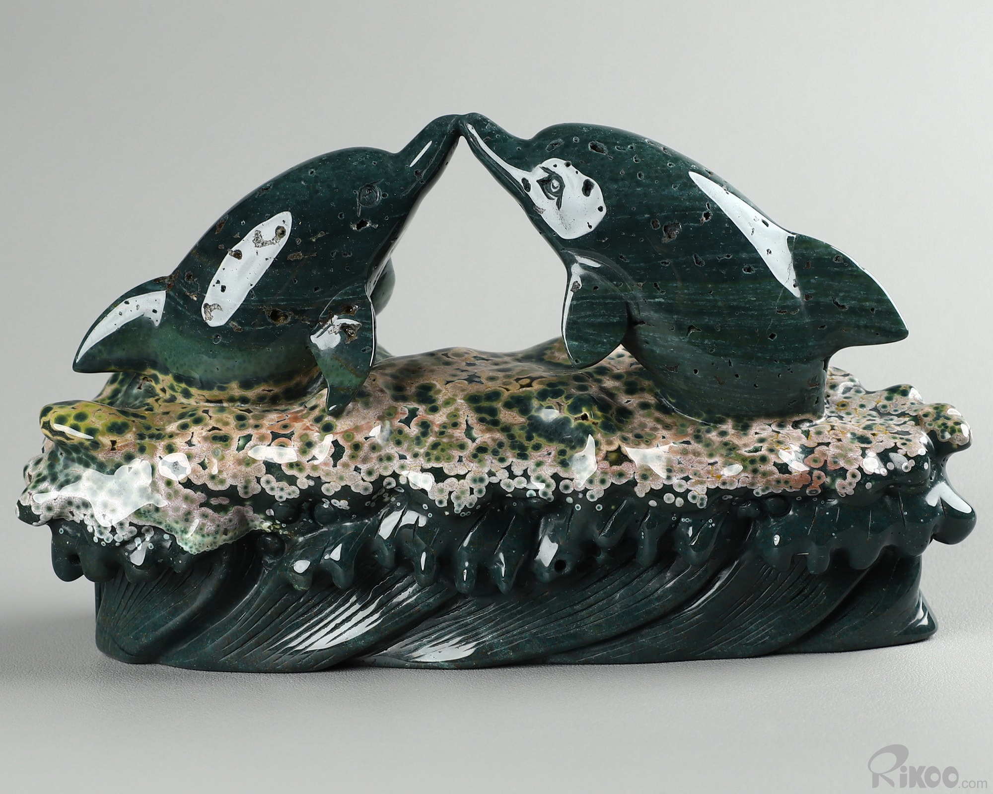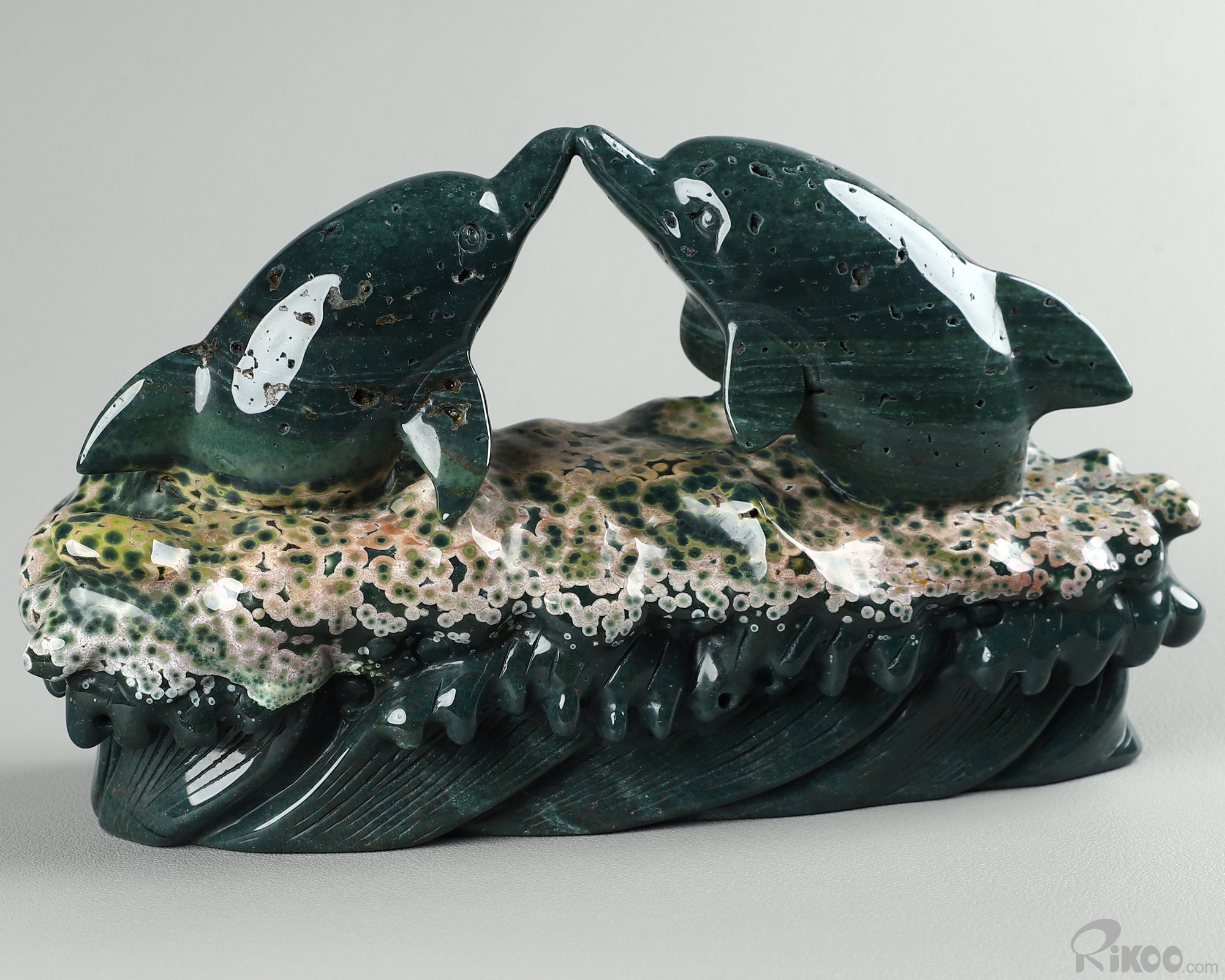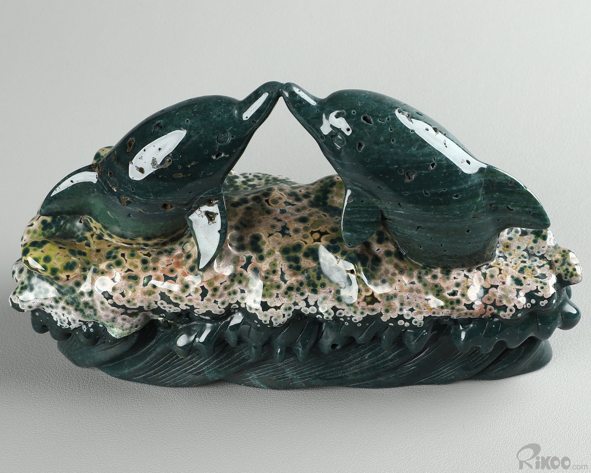 BEAUTIFUL Huge 6.7" Ocean Jasper Carved Crystal Dolphins