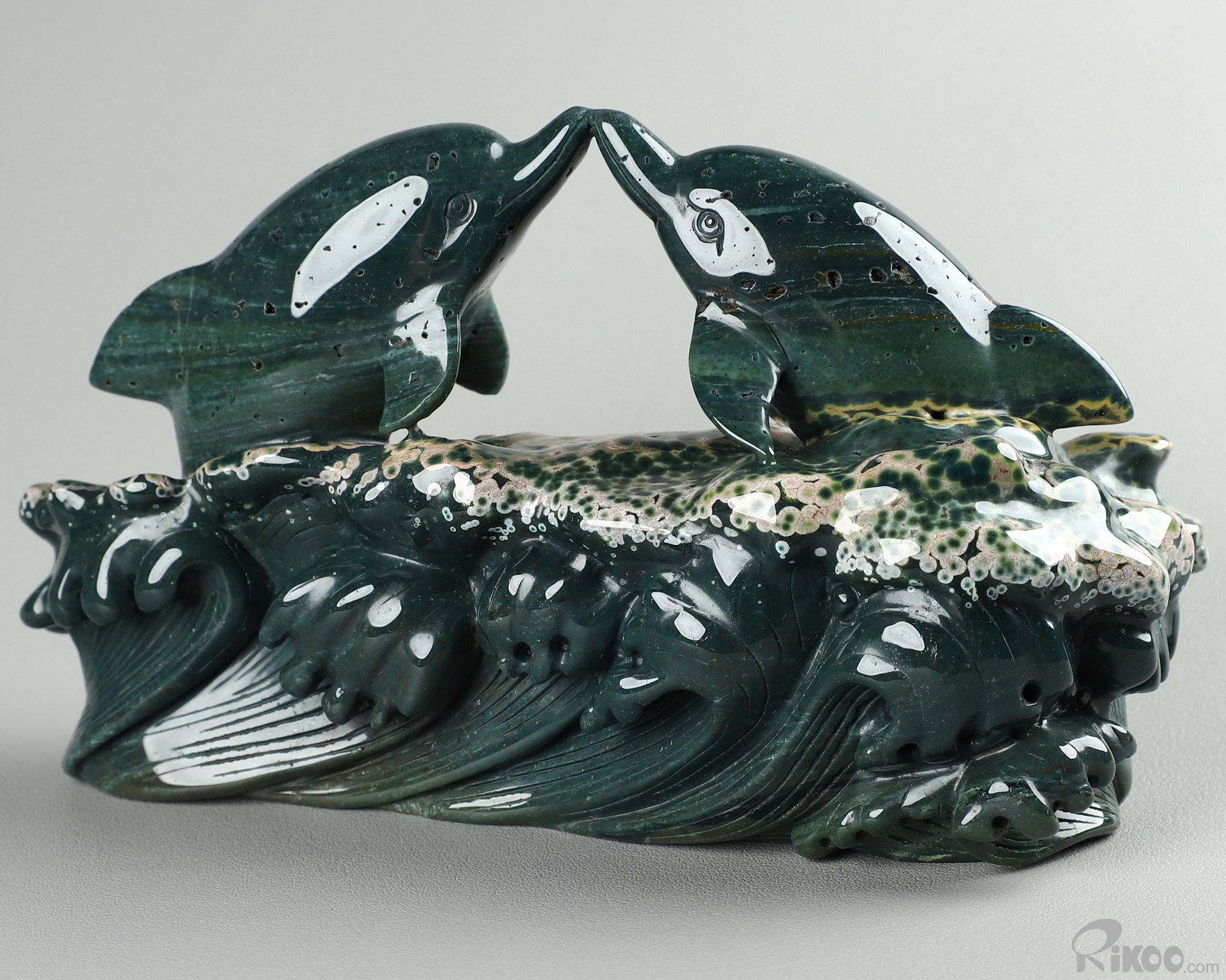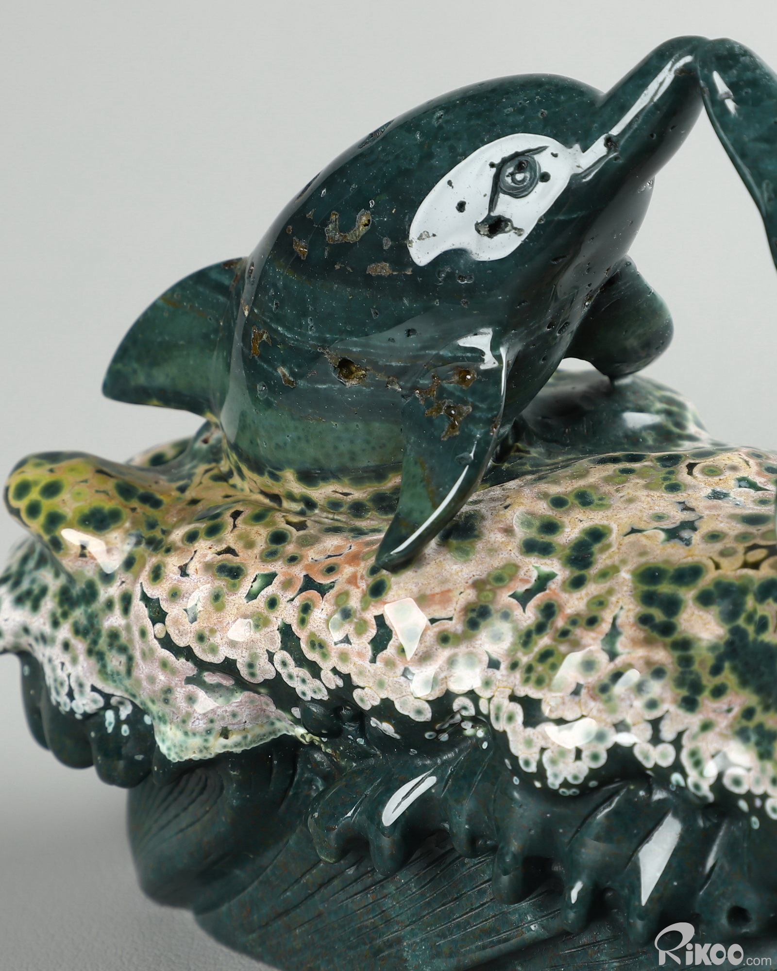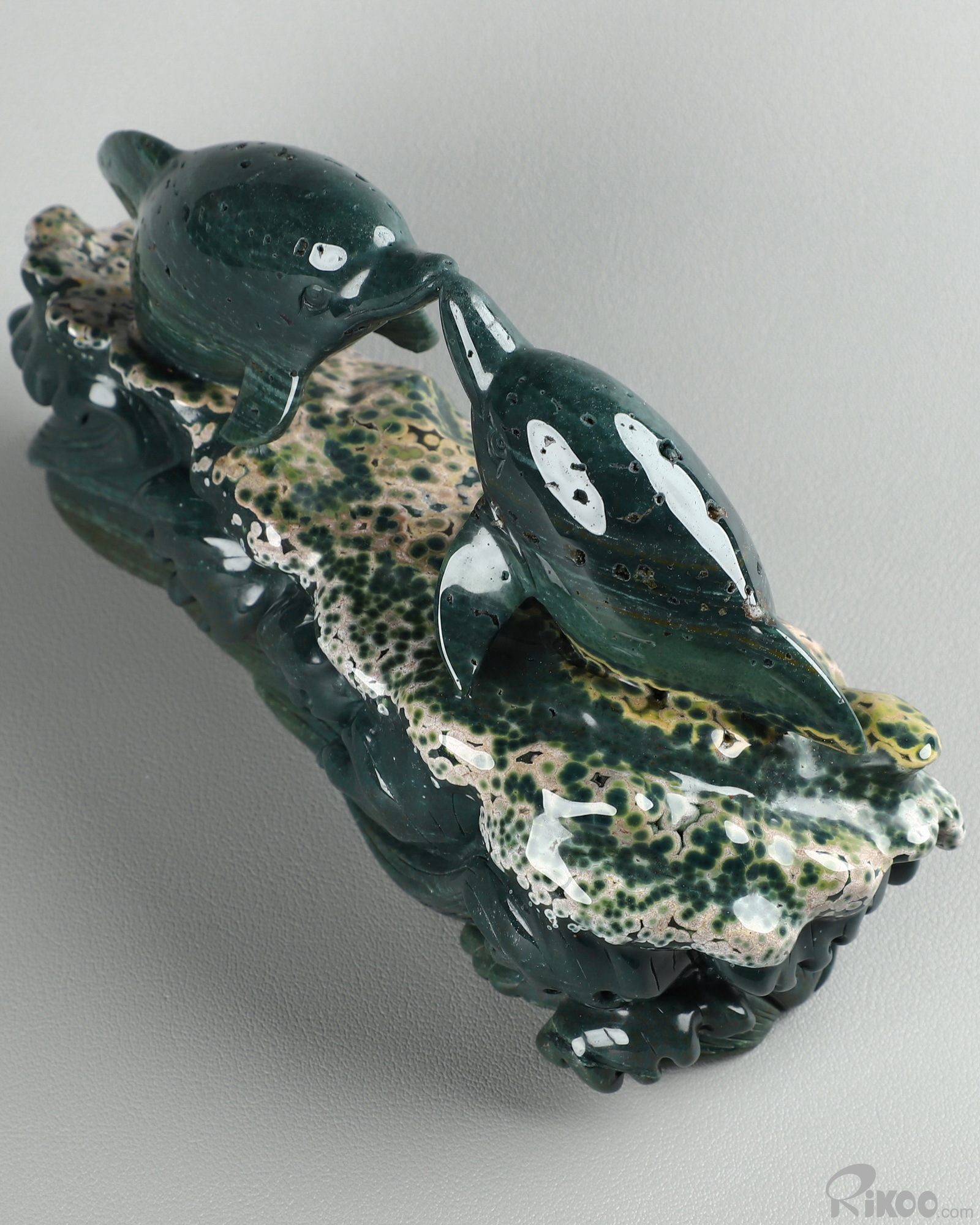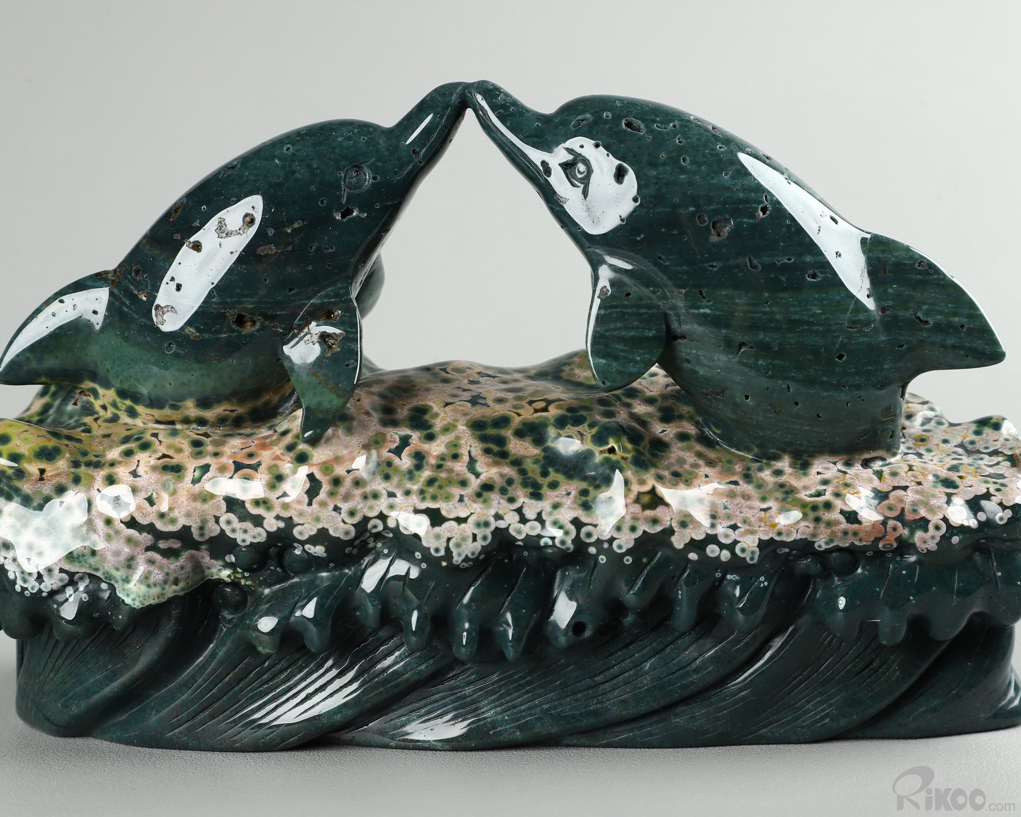 BEAUTIFUL Huge 6.7" Ocean Jasper Carved Crystal Dolphins