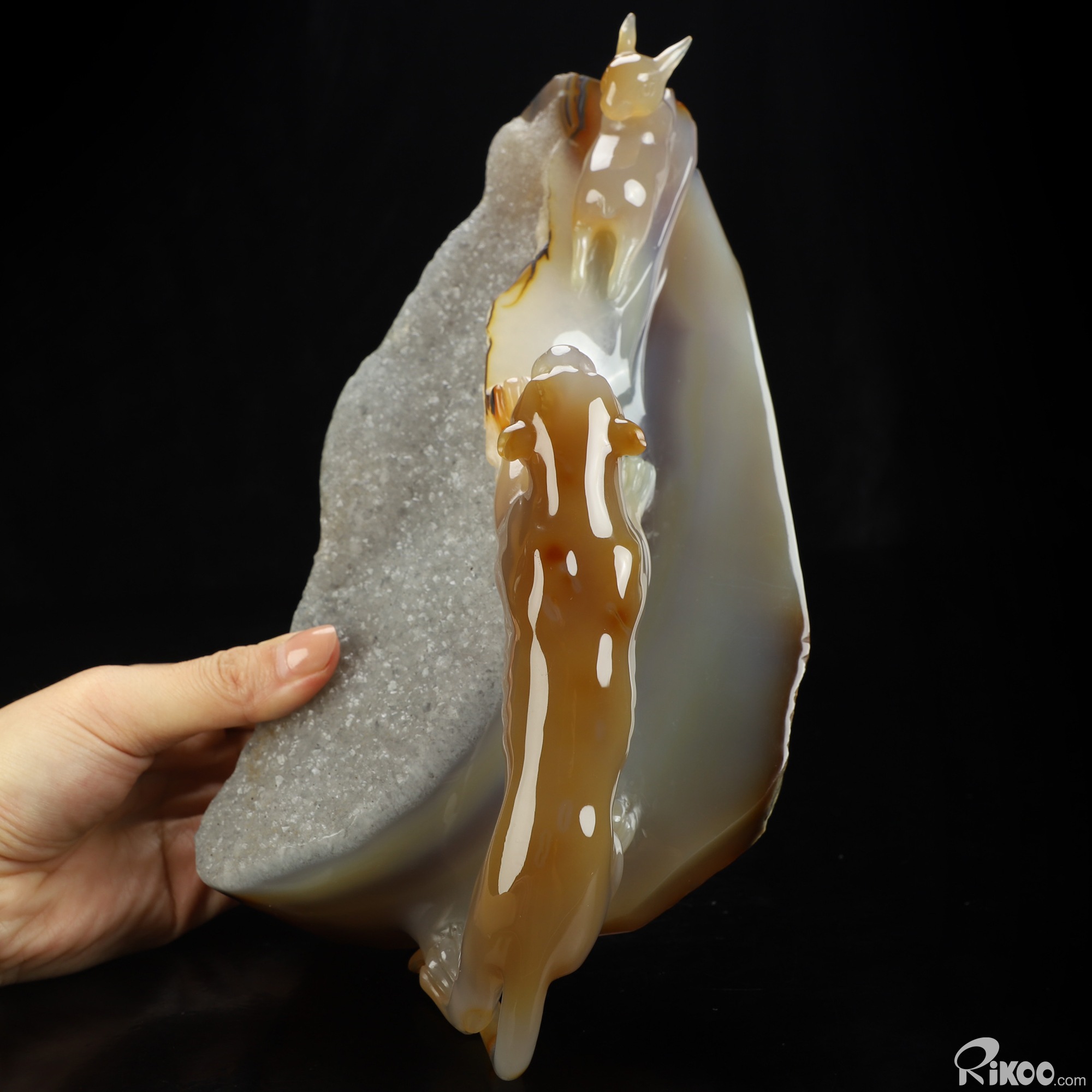 You are looking at a Agate sculpture. The sculpture is 9.8 inches long.