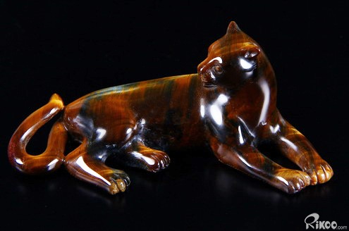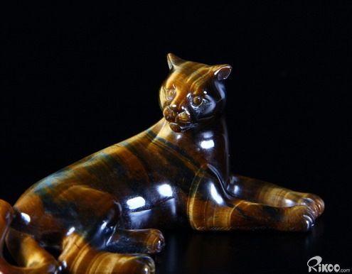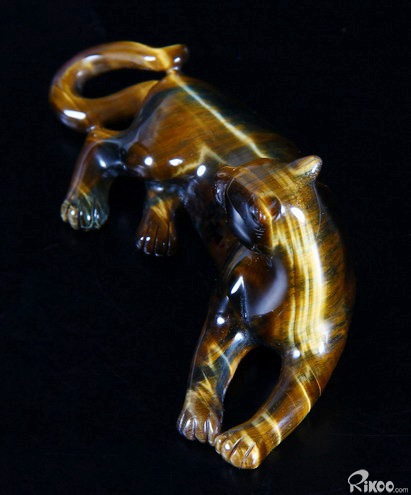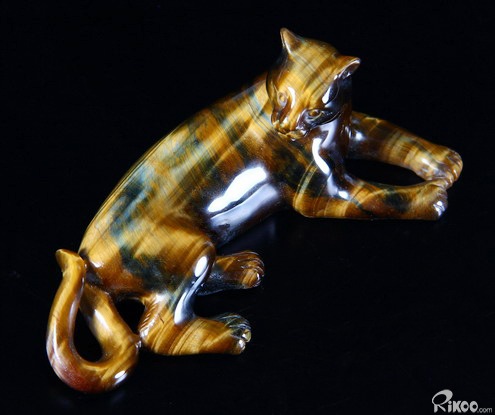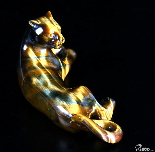 Blue & Gold Tiger Eye Carved Leopard,Chatoyant,Gemstone