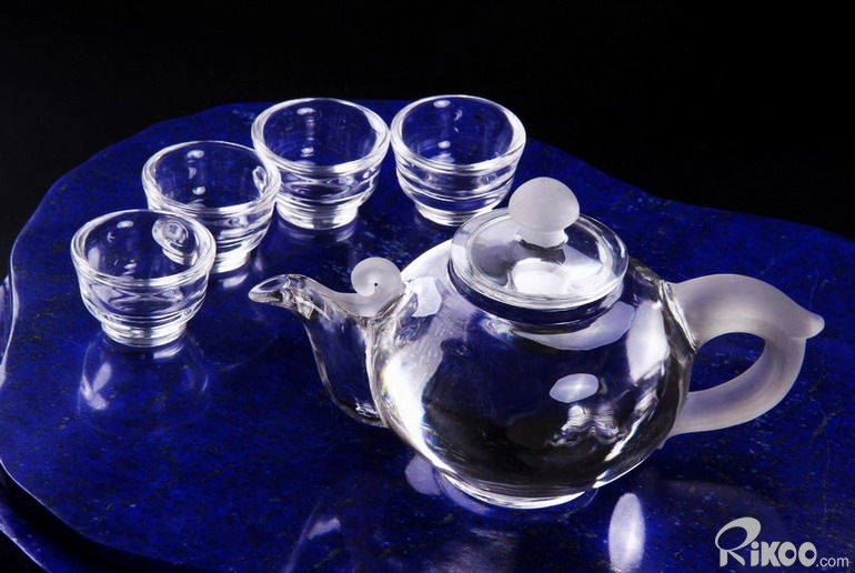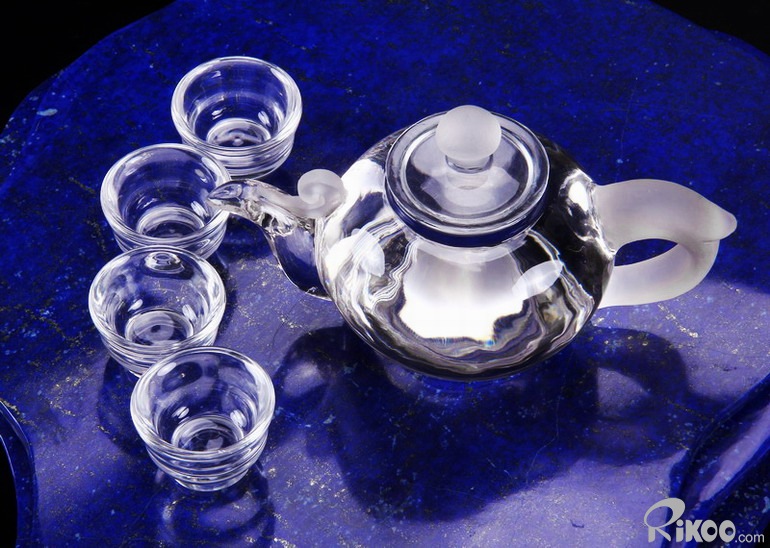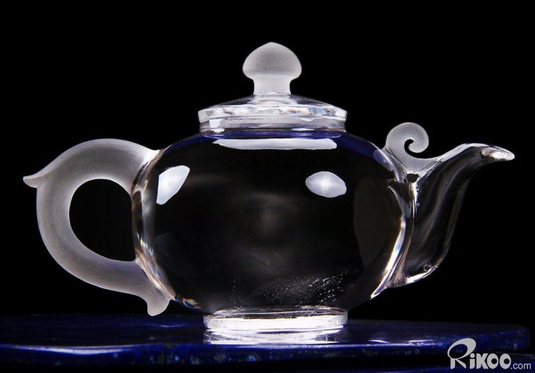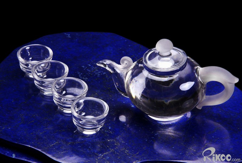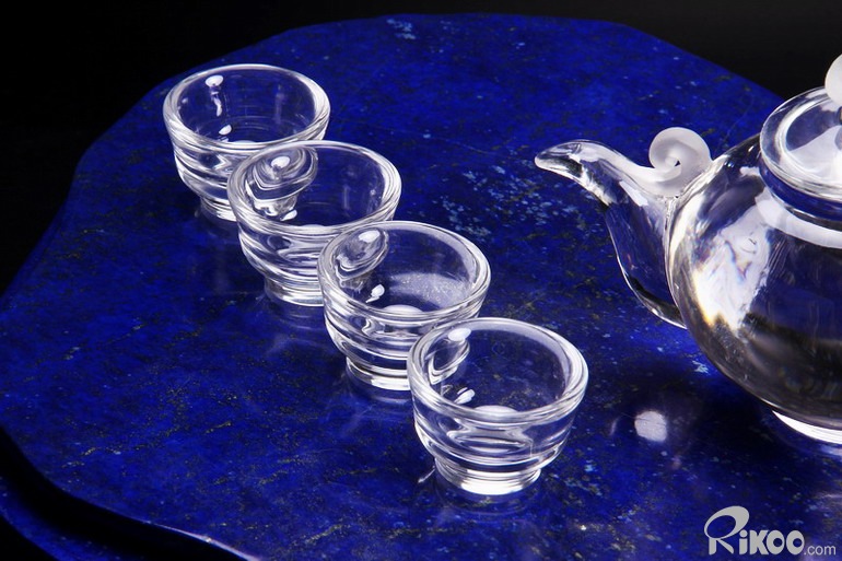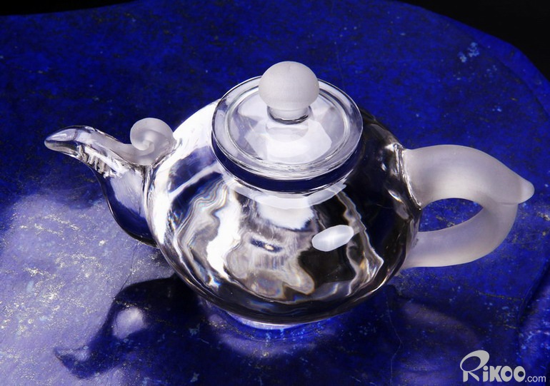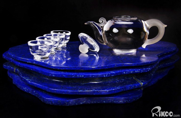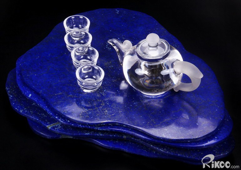 Breath of Water - Gemstone 13.9" Lapis Lazuli Carved Base and Rock Crystal Quartz Carved Pot