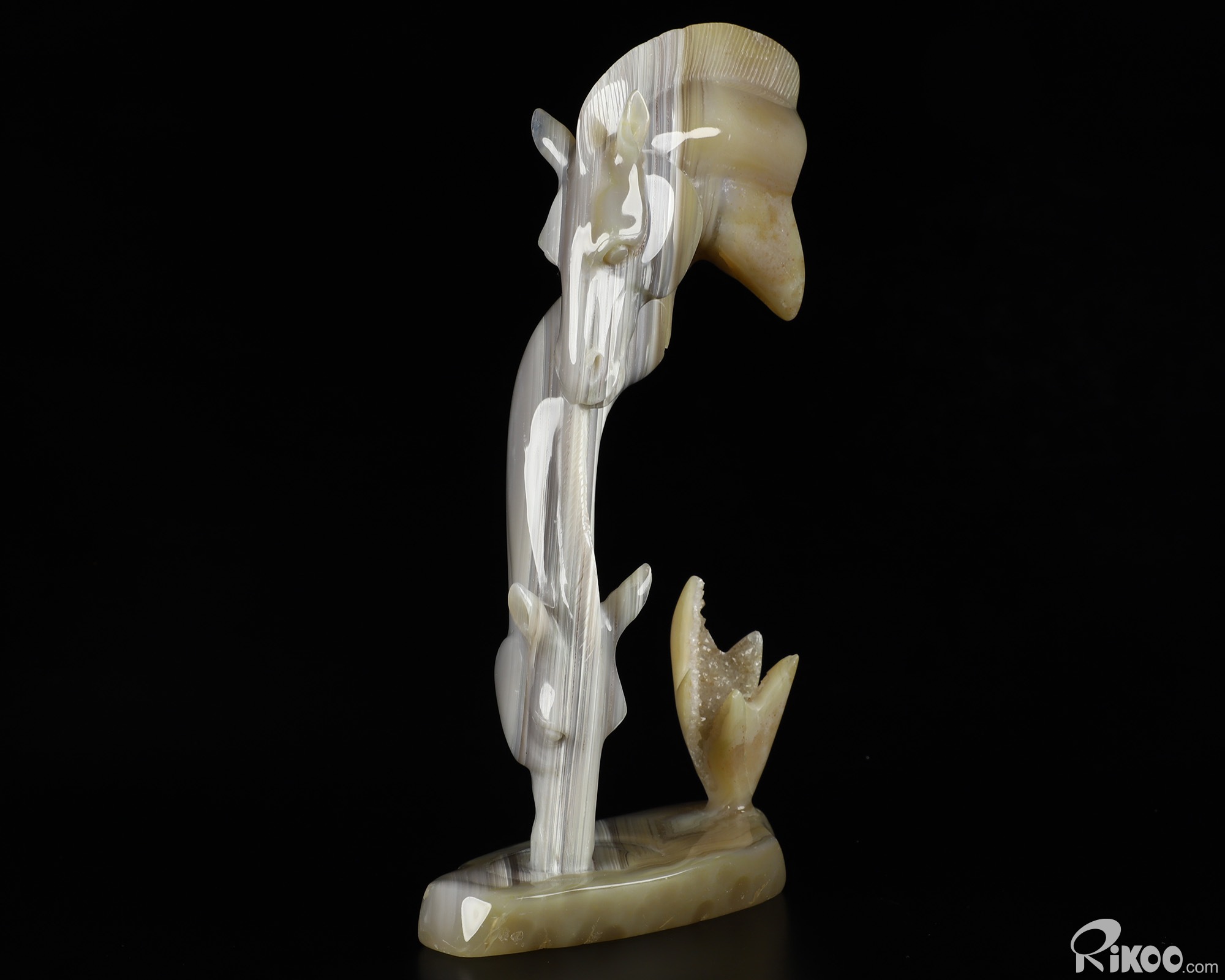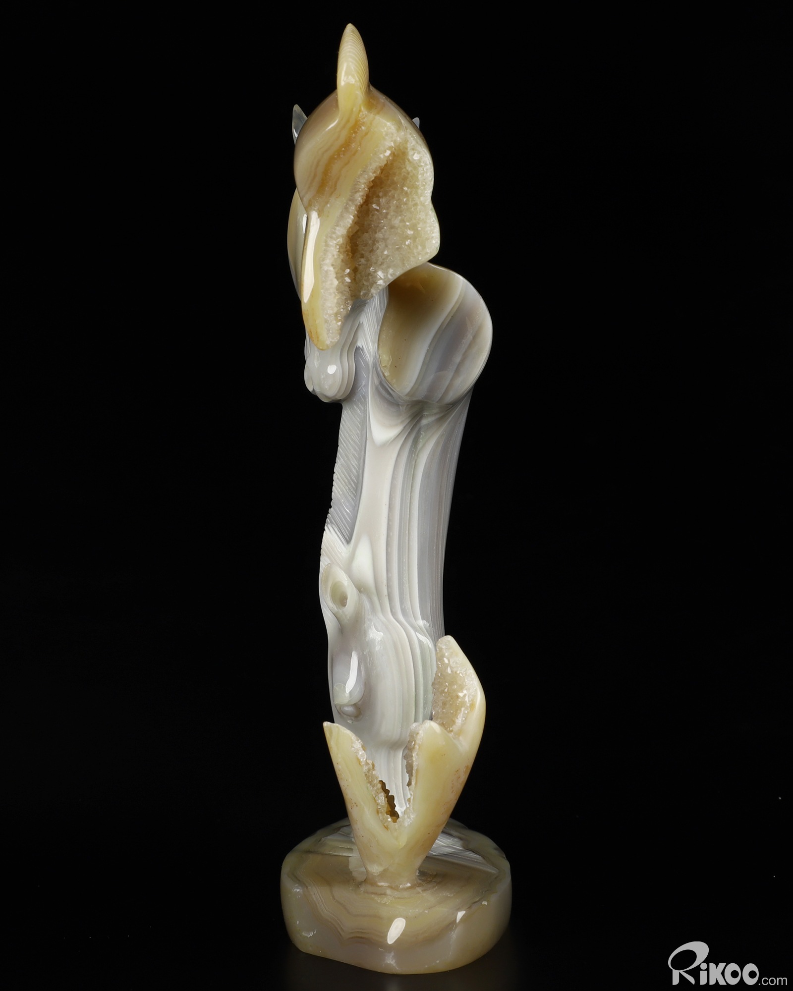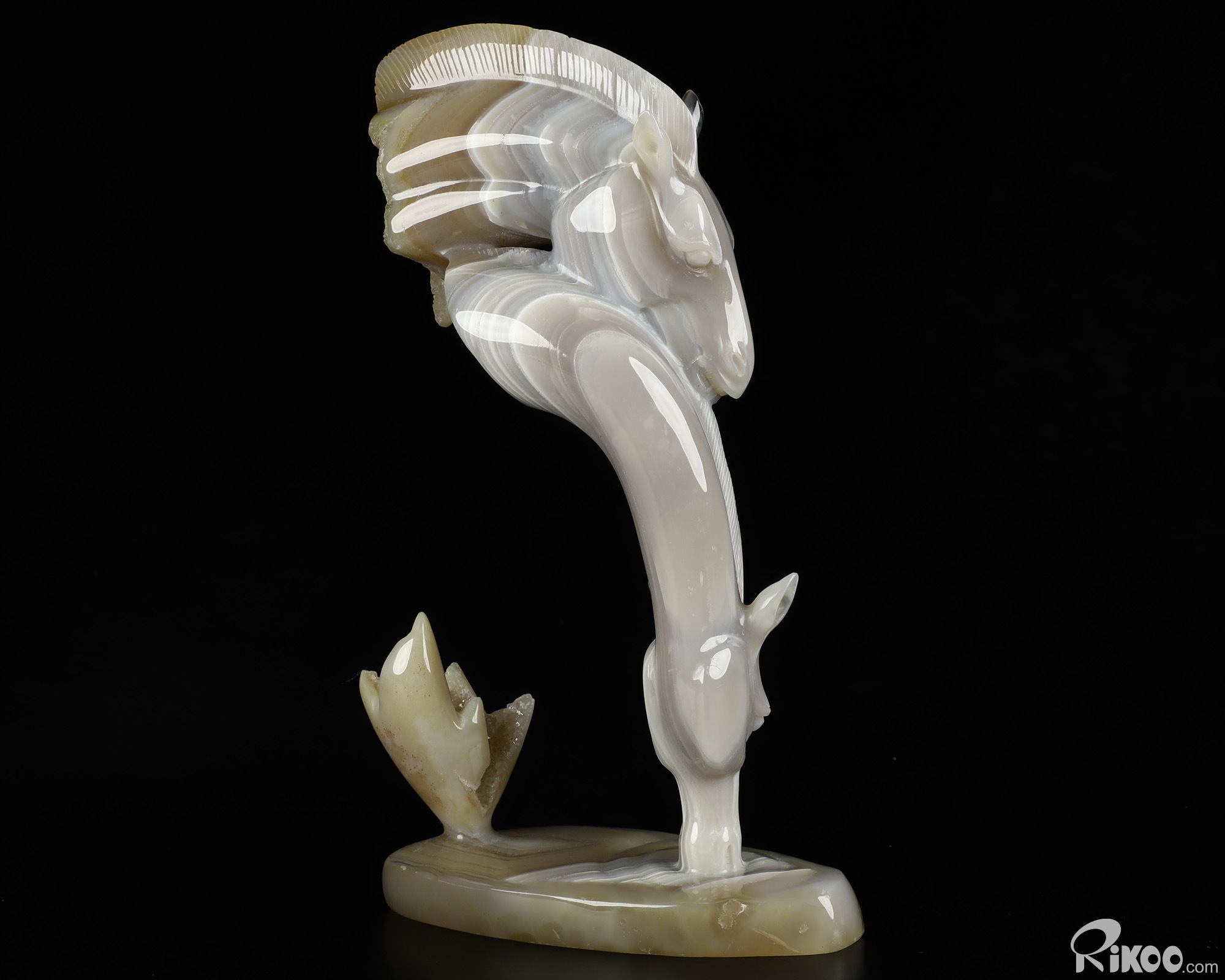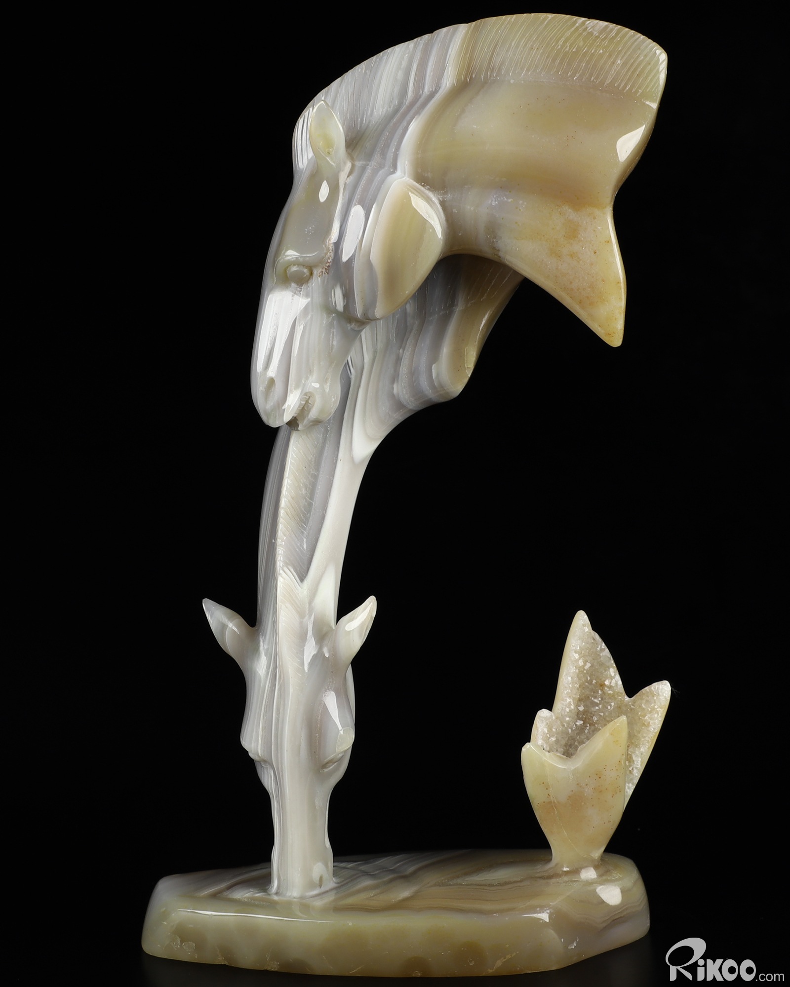 COLLECTION HUGE 7.6" Agate Carved Crystal Horse Heads Sculpture.