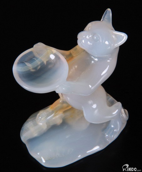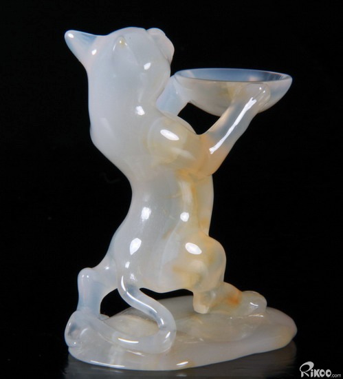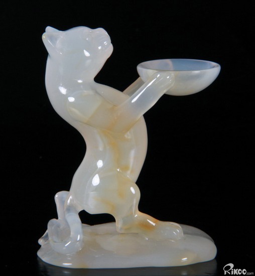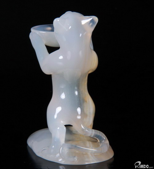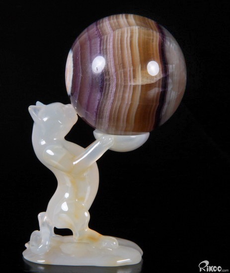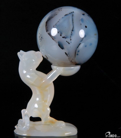 Carved Agate Carved Crystal Standing Cat Spheres Stand