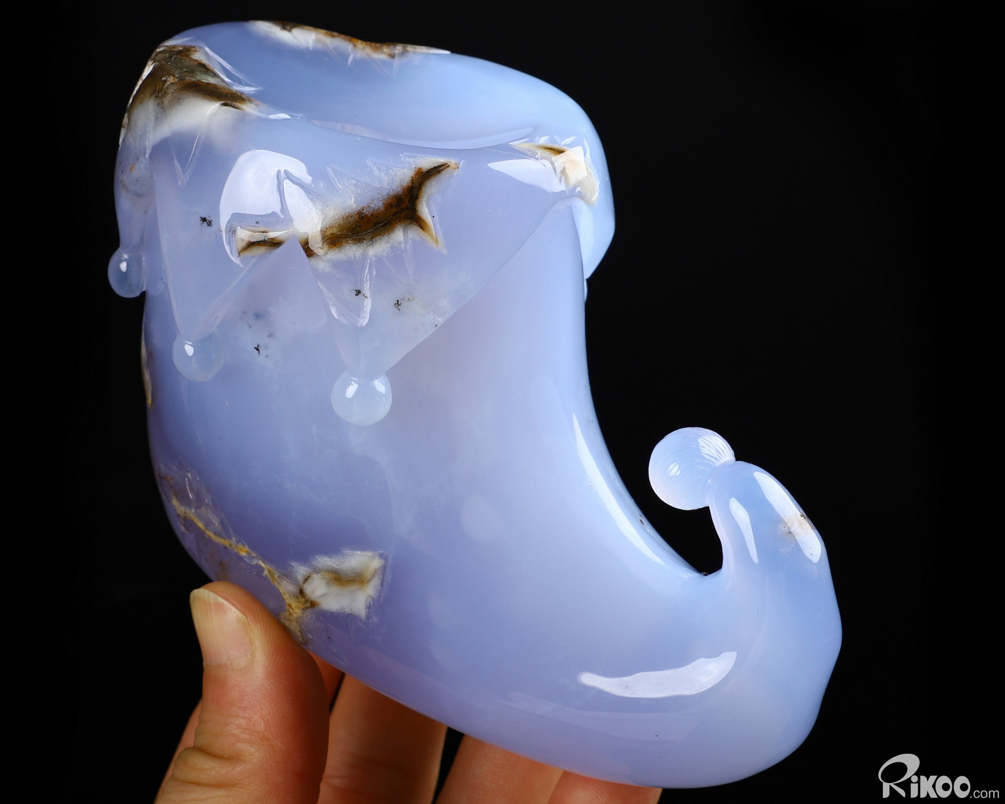 Christmas boot, Gemstone 5.1" Blue Chalcedony Carved Crystal Boot, Crystal Healing